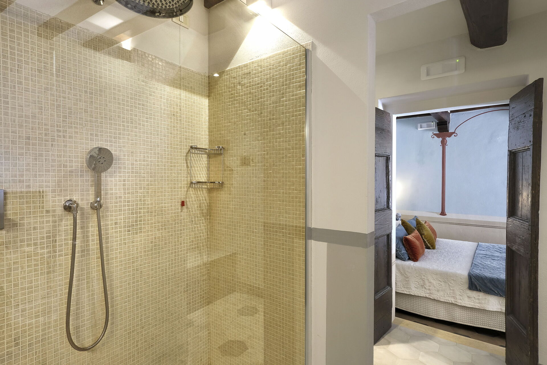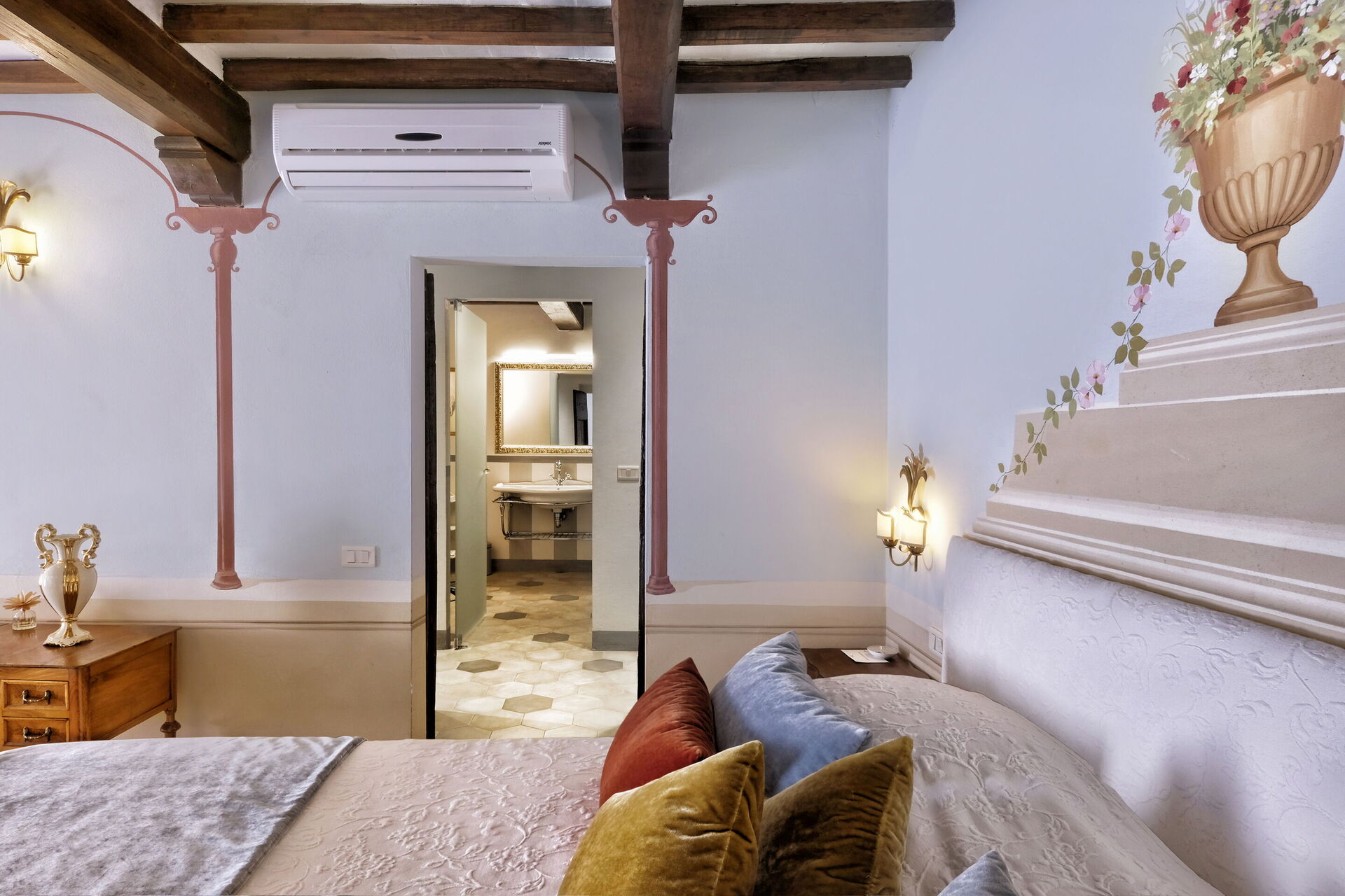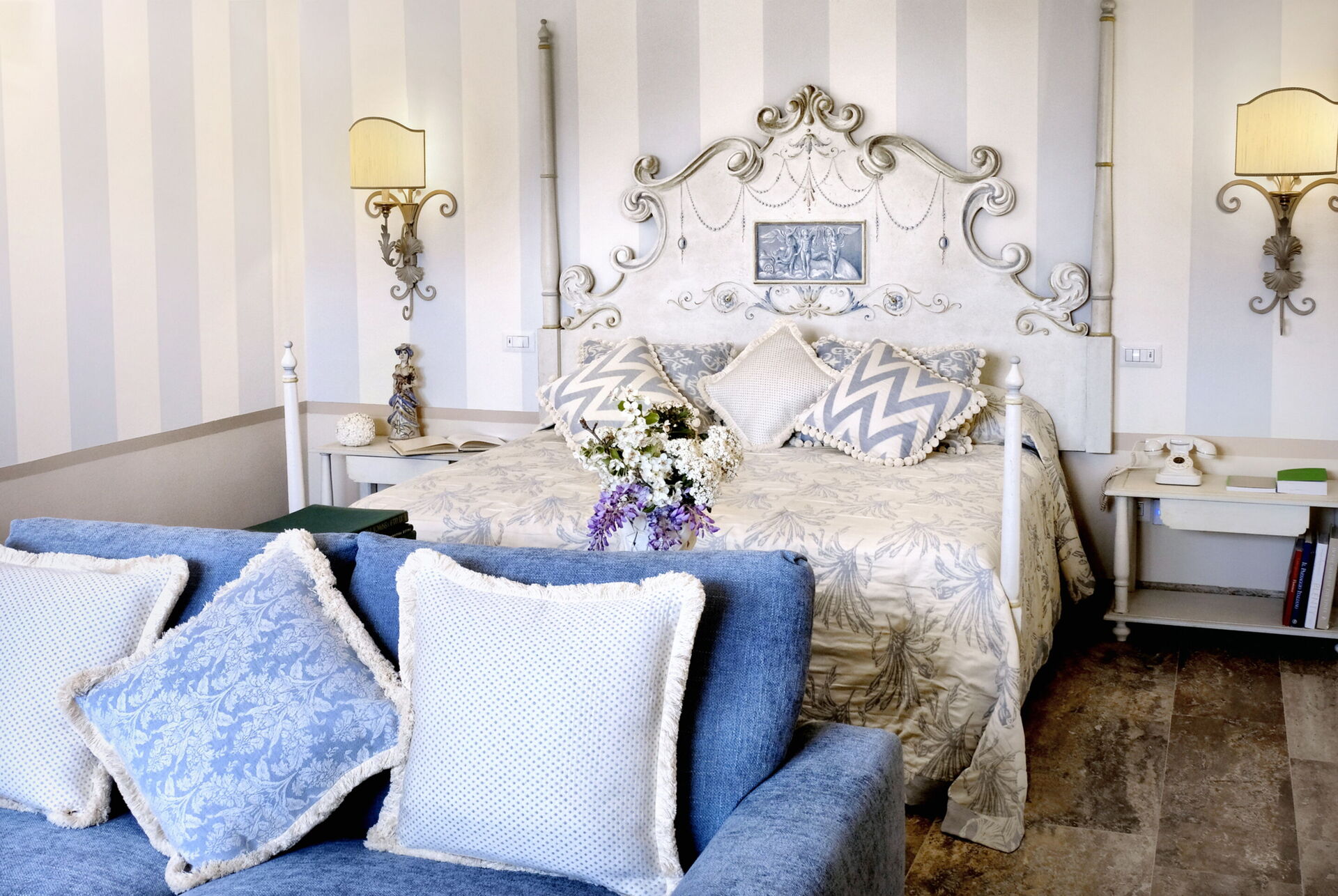 Bedroom + Ensuite Bathroom 6: double bed, sofa bed double, WIFI internet, air conditioning, television, safe, basin, toilet, bidet, shower, exit to the garden.
