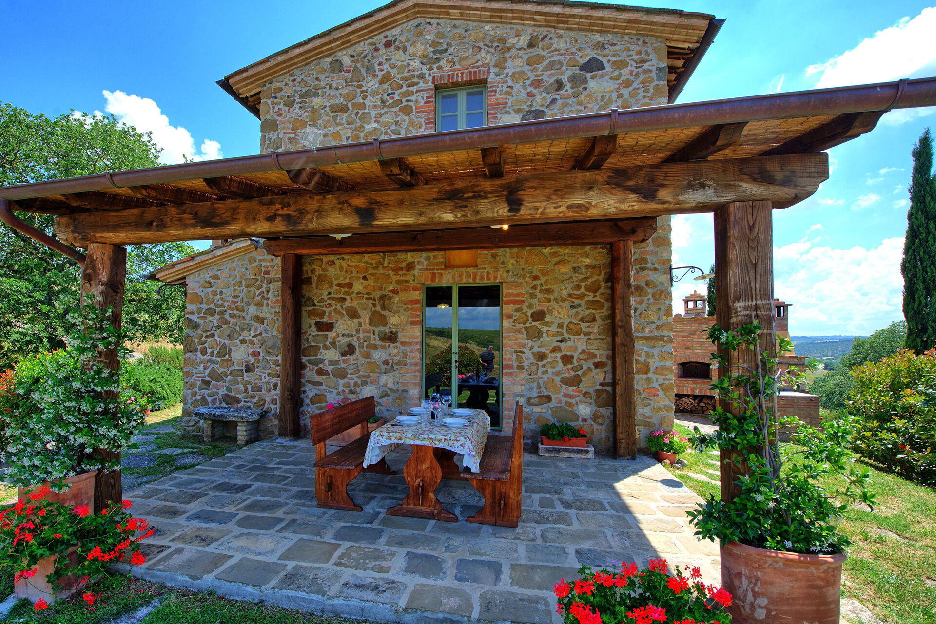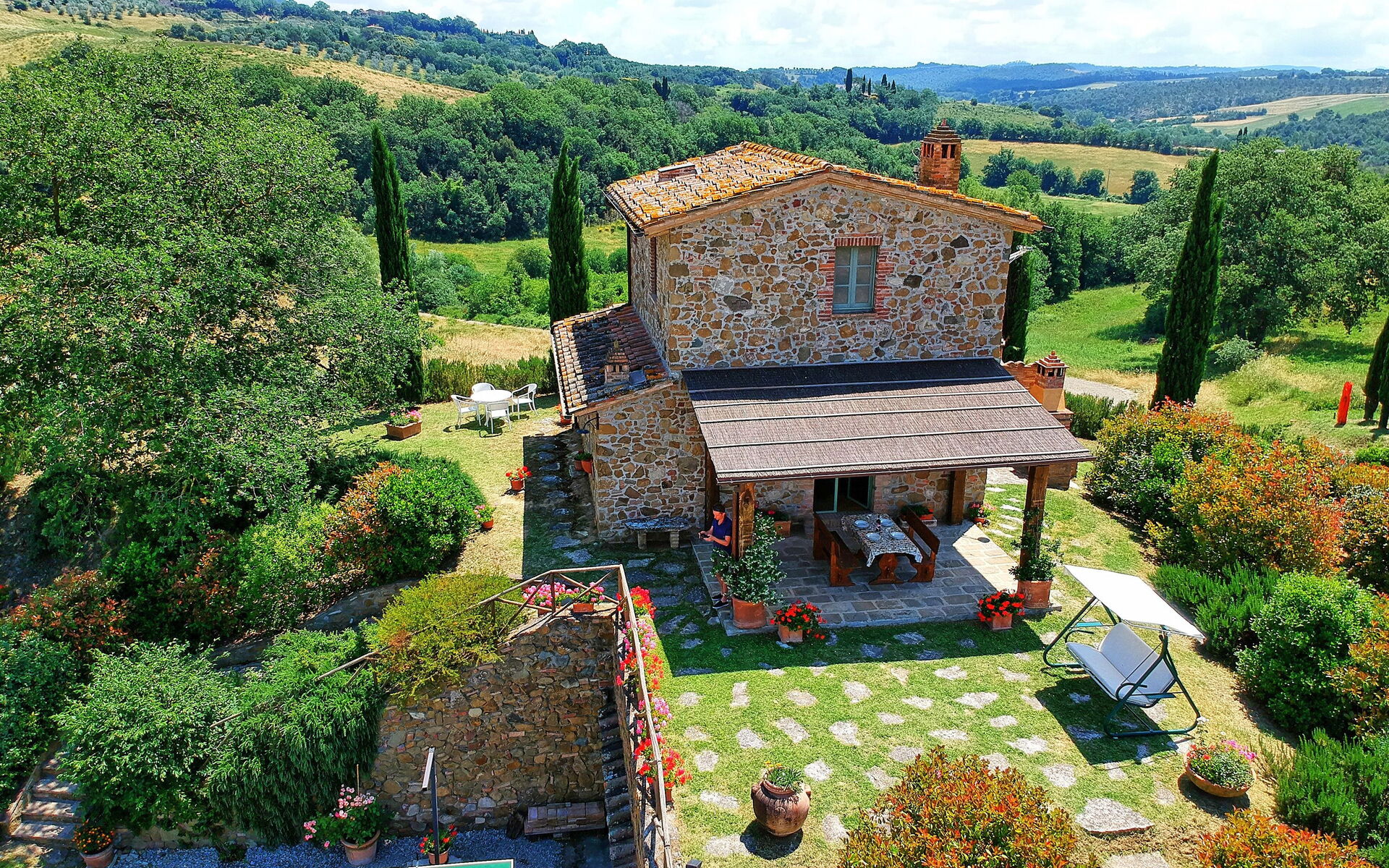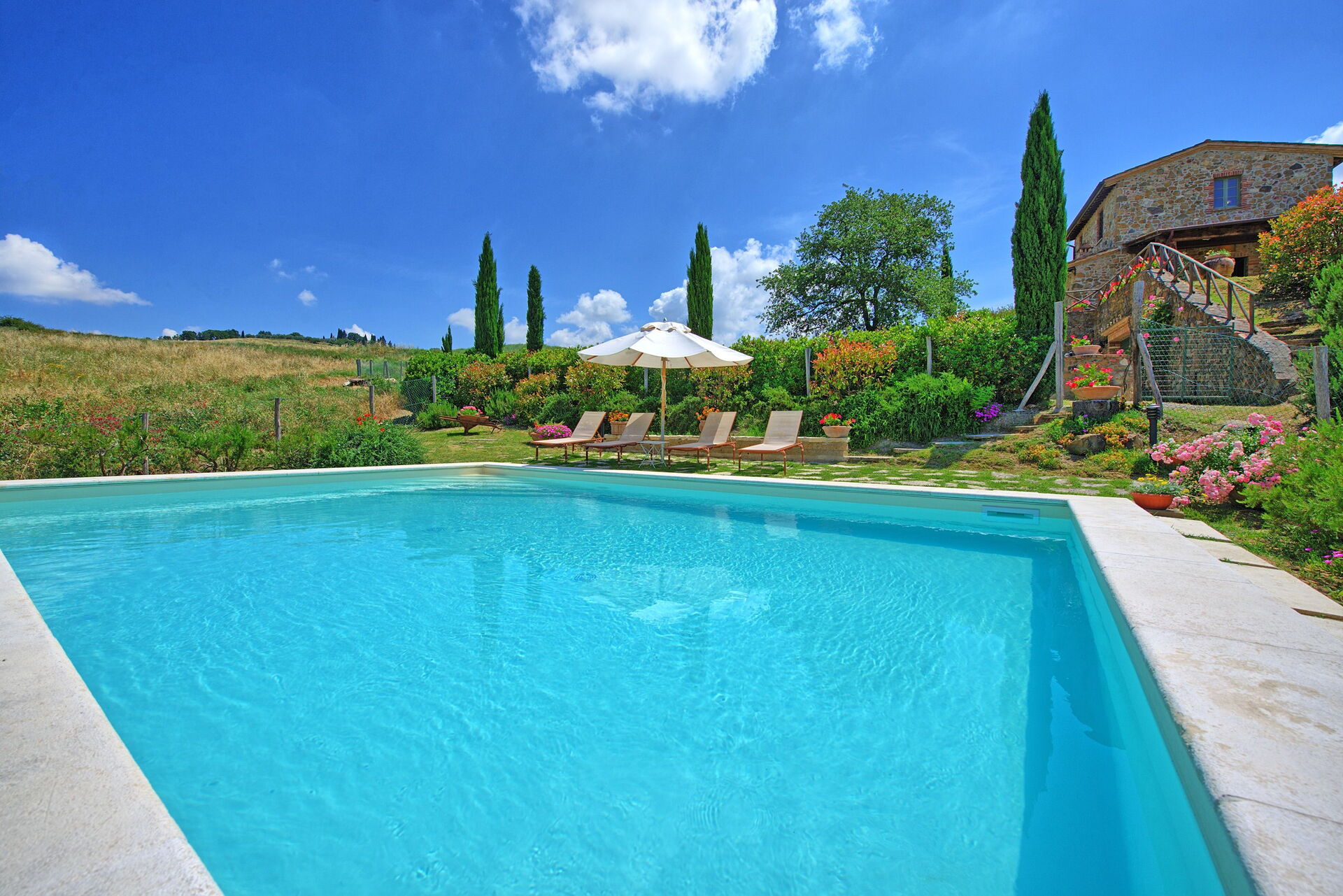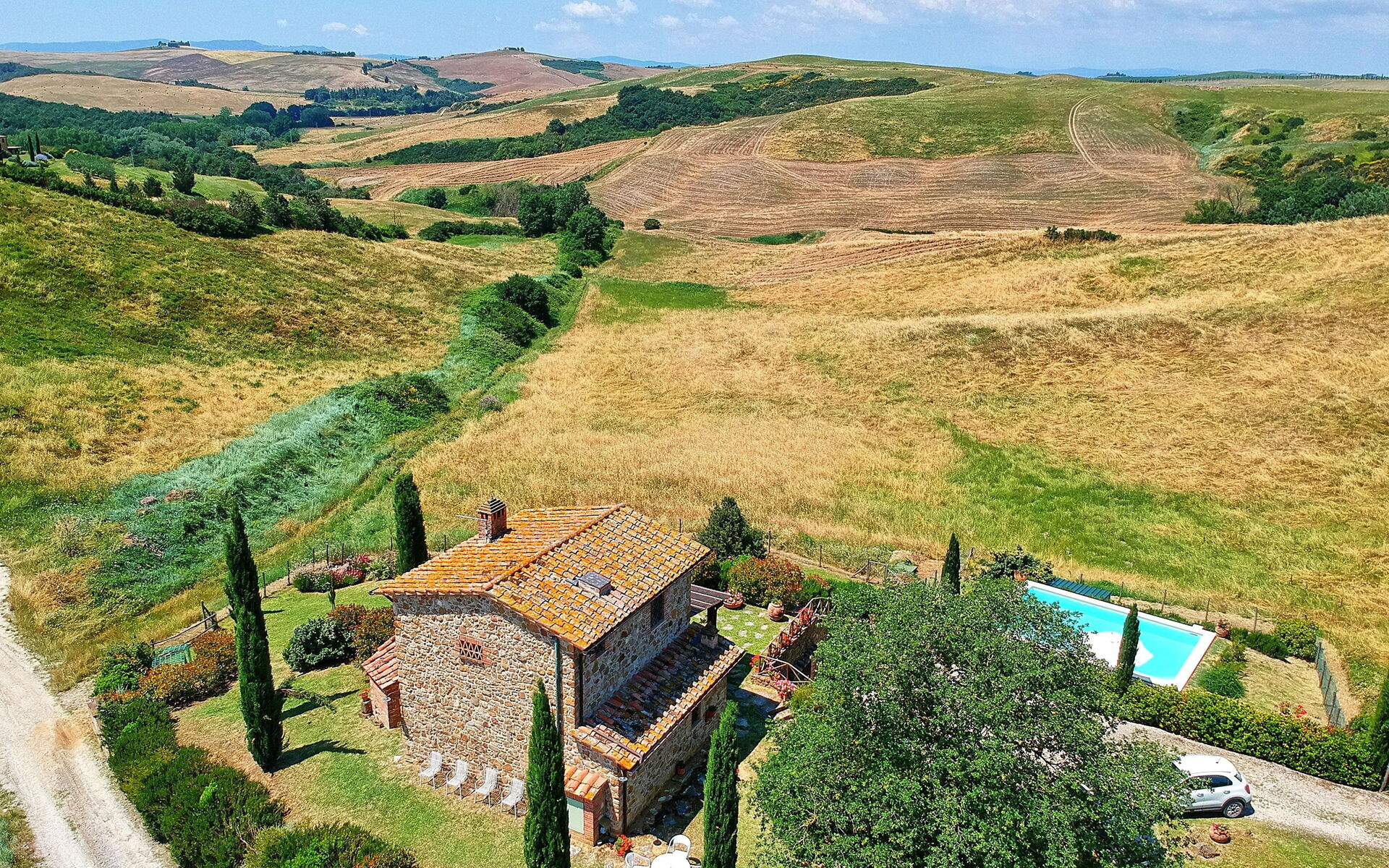 Charming former stone barn with private pool situated in peaceful location south of Siena, amidst the beautiful hills of the Crete Senesi area. The house has been skilfully restored preserving its original architectural features and turned into a comfortable country accommodation offering tastefully furnished interiors. This nice property enjoys extensive views over the surrounding hills and valleys.