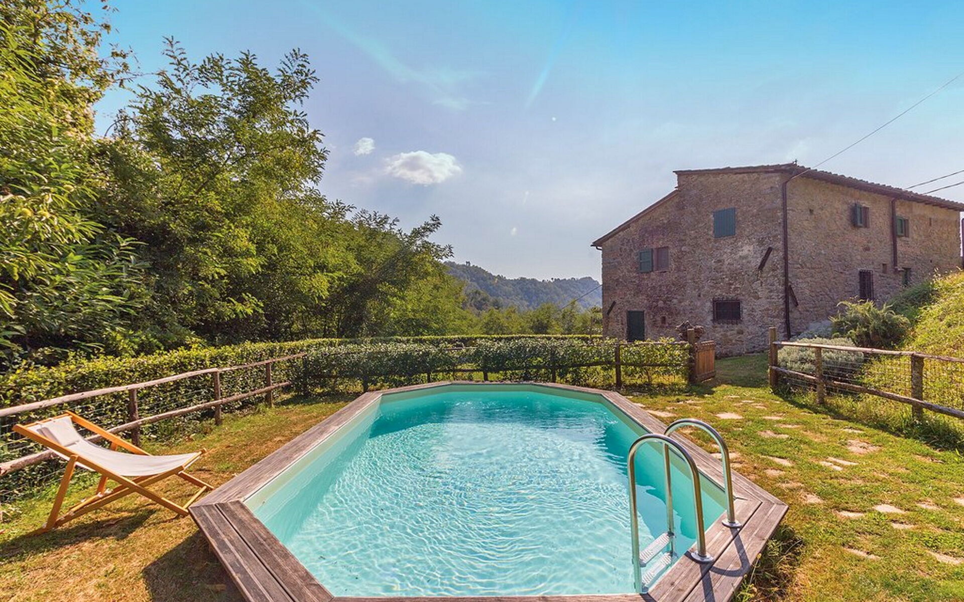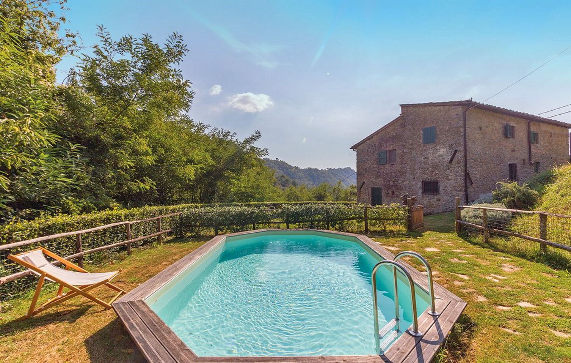 Il Timone is located 9 km (5 mi) from Vellano, Italy and only 41 km (25 mi) from Lucca in the tourist area "Lucca And Surroundings". Vacation rental Il Timone is a lovely stone building (100 sq m) that includes WiFi internet and private pool. The property can accommodate up to seven people comfortably in four bedrooms with two bathrooms.