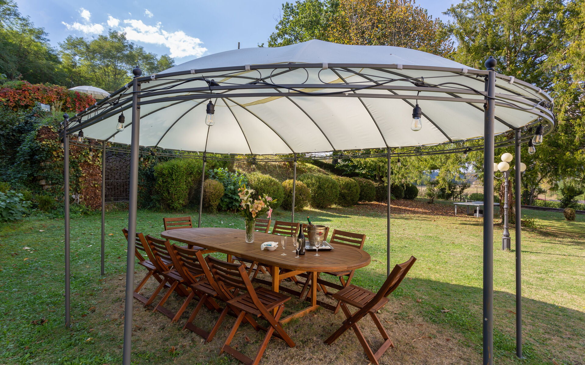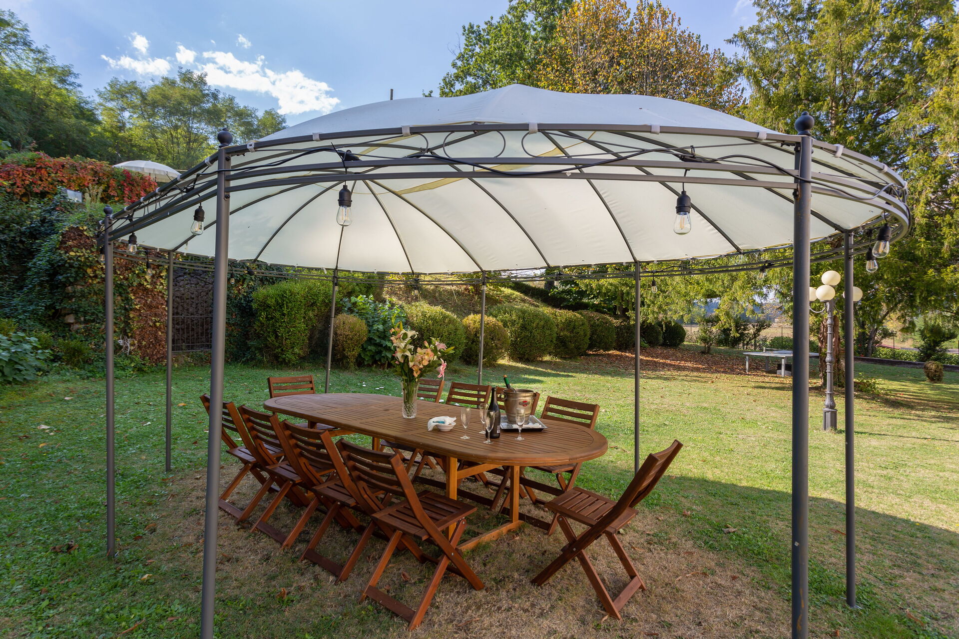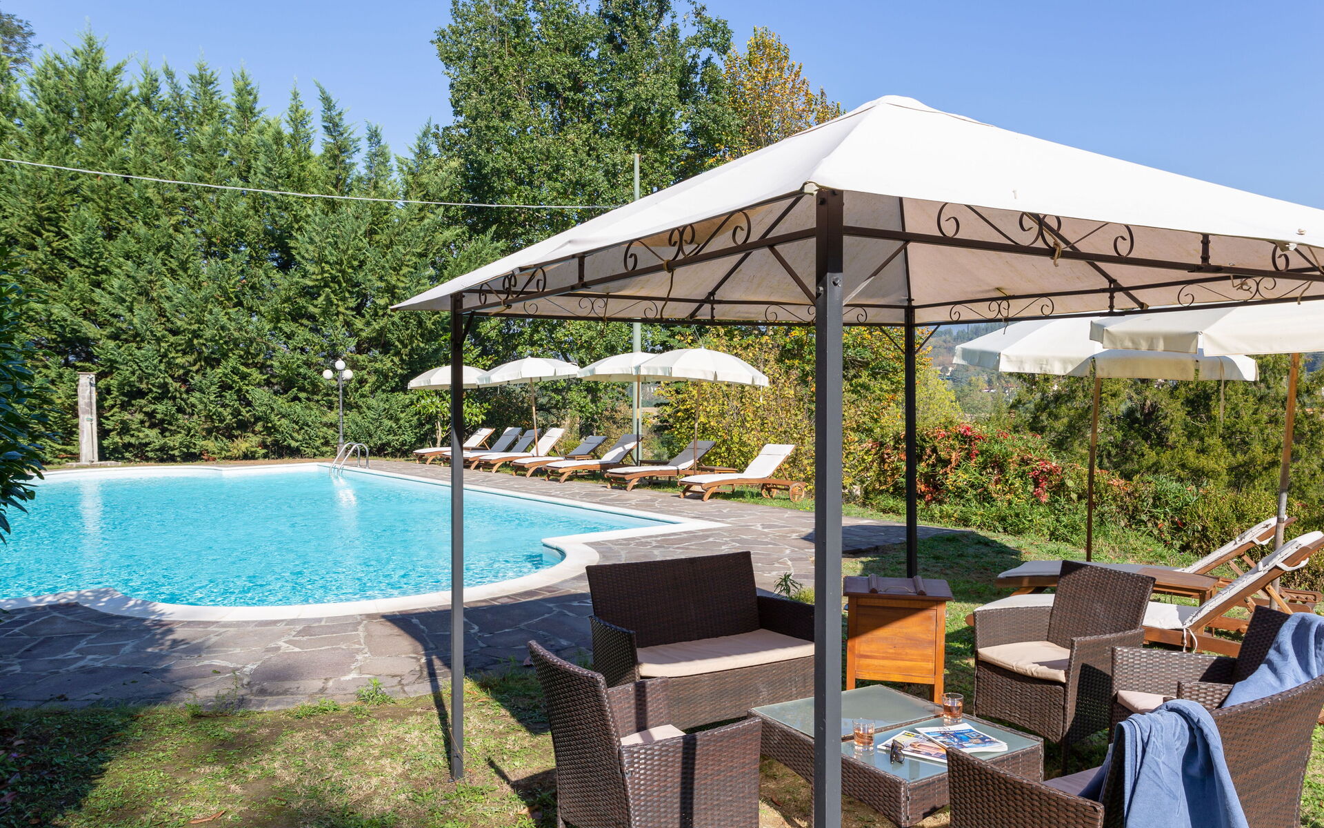 Garden (5000 m2): swimming pool (private, length: 16m, width: 8m, depth: 1.5m, outdoor), shower, WIFI internet, al fresco dining, gazebo, garden furniture, 20 sunbeds, enclosed property.