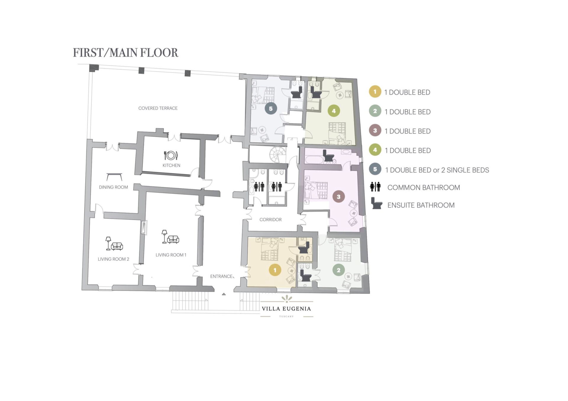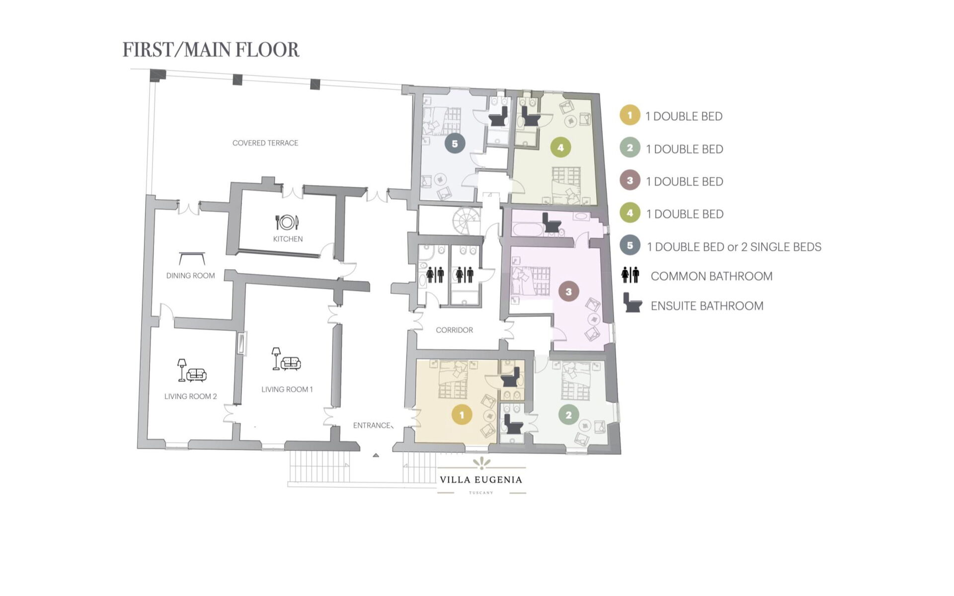 Including: kitchen, 2 living rooms, dining room, 5 bedrooms + ensuite bathroom, 2 bathrooms.
