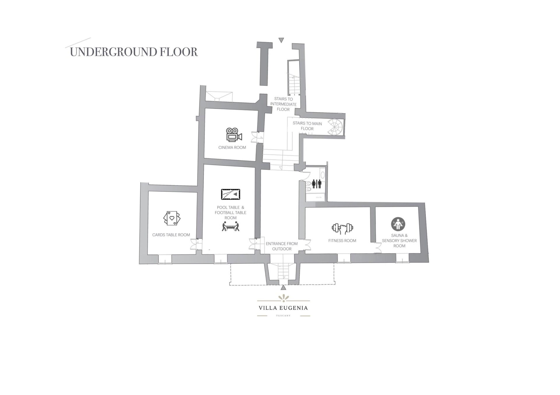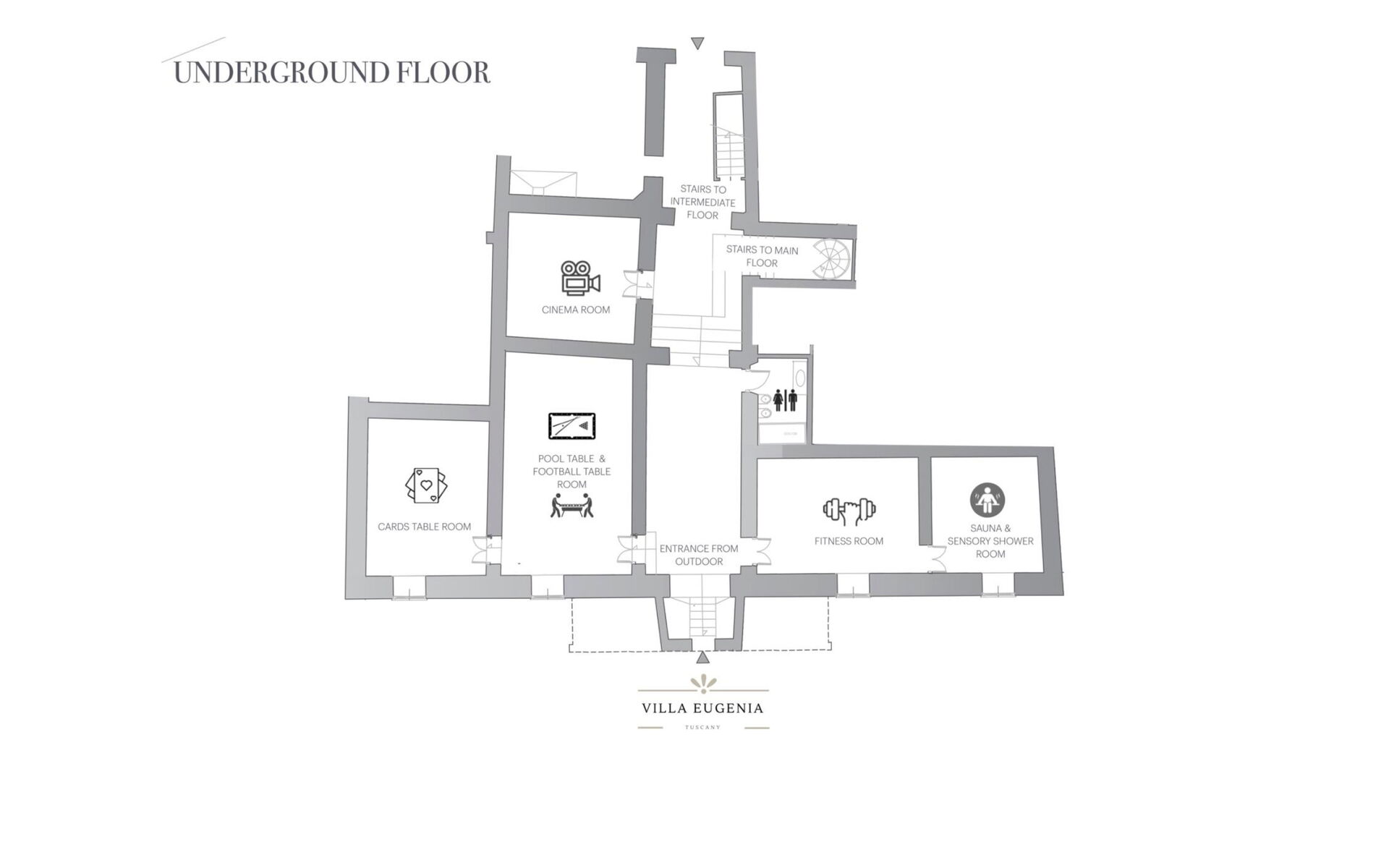 Including: bathroom, gym, spa, 3 generic rooms.