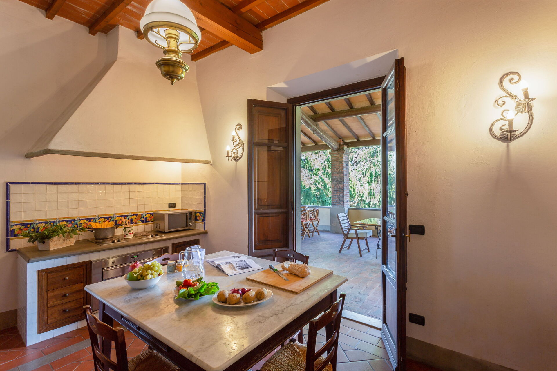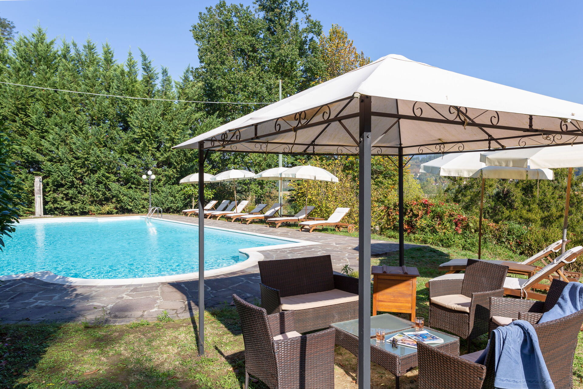 Upon arrival you’ll find a lovely clean well-maintained property with views of the hills ideal for a peaceful holiday in Tuscany. After a hectic day of sightseeing, spend some time with friends and family poolside enjoying a glass of wine - a perfect way to relax at the end the day. Also available outside are a barbecue grill and patio. Sharing a meal with friends and family is a huge part of the Tuscan culture. Take advantage of the well-equipped kitchen to prepare meals using local produce while on your vacation. The kitchen includes coffee machine, microwave, toaster, stove and refrigerator, as well as, plenty of tableware and cutlery for up to 20 people. Dine 'al fresco' like a real Tuscan, the fully furnished veranda is the ideal setting to enjoy food, family and the lovely Tuscan weather.