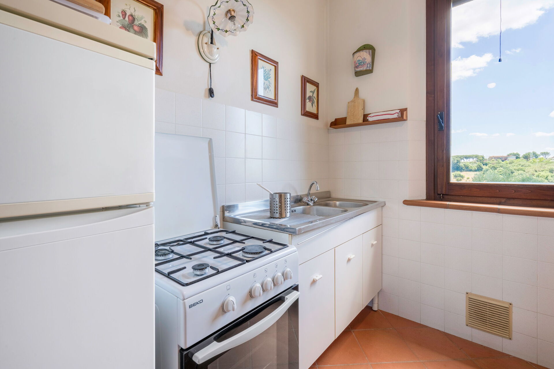 Kitchen: well equipped kitchen, dining table, fridge, freezer, oven.