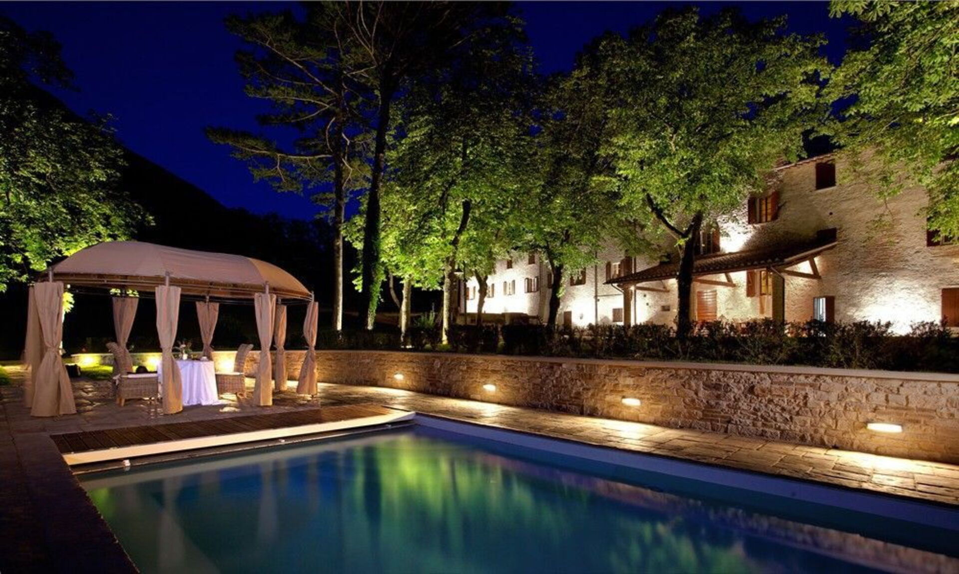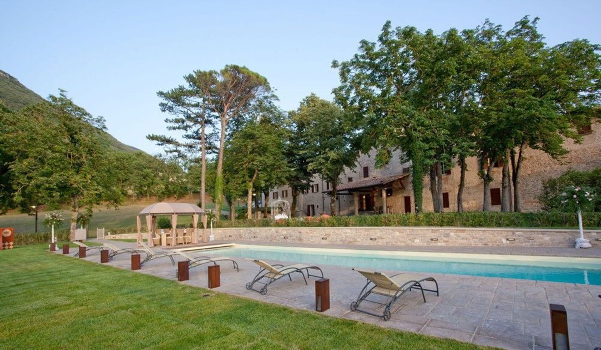 Imposing and elegant country villa situated a short distance away from the beautiful town of Gubbio, in Umbria. This splendid historical villa offers beautiful frescoed rooms as well as a large, well-groomed garden with private swimming-pool.