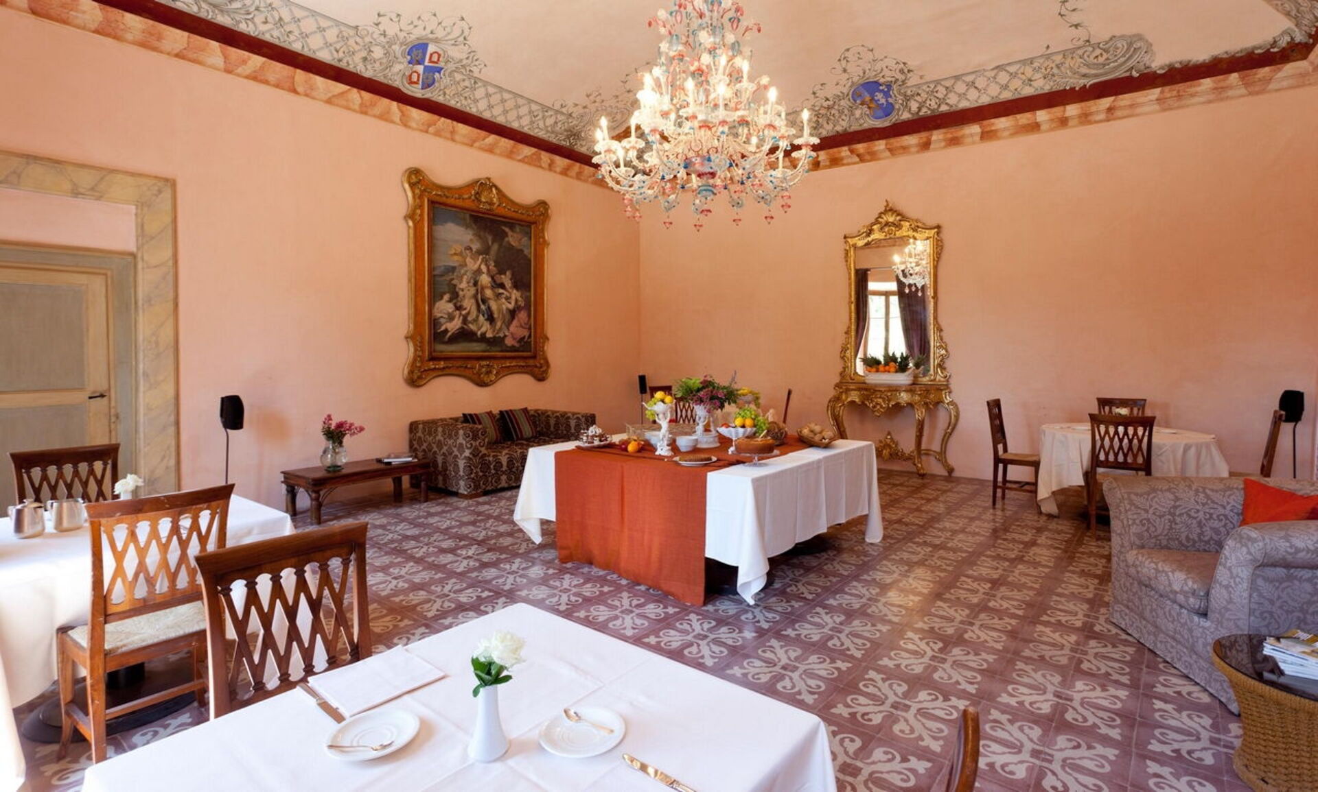 Ground floor: large, frescoed halls with 4 living-rooms (one with satellite TV), 2 toilets, dining-room, kitchen (fridge for drinks, Espresso coffee maker, oven, induction hob, dishwasher).