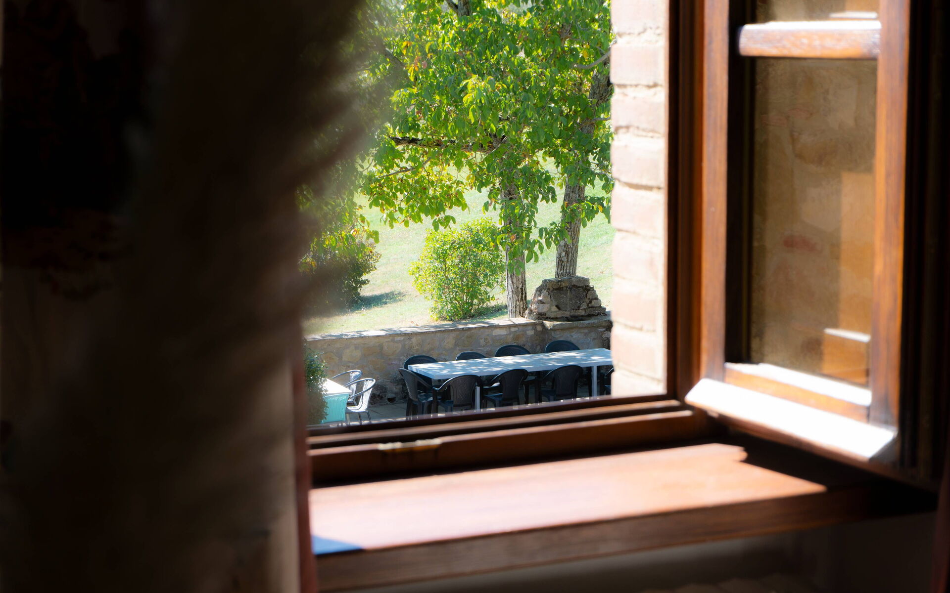 Guests can also enjoy the large shaded terrace equipped with tables, chairs and benches to eat outside and enjoy the view or simply the fresh and clean air of the surrounding valley.