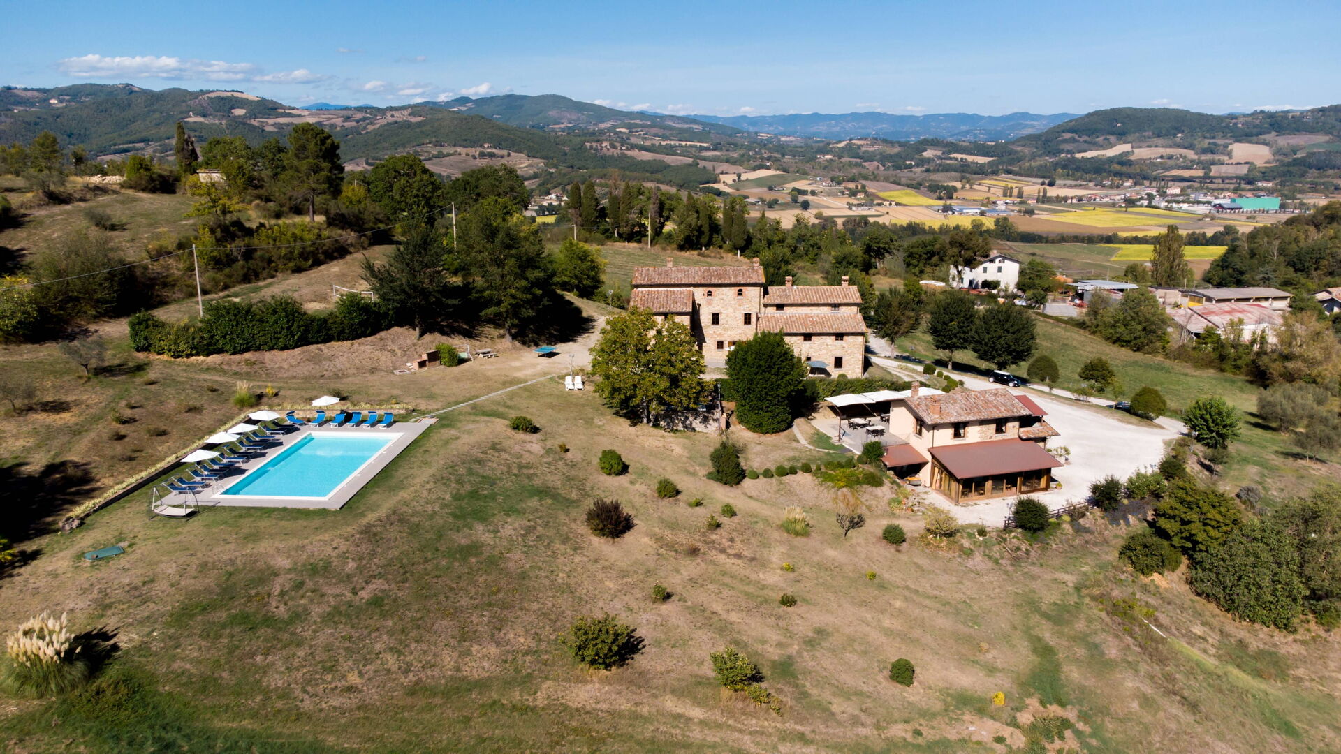 Villa Petrelle is located in a hilly position 400 meters above sea level from which it enjoys a unique view of the upper Tiber valley surrounded by green fields and woods but, at the same time, close to medieval villages and cities of absolute interest such as Montone , Citerna, Cortona, Assisi, Spello and Gubbio. The villa with its large outdoor spaces is the ideal place to practice sports, relax and eat wholesome food and drink both Umbrian and Tuscan fine wines.