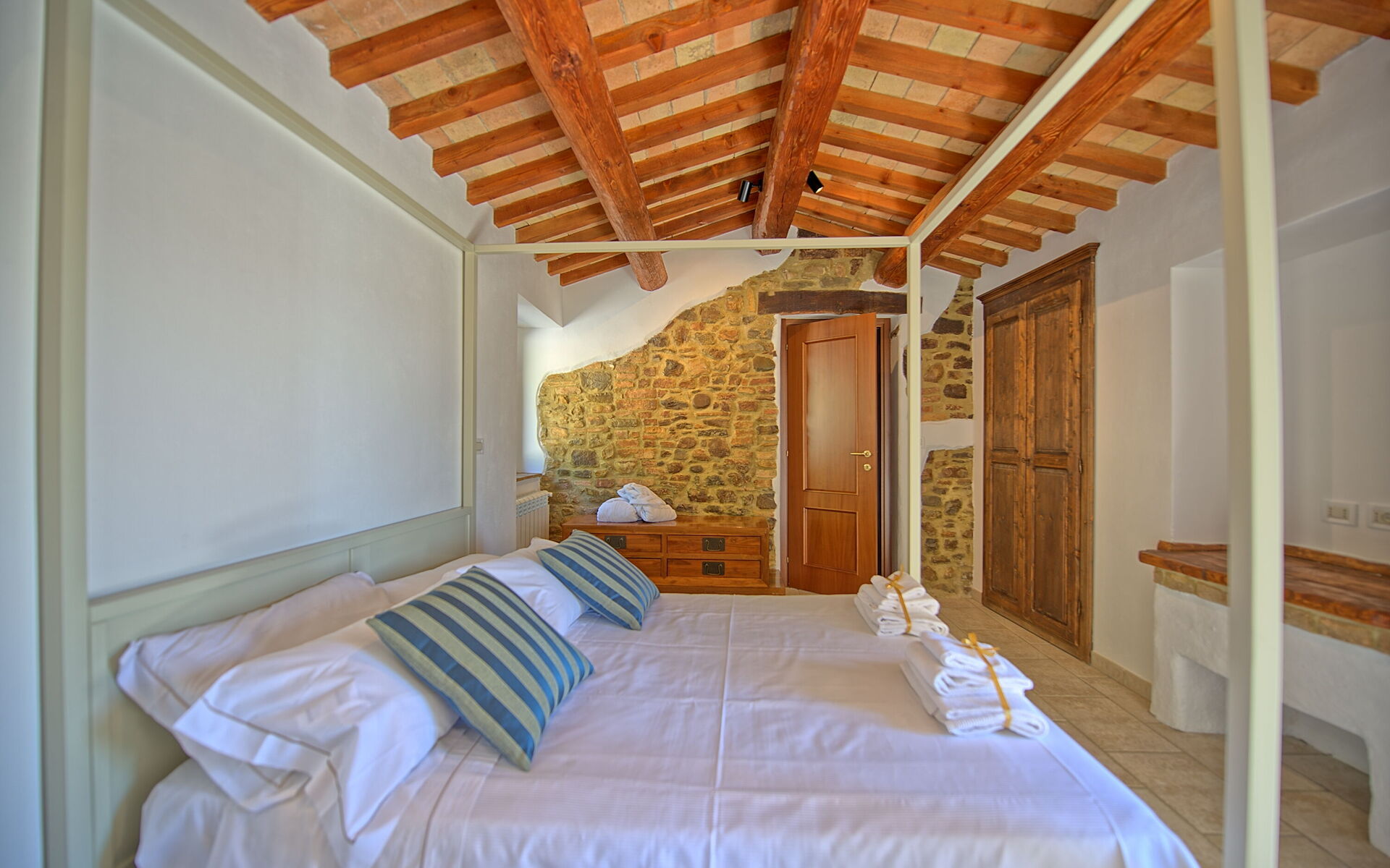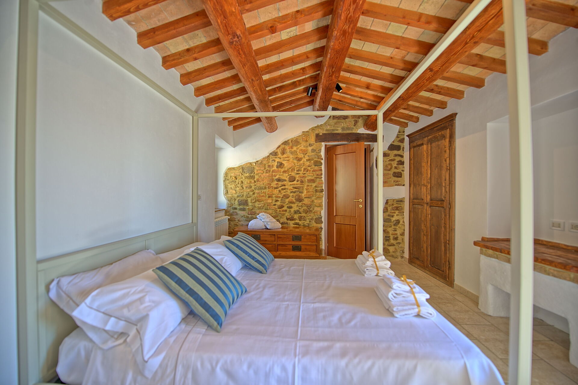 The villa is the result of an old country house renovation, now used as an accommodation. Thanks to its 6 bedrooms, it can sleep up to 12 guests. Interiors has been furnished with taste and they dispose of any kind of modern comfort to guarantee peace and tranquillity.