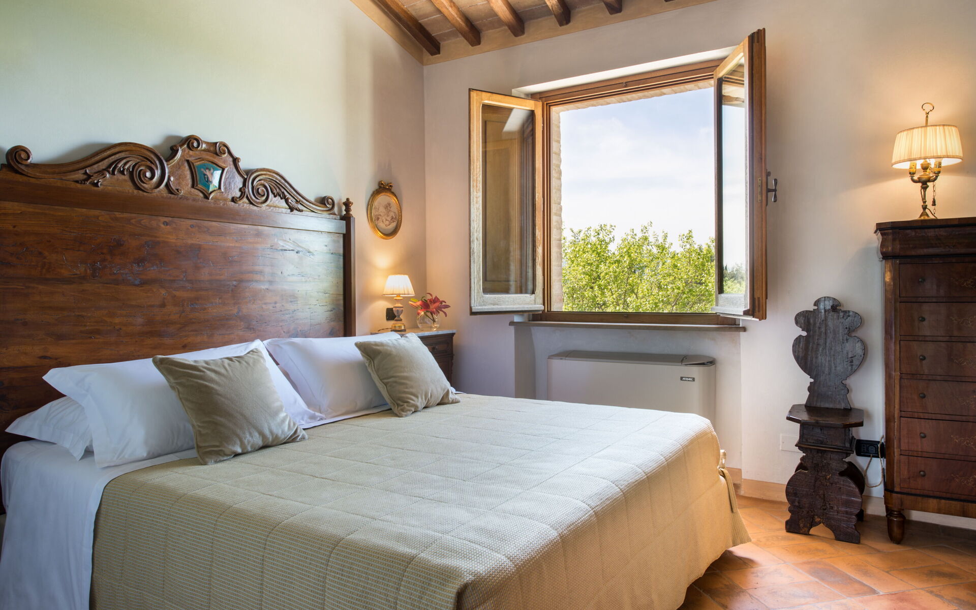Bedroom + Ensuite Bathroom 5 (22 m2): double bed (length: 1.8m, width: 2m), WIFI internet, air conditioning, satellite tv, safe, fridge, basin, toilet, bidet, shower, hairdryer.