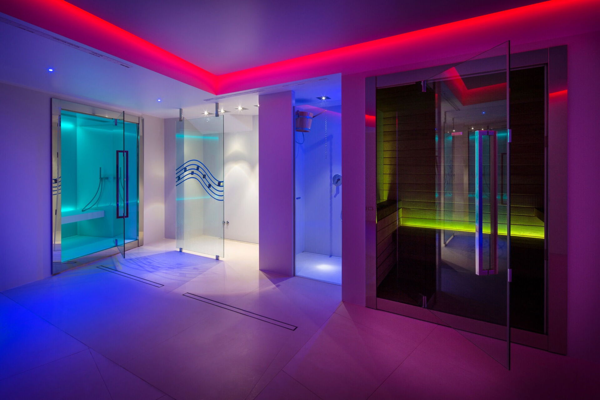 SPA (900 m2): two indoor hot tubs, sauna, exercise equipment, 15 sunbeds, air conditioning, stereo hifi, steam room.
