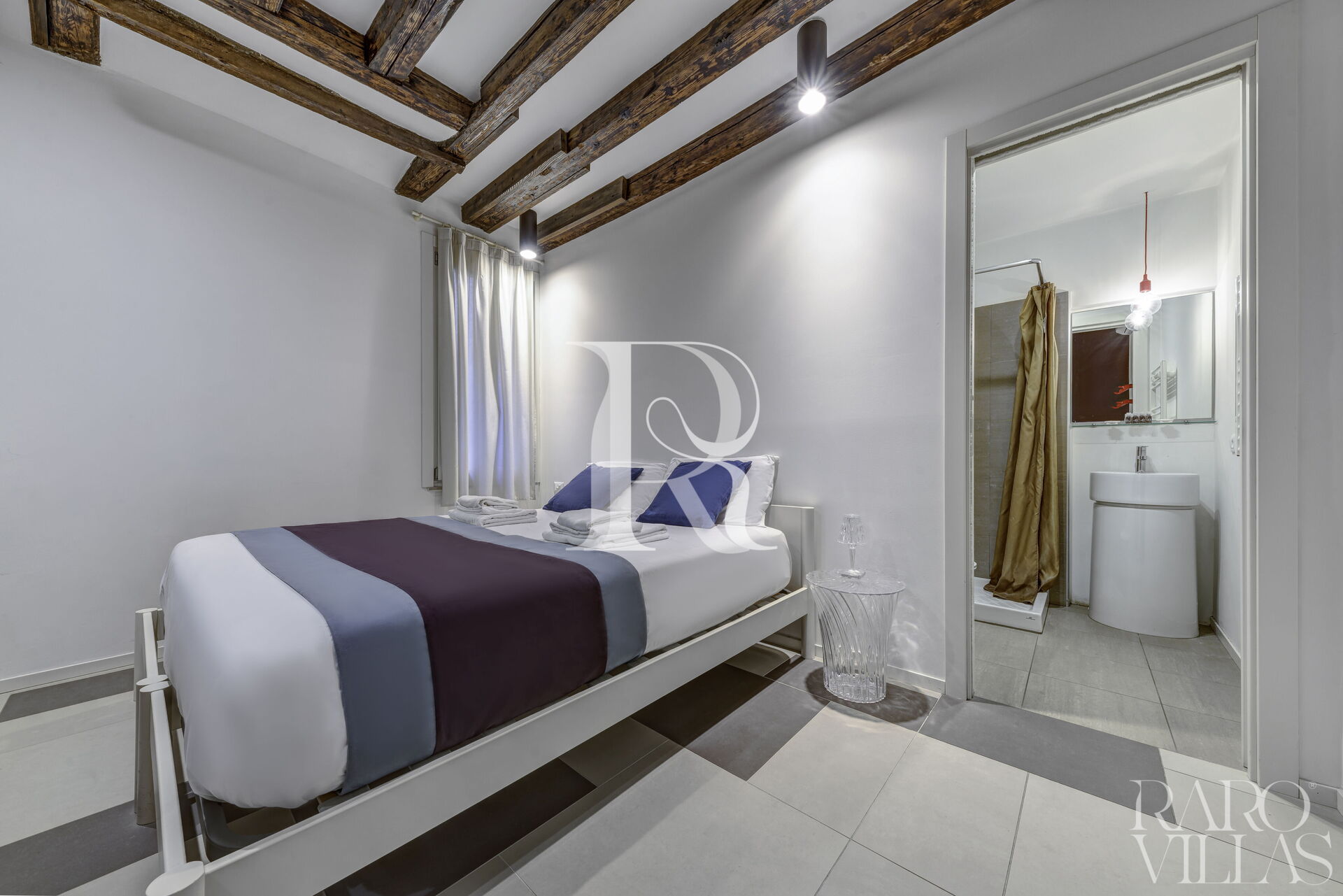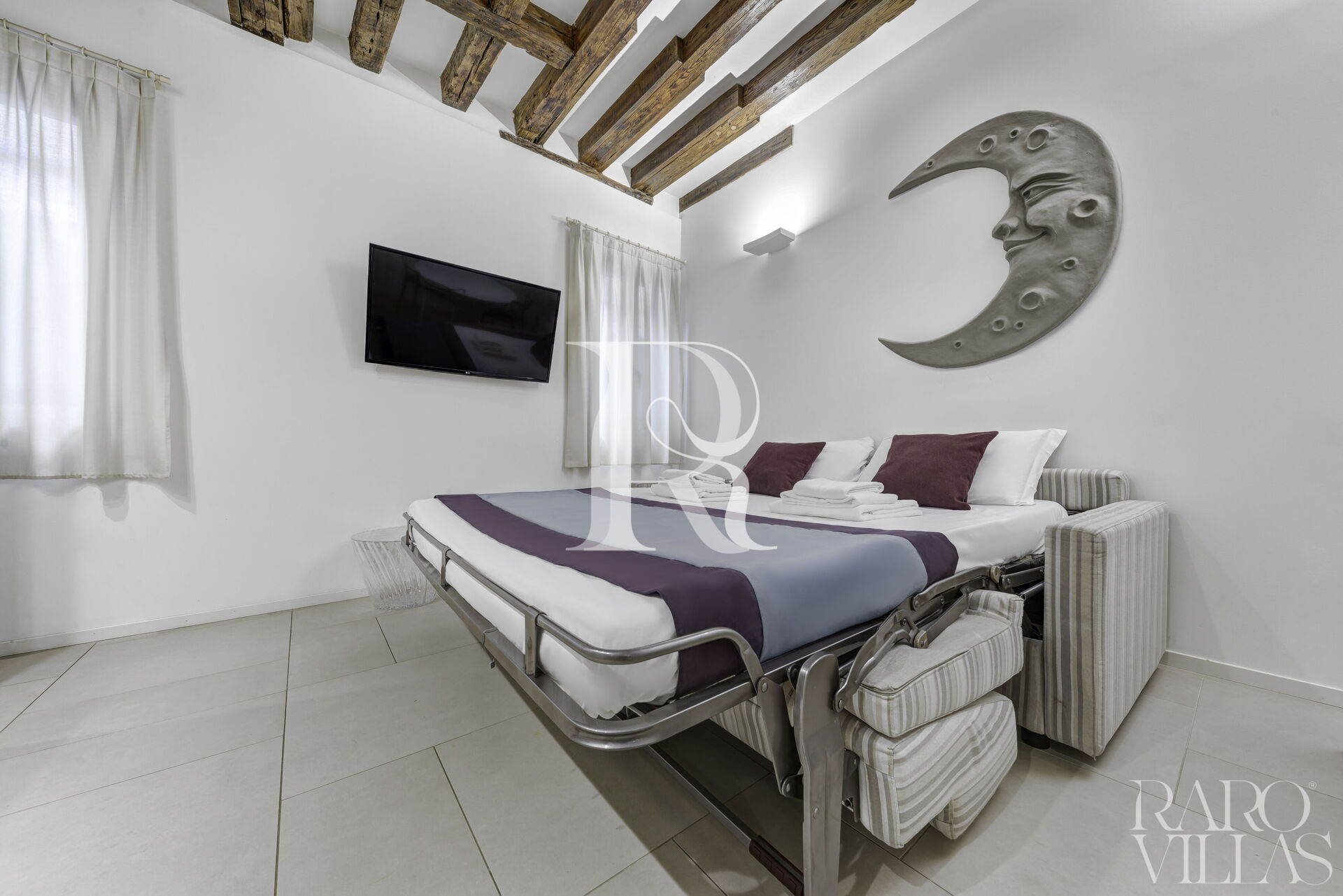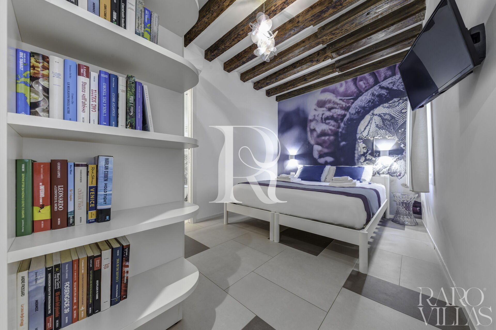 A house in the Dorsoduro district, in Venice, the heart of an eternal spell. This historic home, recently renovated and provided by the latest equipment, is the result of a refined architectural work that has brought to light a building entirely used for hospitality. Each space has been designed to satisfy the needs of the guest. The details, furnishings and utilities meet the highest standards of reception, making possible the achievement of 4 lions, the highest category recognized for holiday homes. The building, at the complete disposal of the guests, is presented with a reception room on the lower floor, then, going up the staircase, two living rooms, equipped with a double sofa bed, two kitchens with induction hobs, dishwashers, refrigerators and microwave ovens , four double bedrooms (two of those are available with single beds, if required) and three bathrooms, all with shower. Each room has air conditioning. The heating is autonomous and programmable for each area of the house. There are 3 TVs, one in each bedroom and one in the living room. The wifi connection is unlimited. Maximum privacy is guaranteed by the presence of an armored entrance door and double glazed windows. The access to the apartment is possible with a code inserted on the special keypad located near the door, which simplifies the access process, avoiding the annoying storage of the keys. The luggage deposit in the building is also granted, thanks to closed and reserved lockers.