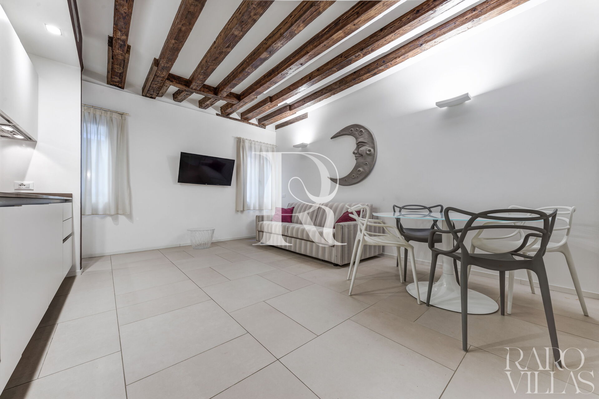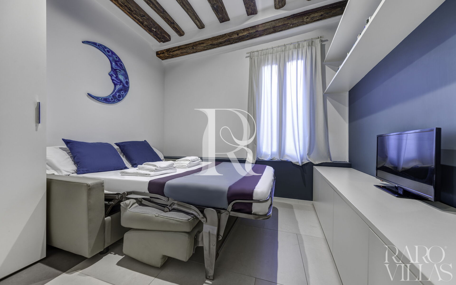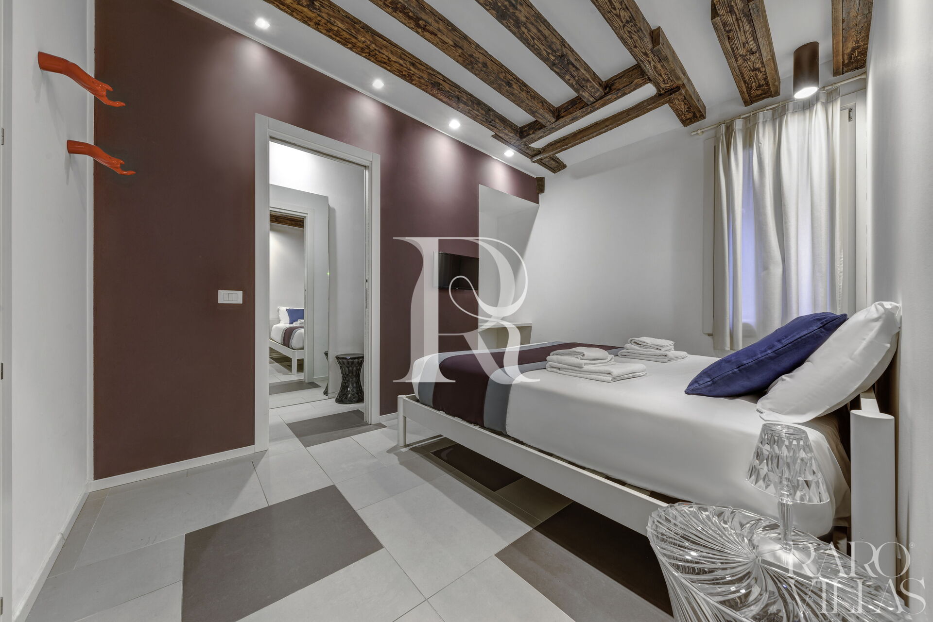 A house in the Dorsoduro district, in Venice, the heart of an eternal spell. This historic home, recently renovated and provided by the latest equipment, is the result of a refined architectural work that has brought to light a building entirely used for hospitality. Each space has been designed to satisfy the needs of the guest. The details, furnishings and utilities meet the highest standards of reception, making possible the achievement of 4 lions, the highest category recognized for holiday homes. The building, at the complete disposal of the guests, is presented with a reception room on the lower floor, then, going up the staircase, two living rooms, equipped with a double sofa bed, two kitchens with induction hobs, dishwashers, refrigerators and microwave ovens , four double bedrooms (two of those are available with single beds, if required) and three bathrooms, all with shower. Each room has air conditioning. The heating is autonomous and programmable for each area of the house. There are 3 TVs, one in each bedroom and one in the living room. The wifi connection is unlimited. Maximum privacy is guaranteed by the presence of an armored entrance door and double glazed windows. The access to the apartment is possible with a code inserted on the special keypad located near the door, which simplifies the access process, avoiding the annoying storage of the keys. The luggage deposit in the building is also granted, thanks to closed and reserved lockers.