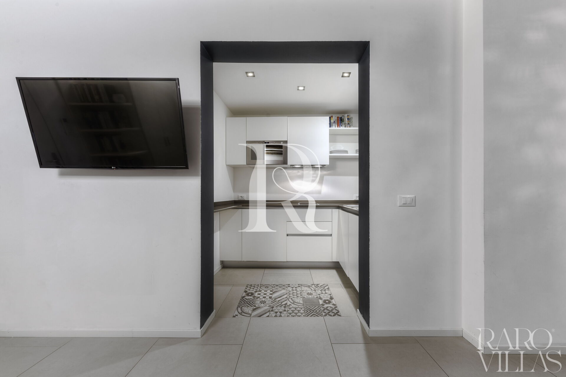 Kitchen + living room 1: air conditioning, well equipped kitchen, sofa bed double, fridge, WIFI internet, dishwasher, italian coffee machine, microwave, stove top, dining table, television.