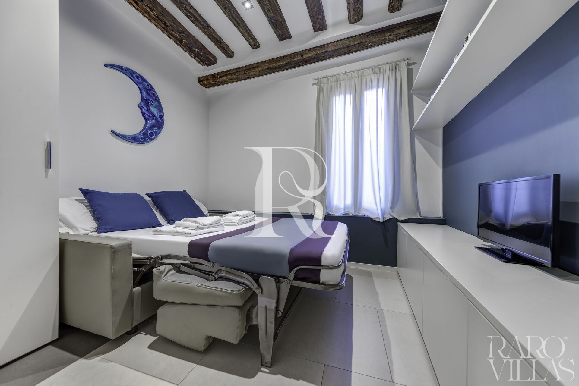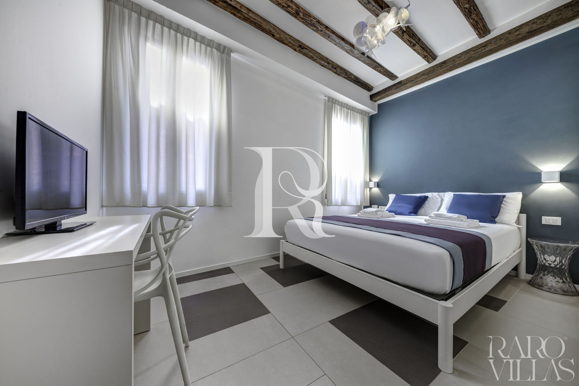 In the heart of Venice, breathing history, observing colors, admiring an eternal spell. Accademia inn Palace, in a strategic position, a few steps from the Accademia and near Piazza San Marco, is the ideal solution for a city tour or a romantic stop among the canals. This elegant building, with fine finishes and latest-generation equipment, accommodates up to 12 guests in maximum comfort: with air conditioning, equipped kitchen, TVs and unlimited wifi.
