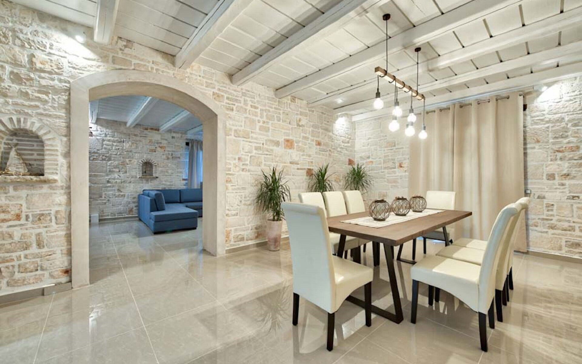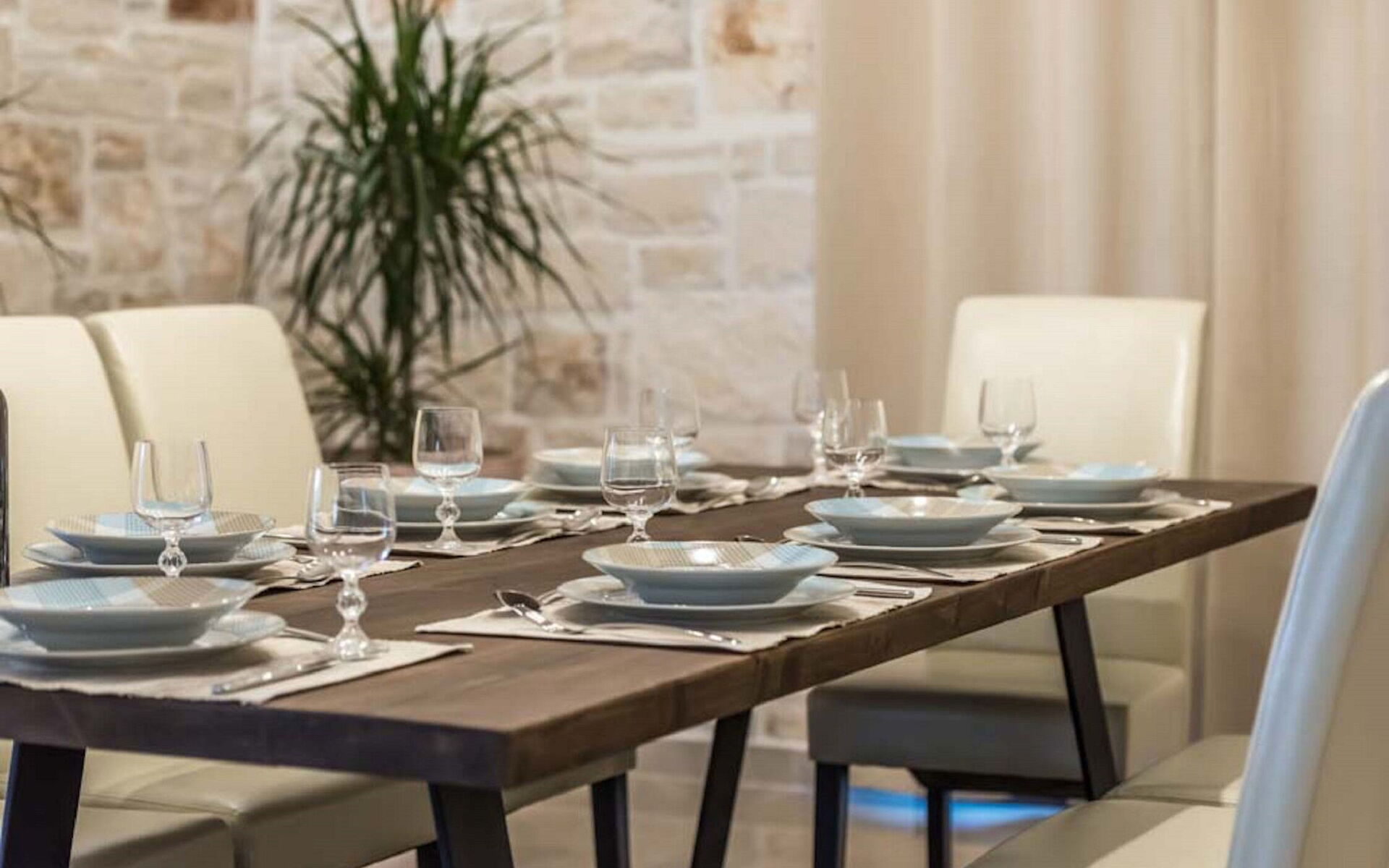 Keuken – woonkamer: goed uitgeruste keuken, eettafel (personen: 8), vaatwasser, ijskast, magnetron, oven, broodrooster, strijkijzer, bank, fauteuil, open haard, WIFI internet, airconditioning, kinderstoel, satelliet tv, tv, uitgang naar de tuin, uitgang naar de patio.