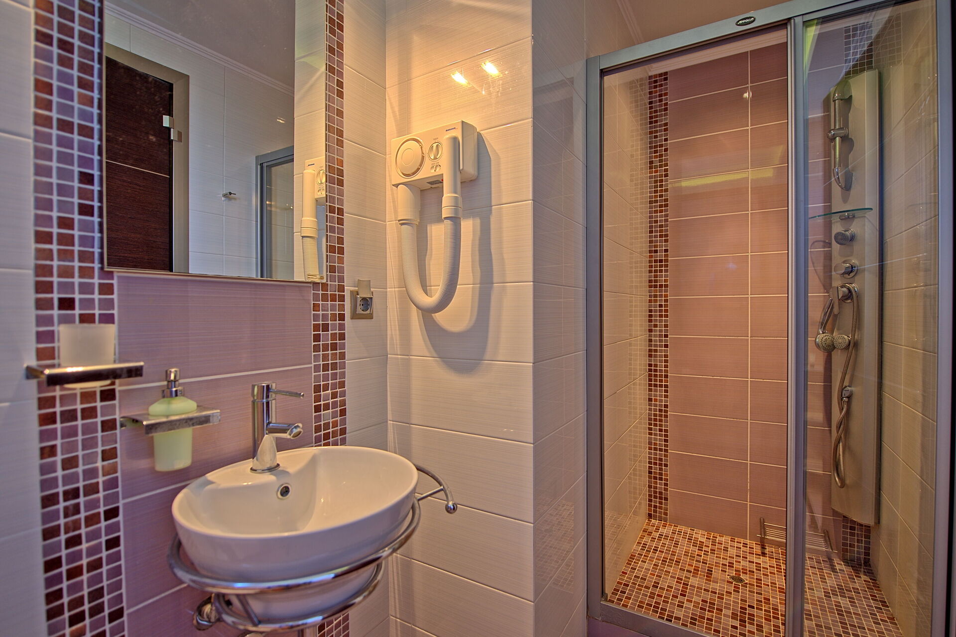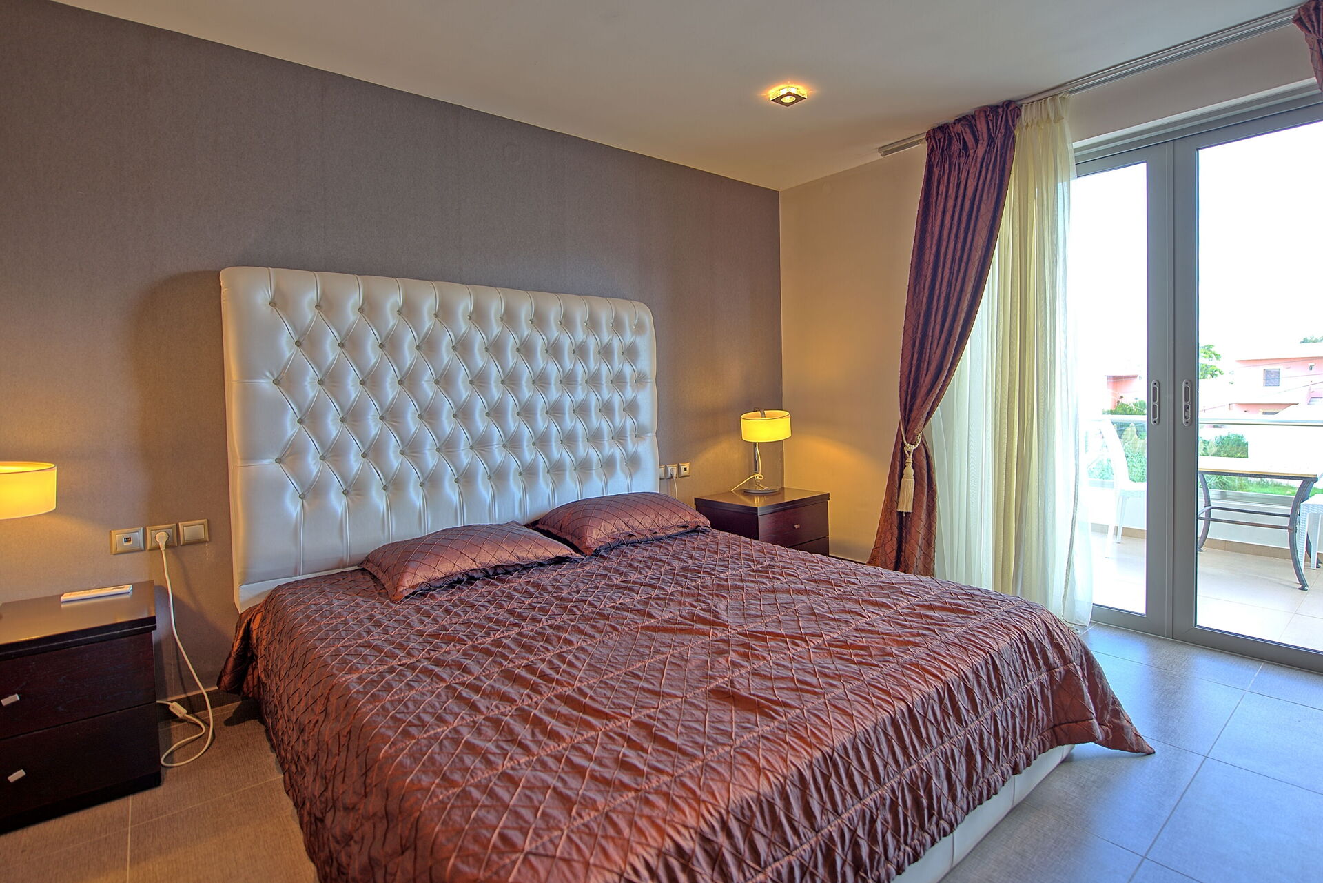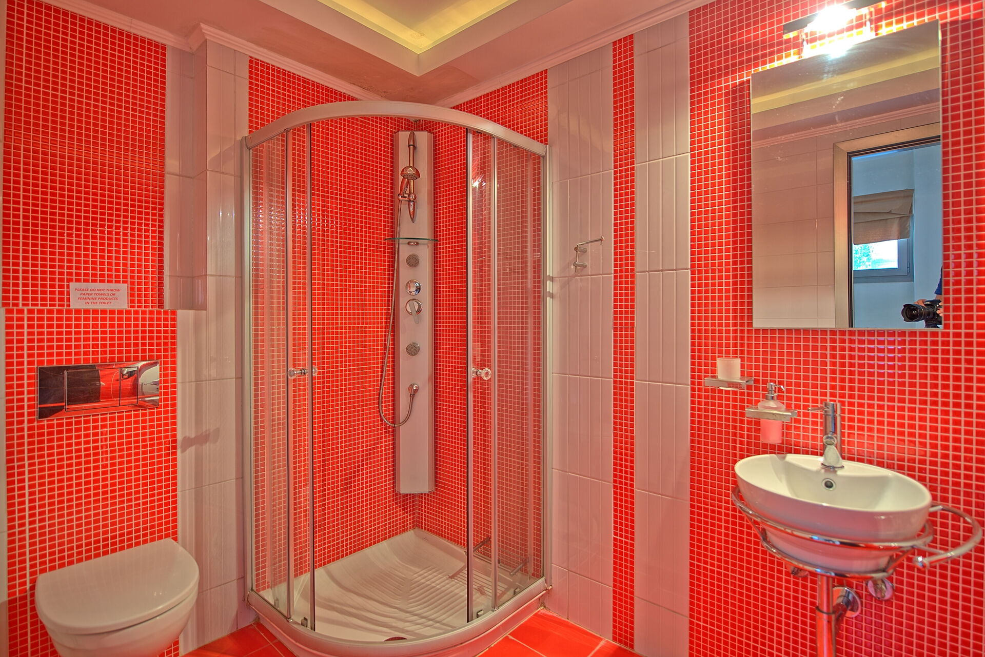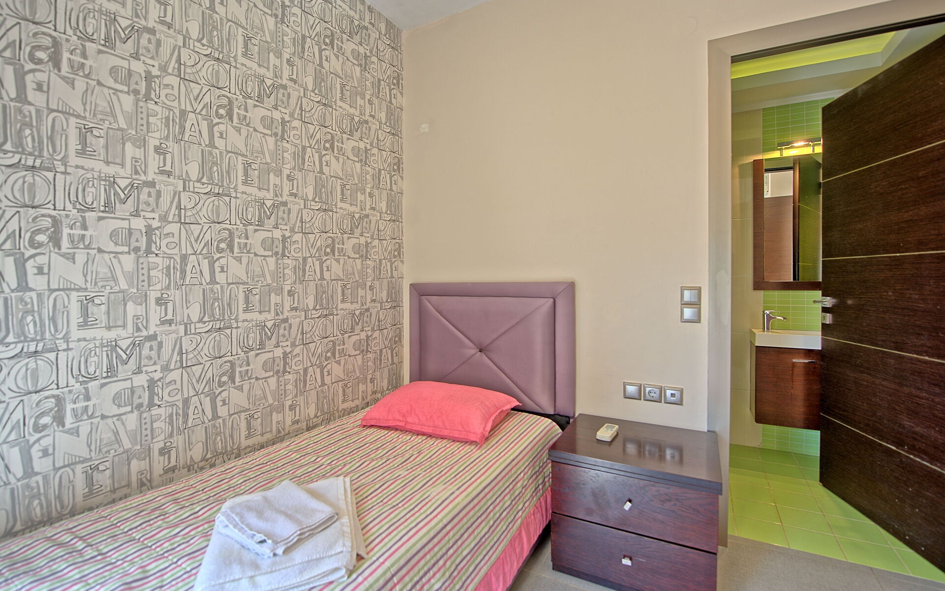 Tweede verdieping: hoofdslaapkamer met tweepersoonsbed met eigen badkamer met bubbelbad en terras; tweepersoons slaapkamer met eigen badkamer met douche; eenpersoonskamer (extra bed voor één persoon kan op aanvraag gratis worden toegevoegd) met eigen badkamer met douche.