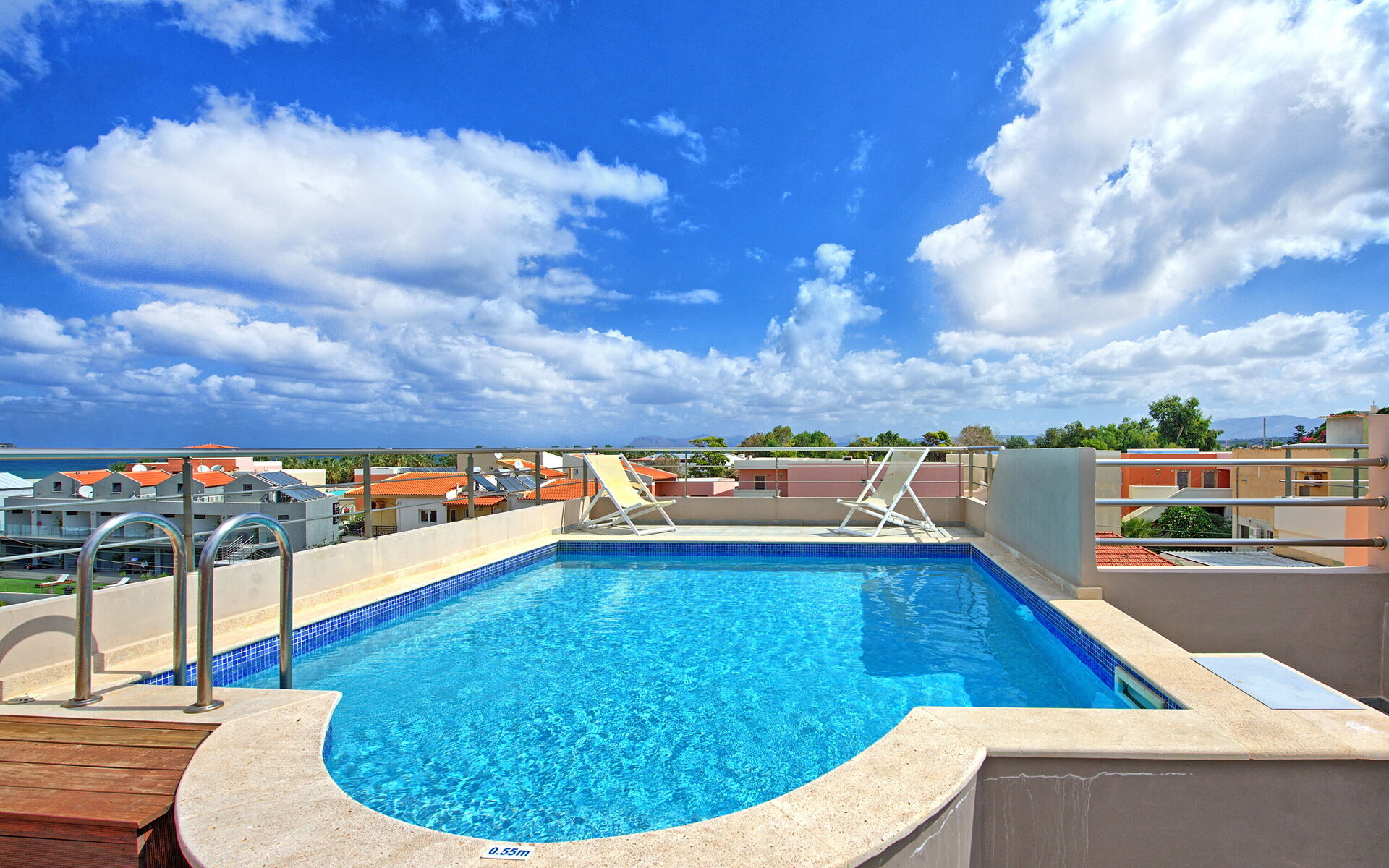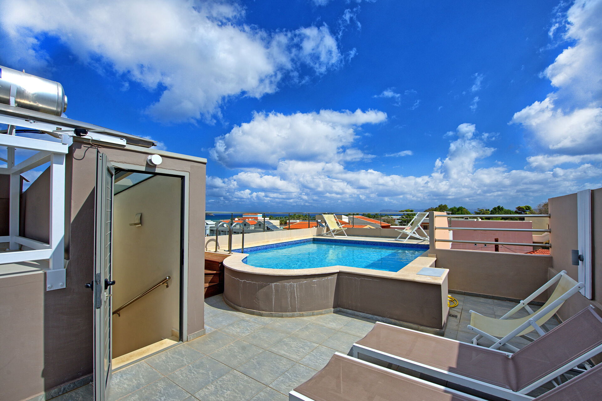 Afstanden: zee 100 meter, Agia Marina (alle soorten winkels) 100 meter, Cabana Mare Beach Club 300 meter, Chania 11 km, luchthaven 30 km.