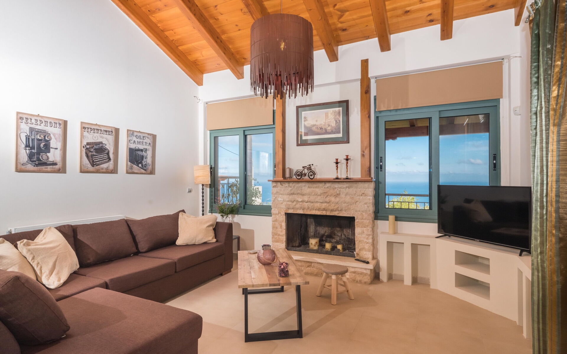 Keuken – woonkamer: goed uitgeruste keuken, eettafel (personen: 8), vaatwasser, ijskast, magnetron, oven, broodrooster, strijkijzer, wasdroger, bank, open haard, WIFI internet, internet, airconditioning, kinderstoel, satelliet tv, uitgang naar het balkon, uitgang naar de tuin, uitgang naar de patio.