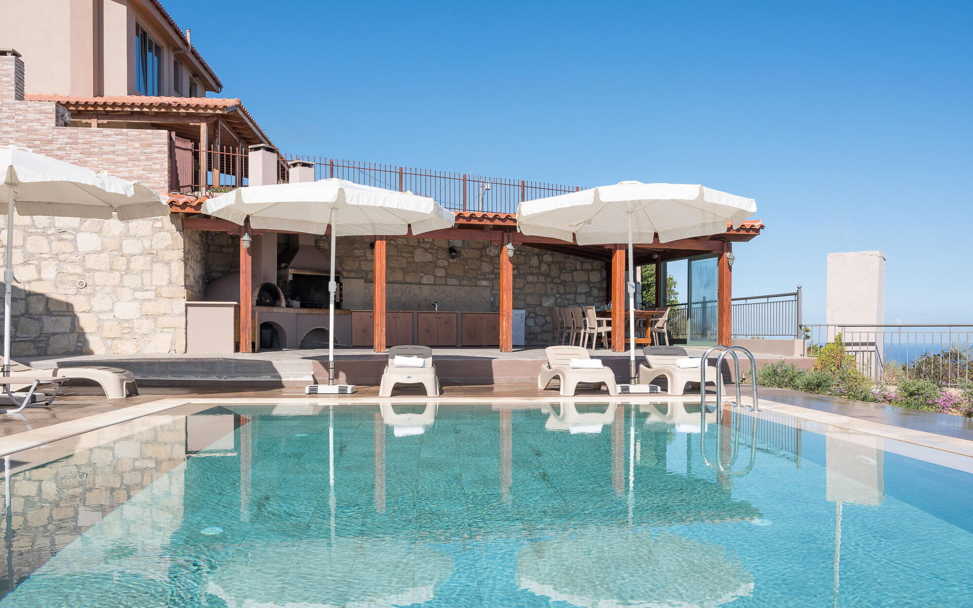 Bij aankomst wordt u welkom geheten door de eigenaar of beheerder en vindt u een mooie, schone en goed onderhouden woning met uitzicht over de zee perfect voor een geweldige vakantie in Kreta. Hoe u de dagen ook doorbrengt - musea bezoek, winkelen, met excursies of rijdende door het prachtige landschap, zodra u thuis komt kunt u uitrusten samen met familie en vrienden bij het zwembad voor een perfecte afsluiting van nog weer een dag in Kreta. Op het terrein is er voor uw genoegen een barbecue en patio. Eten met vrienden en familie is een grote onderdeel van de plaatselijke cultuur. Maak gebruik van de goed uitgeruste keuken om maaltijden te bereiden met lokale producten terwijl u op vakantie bent. De keuken biedt o.a. een koffiezetapparaat, magnetron oven, broodrooster en ijskast, en natuurlijk ook voldoende servies en bestek voor minstens negen personen. Eet buiten net zoals een echte plaatselijke inwoner, een balkon met tuinmeubilair is ideaal om te genieten van het heerlijke eten, de familie en het prachtige lokale klimaat.