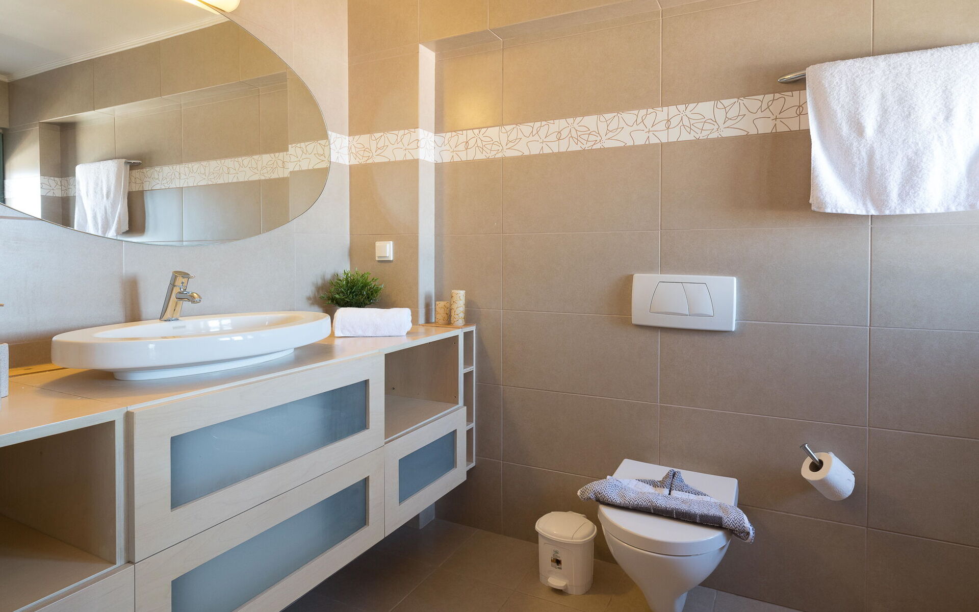 Met: keuken – woonkamer, 2 slaapkamers met badkamer, slaapkamer, badkamer.