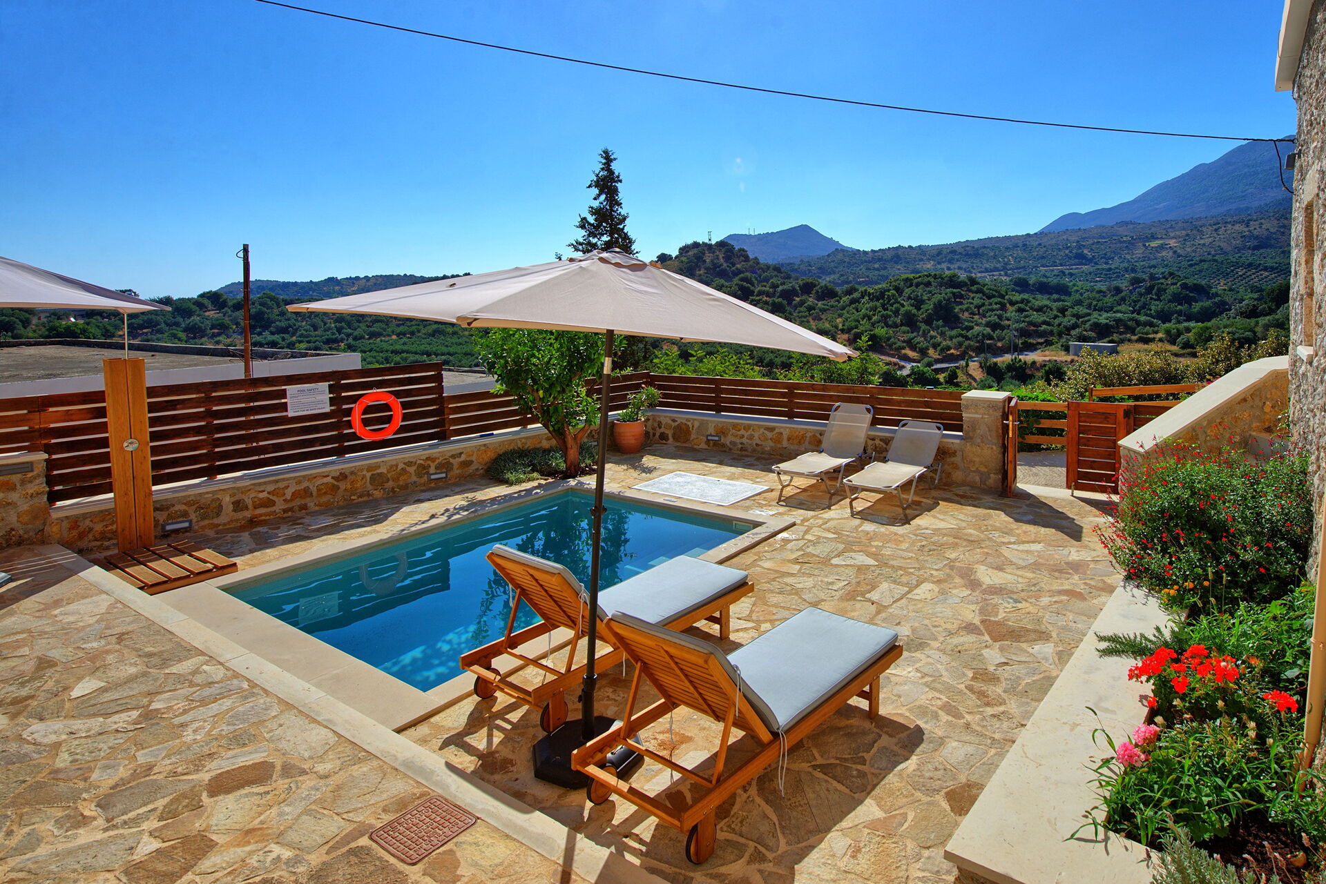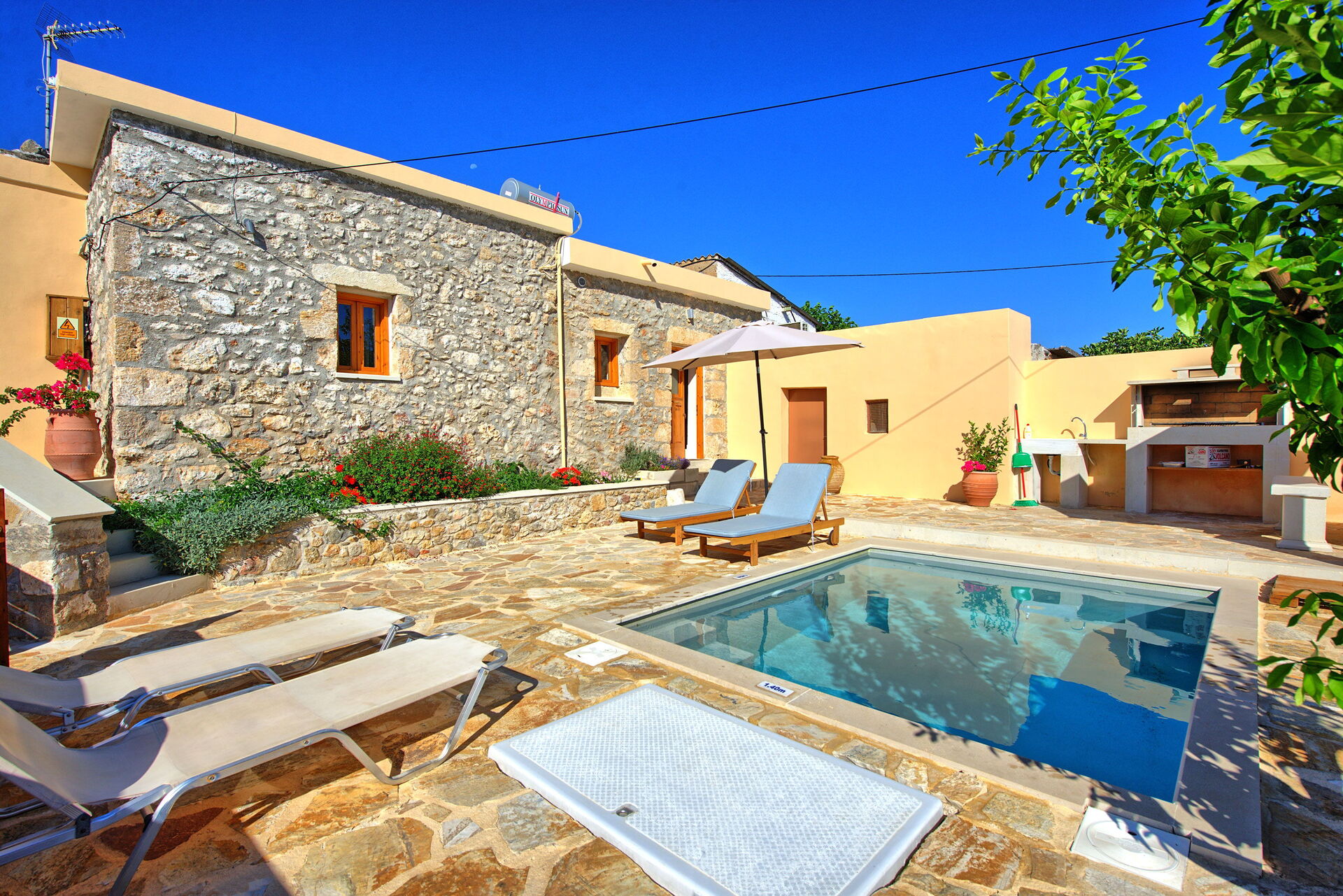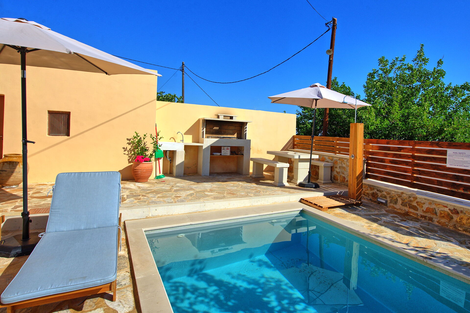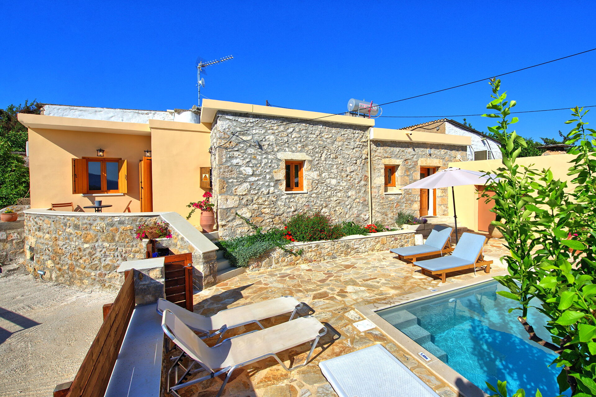 Buiten is er een privézwembad om plezier te hebben en af te koelen op de hete zomerdagen van Kreta.