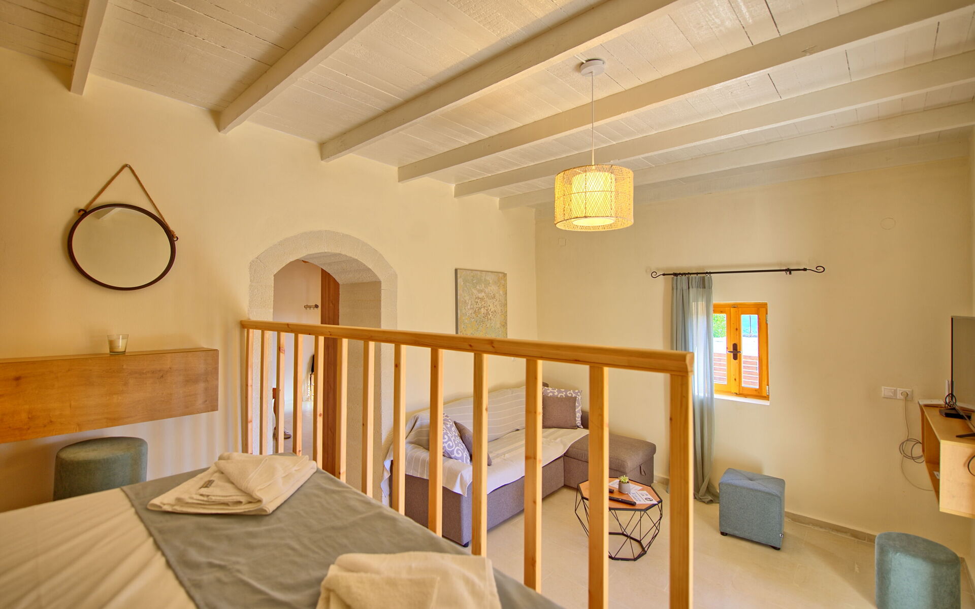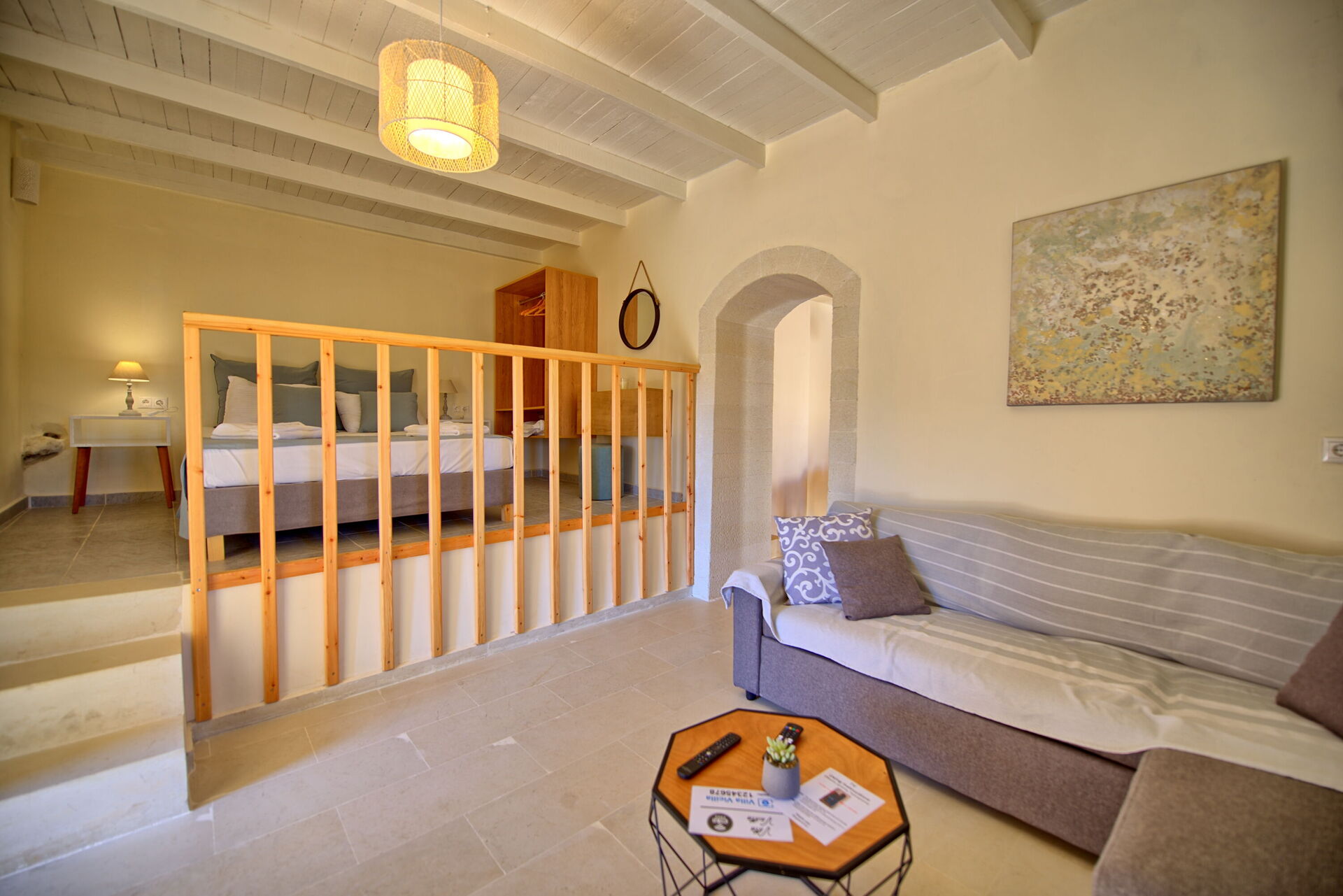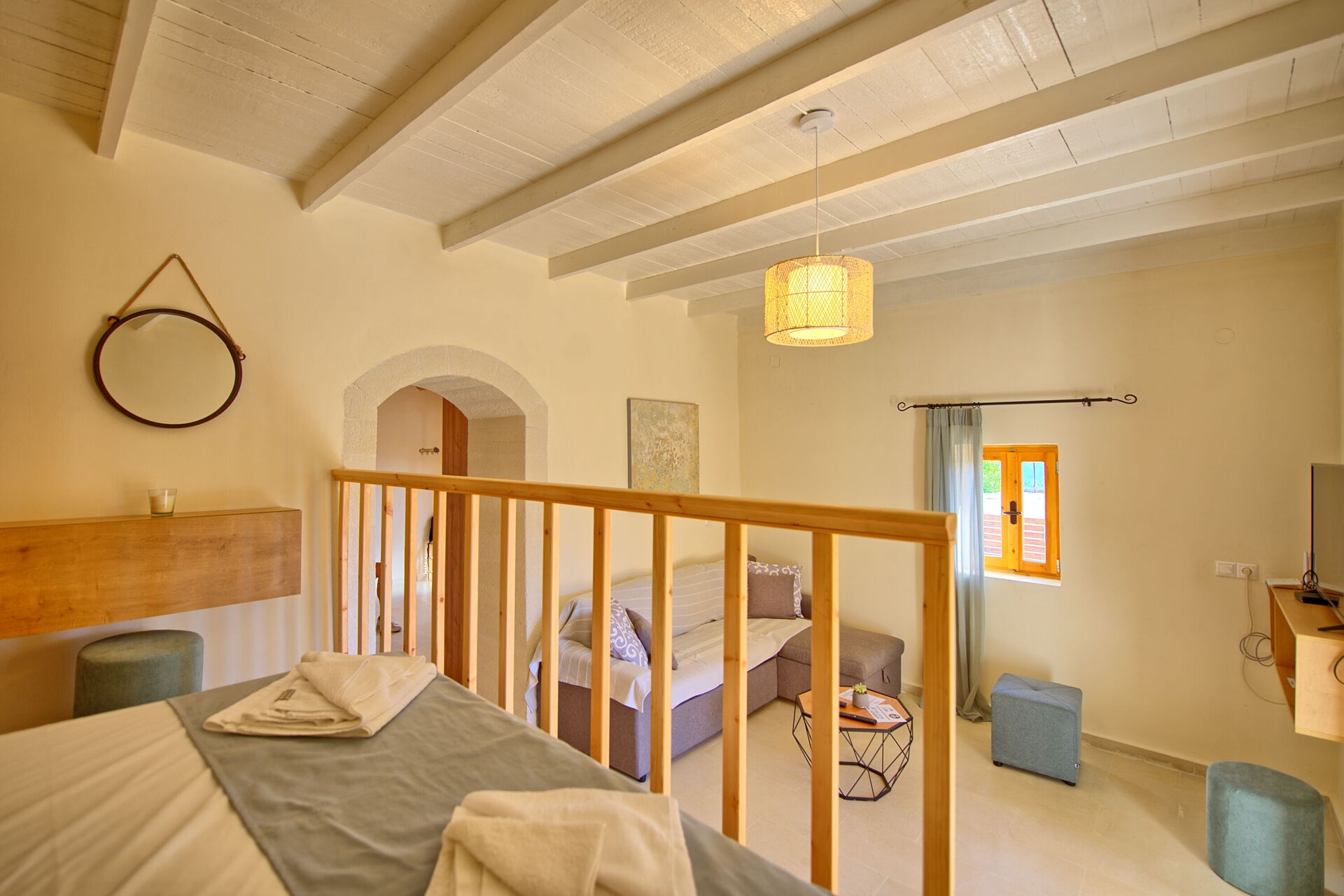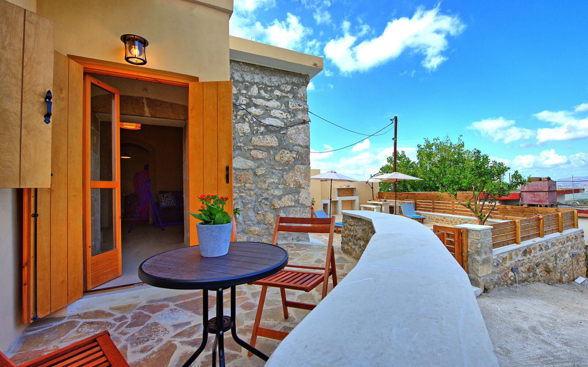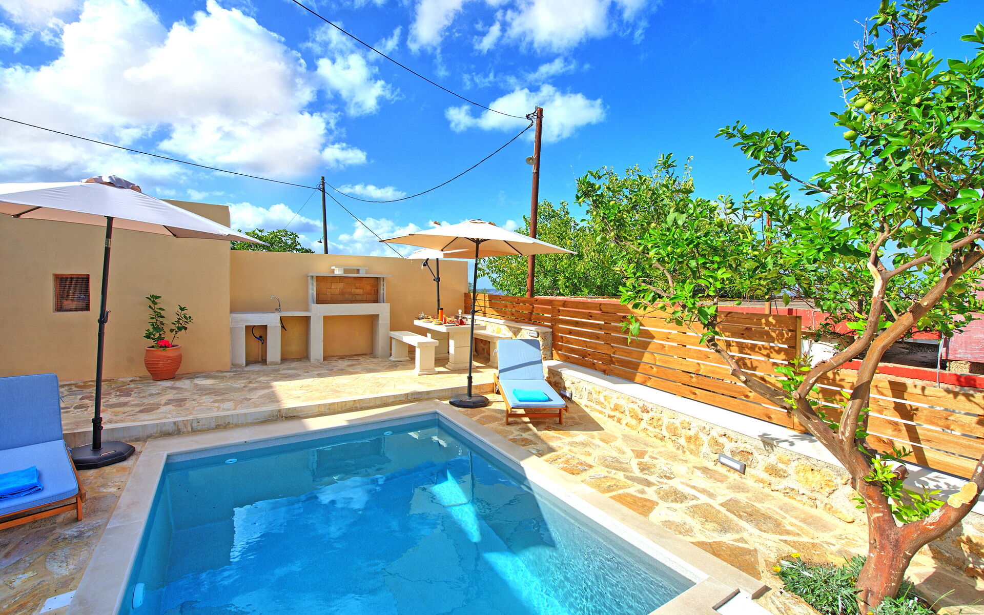 Buiten is er een privézwembad om plezier te hebben en af te koelen op de hete zomerdagen van Kreta.