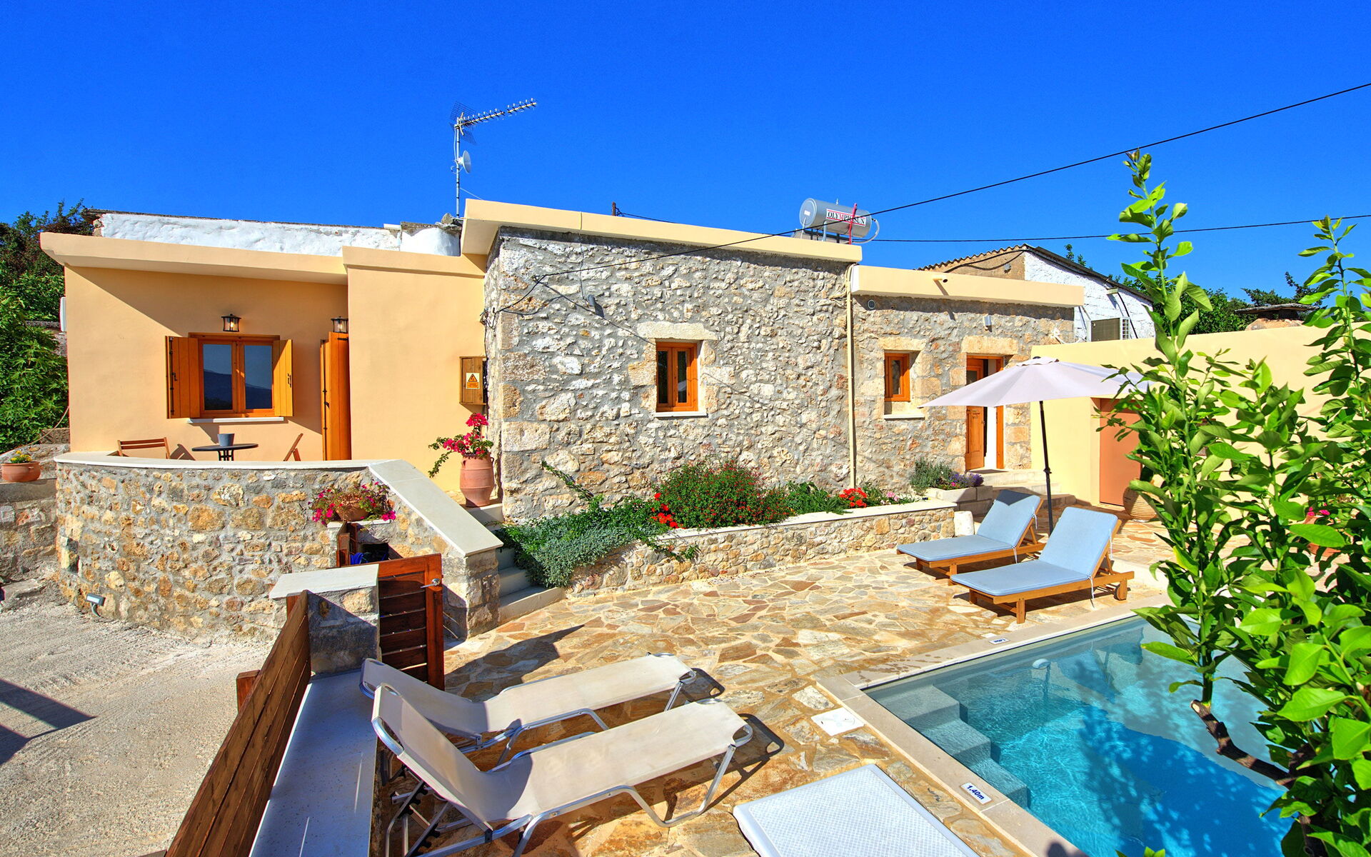 Ter beschikking van de gasten van deze prachtige vakantievilla op Kreta: privé, omheinde buitenruimte; privé zwembad (4 x 3,30 meter; minimale diepte: 1,40 meter; maximale diepte: 1,40 meter); buitentafel, stoelen en barbecue; eigen parkeerplaats op circa 15 meter van de woning; buitendouche; accommodatie voor maximaal 4/5 personen: ideaal voor een stel of een gezin; airconditioning; Wifi-internet.