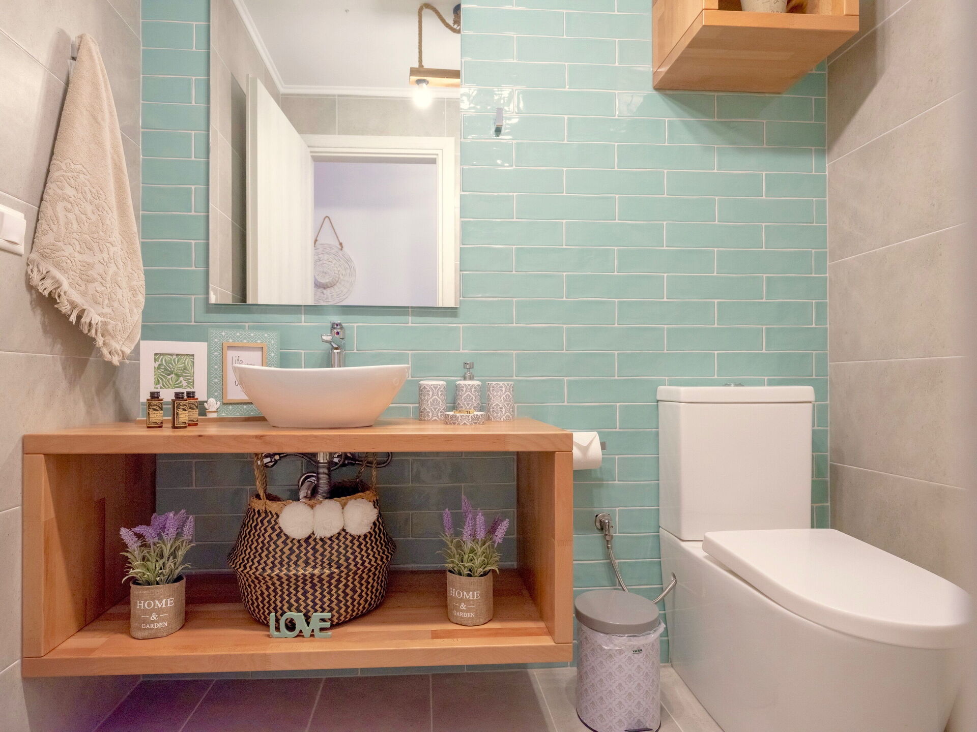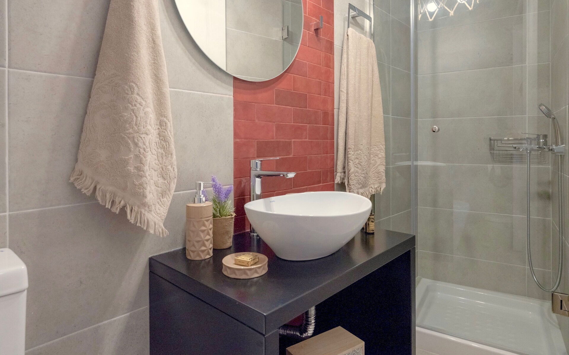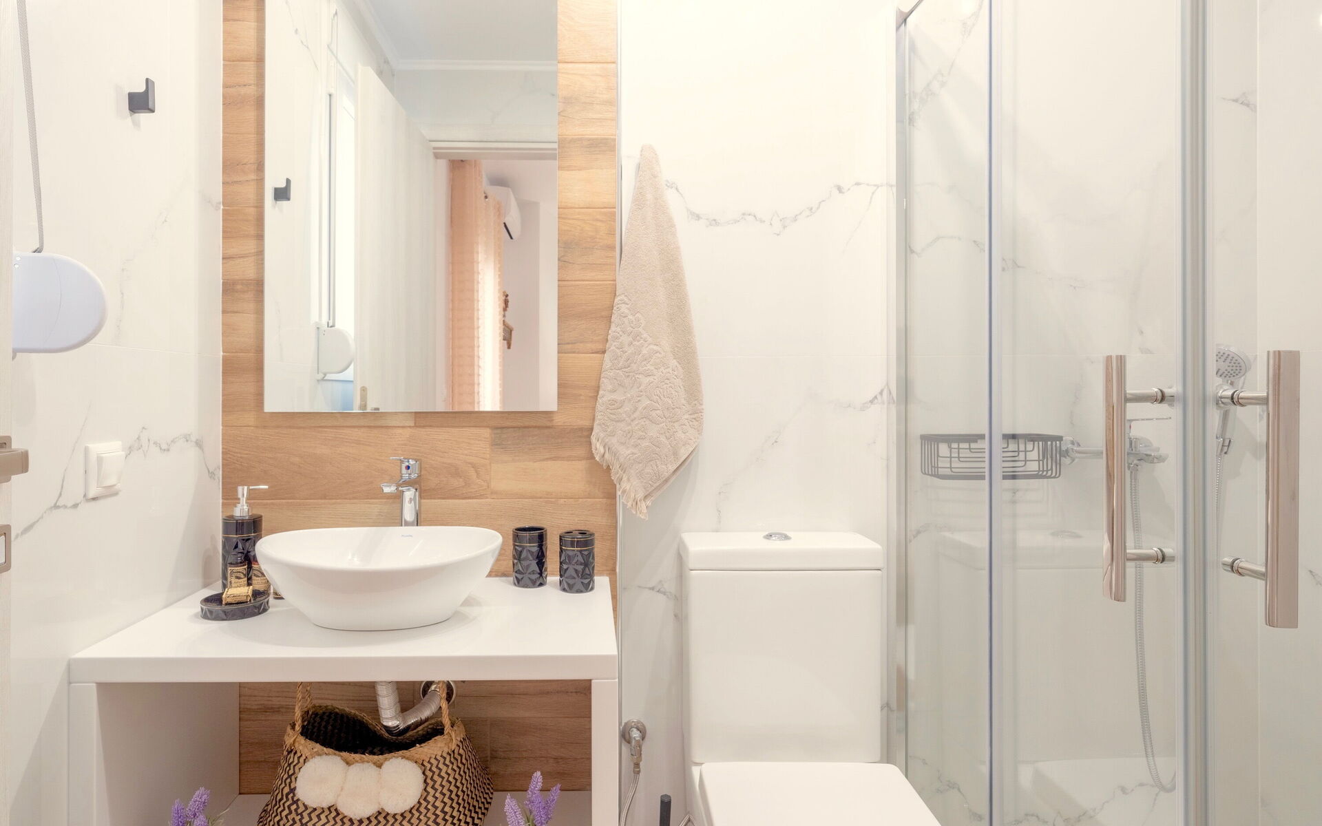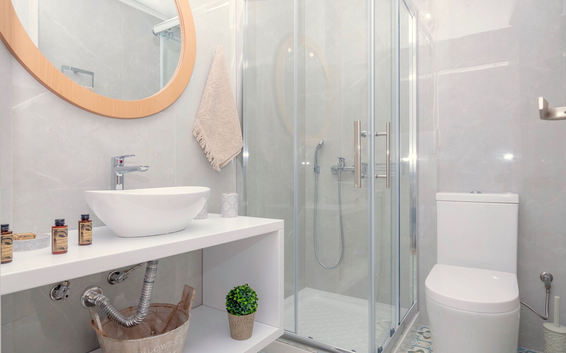 Slaapkamer met badkamer 6: twee eenpersoonsbedden, airconditioning, wastafel, toilet , douche, badkamer zonder raam.