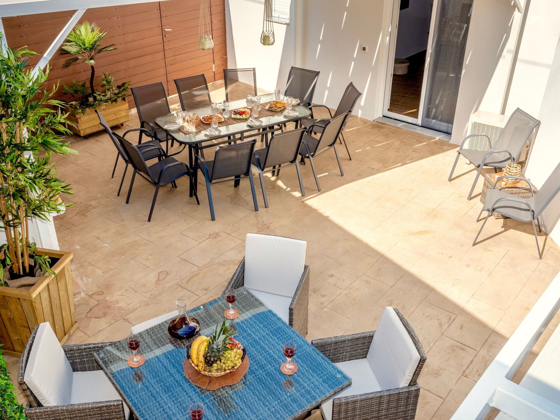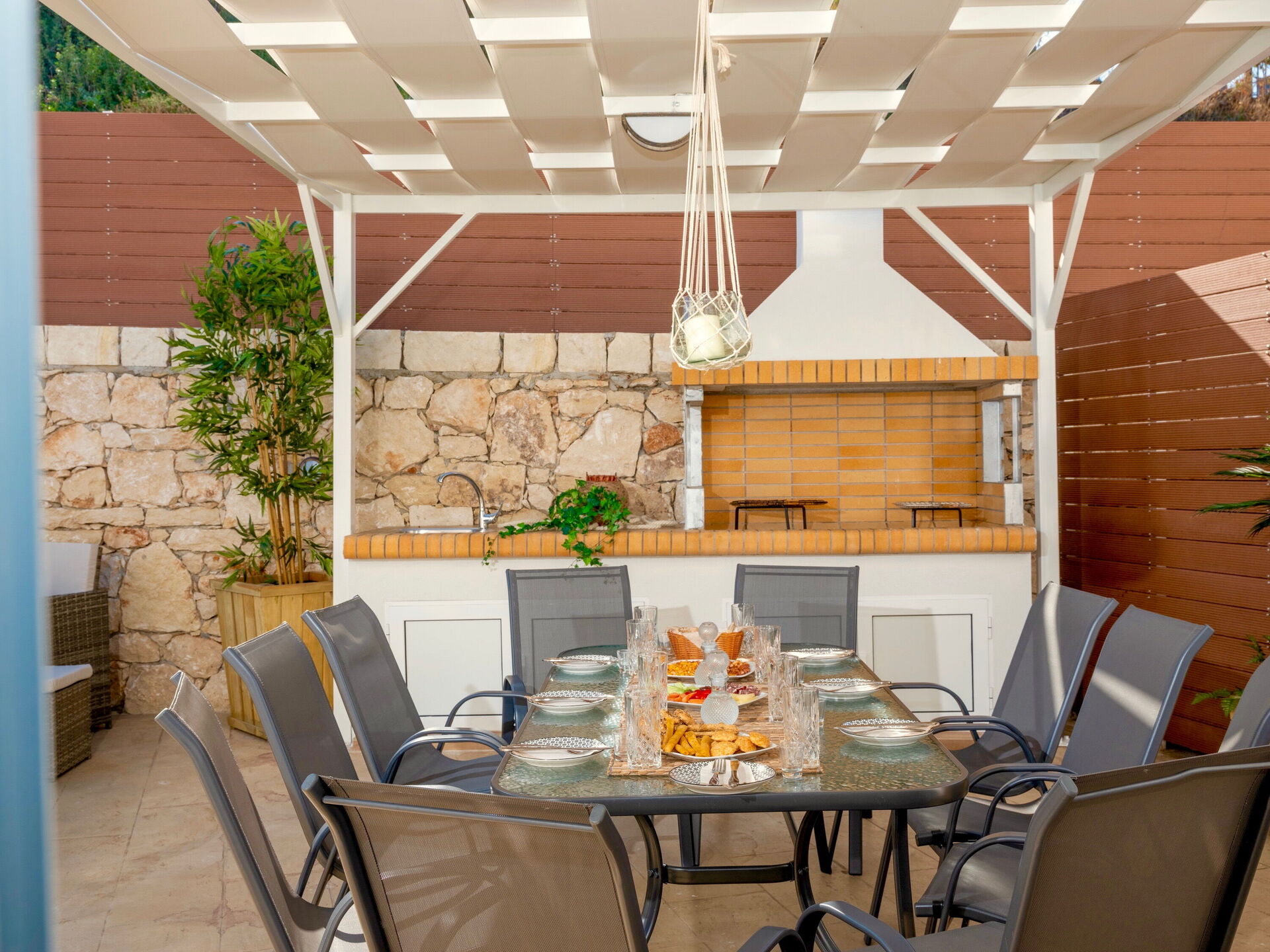 Terras: dineren in de buitenlucht, eettafel, barbecue, terrasmeubilair.