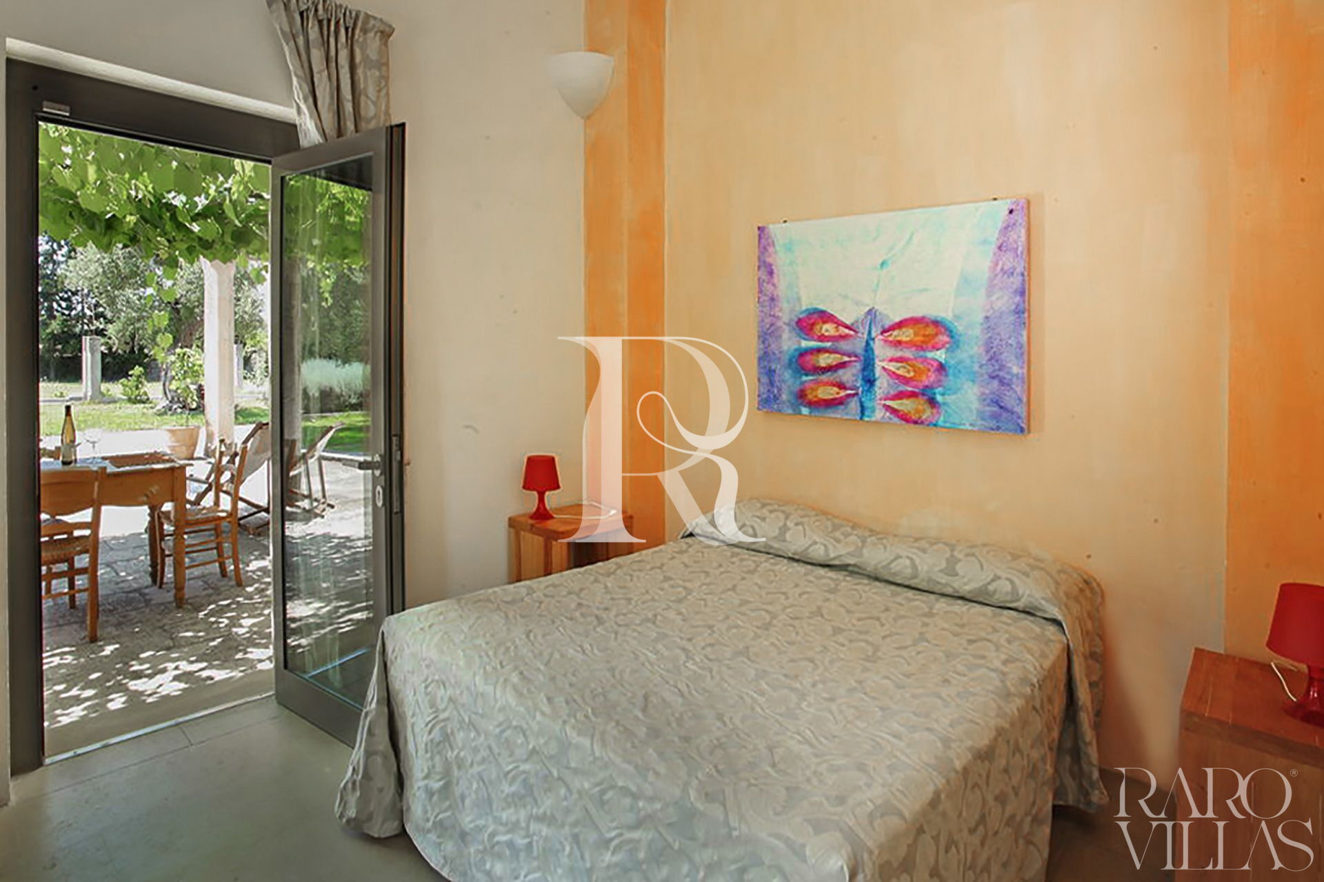 (Plaatsen 2) een panoramische suite bestaande uit een tweepersoonsslaapkamer, een keuken met een uitgeruste kachel, een lichte woonkamer met een bank die toegang geeft tot een terras met uitzicht op het platteland van Salentina, een badkamer met ligbad.