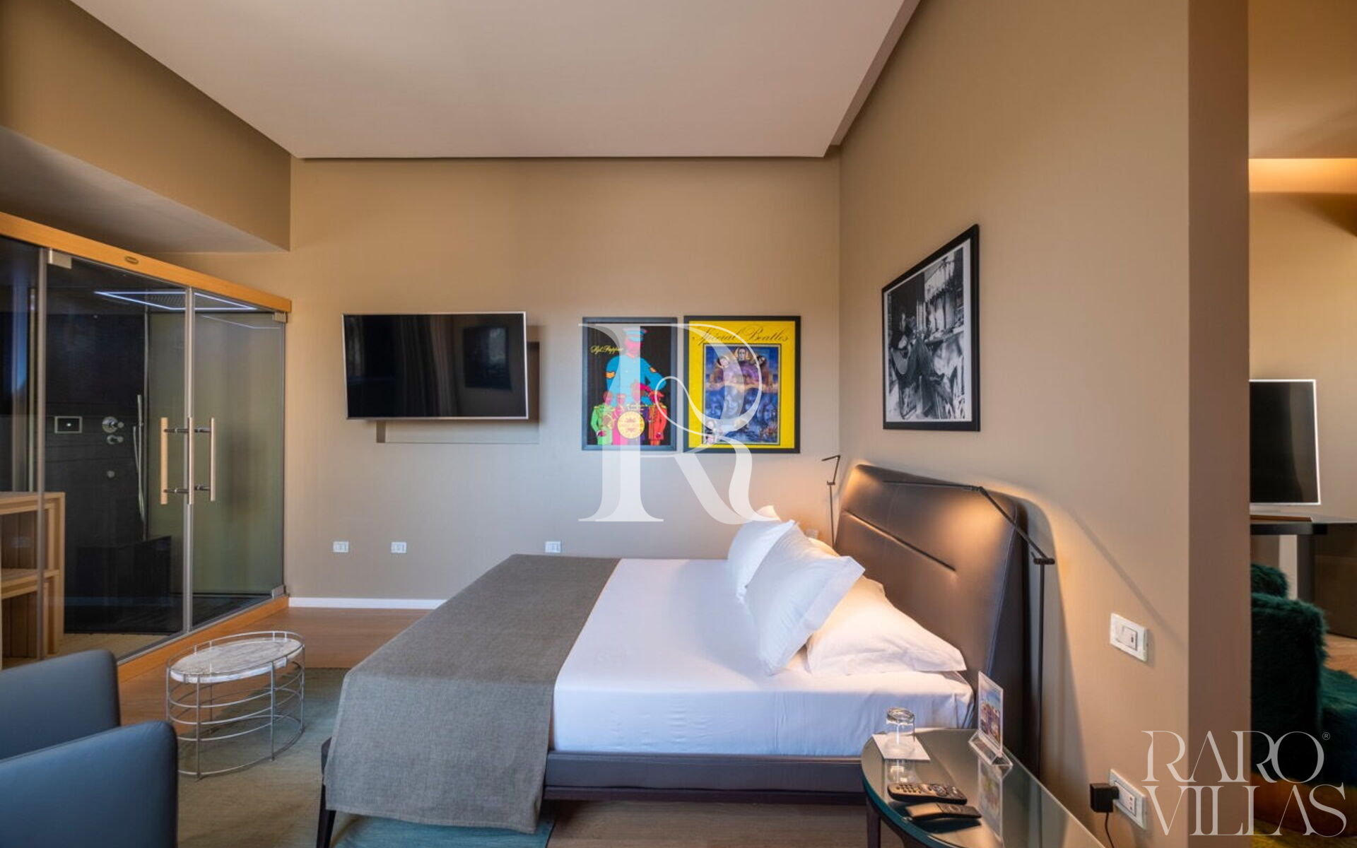 The "Wellness Suite John & Yoko" with a view is a charming residence of 60 square meters, designed to offer an unparalleled wellness experience. This spacious suite boasts a luxurious double bedroom, a cozy living room with a sofa bed ideal for one or two additional people, and a large bathroom enriched with a modern shower and an elegant double sink.