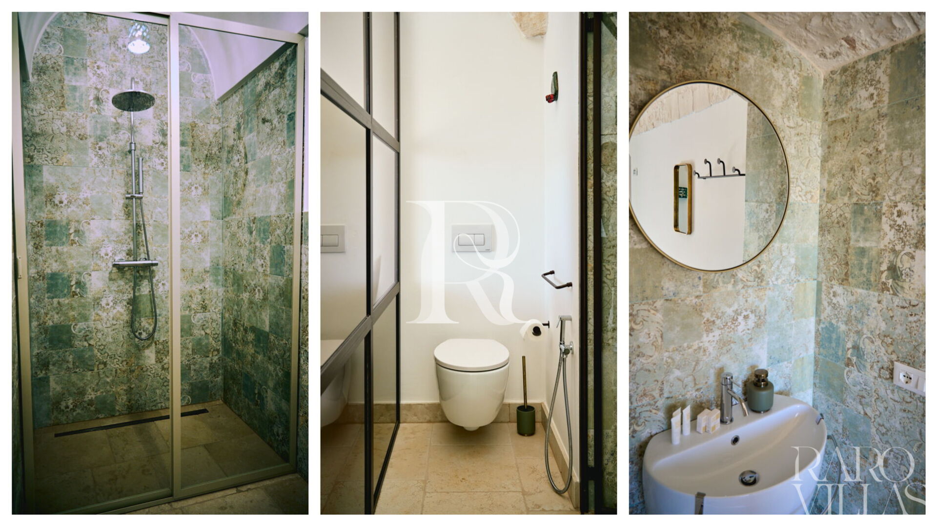 De villa beschikt over 4 tweepersoonskamers, elk met een eigen badkamer, plus een extra badkamer bij het zwembad, comfortabel geschikt voor maximaal 8+2 gasten.