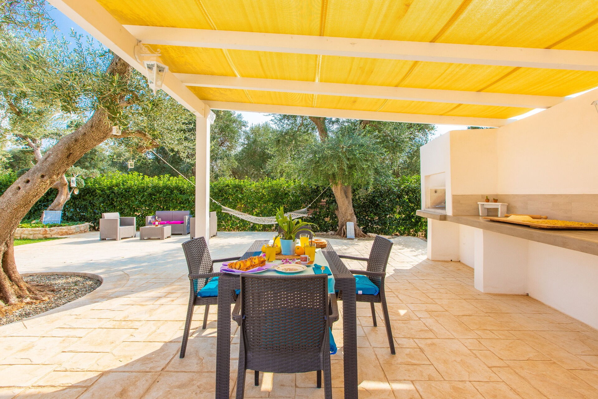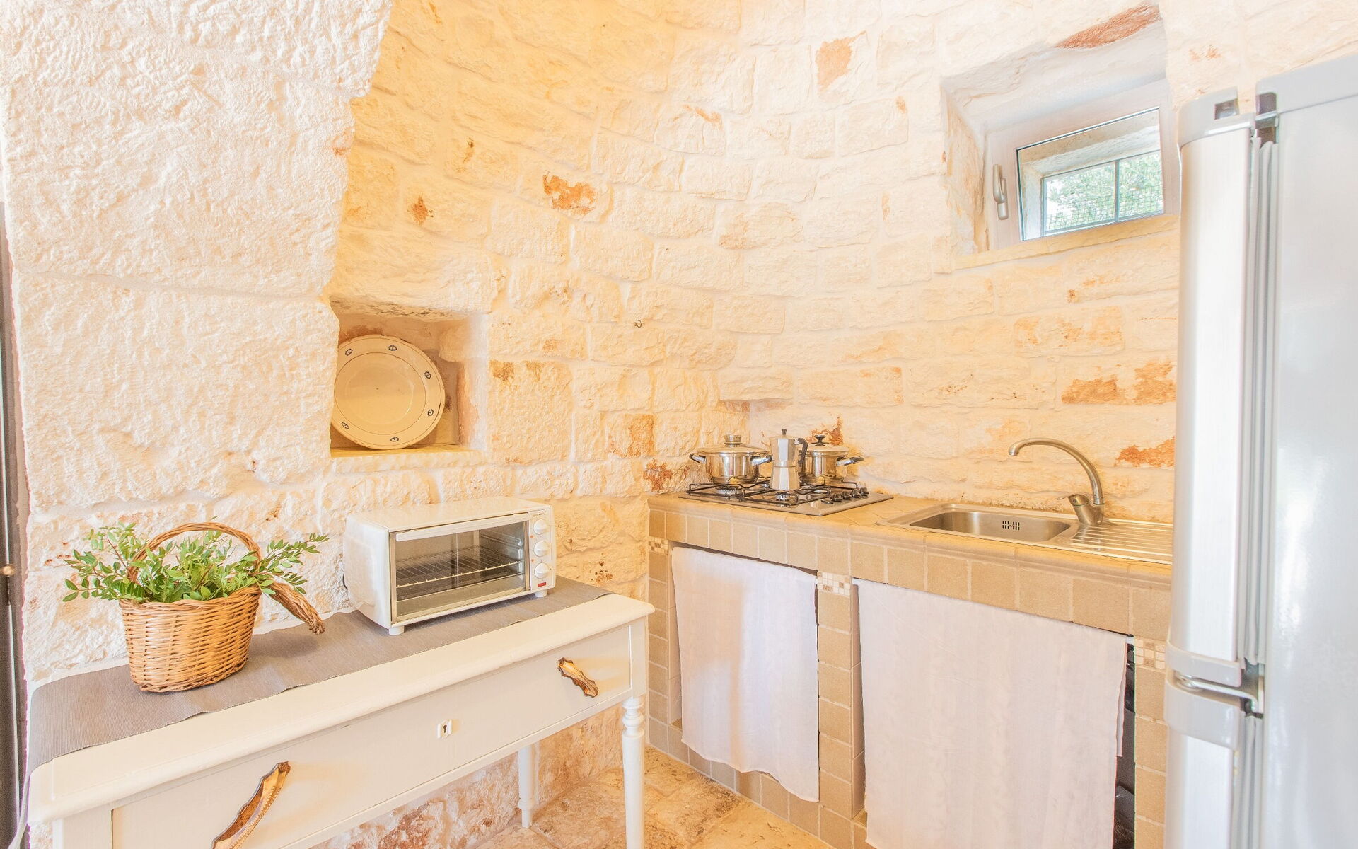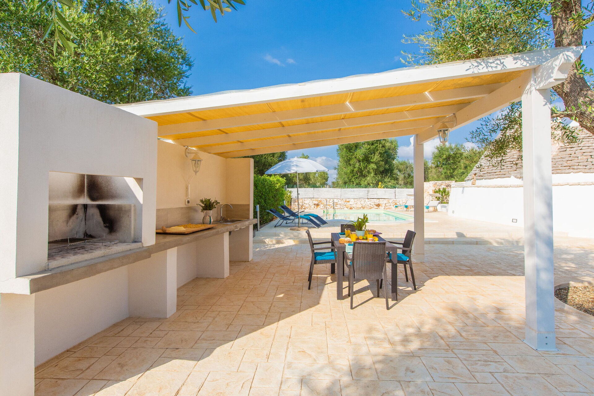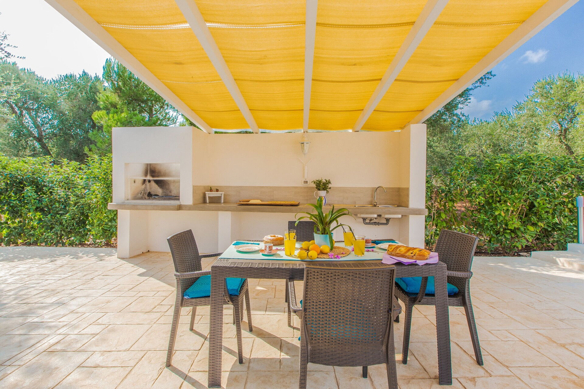 Wanneer u aankomt wordt u ontvangen door de eigenaar of beheerder en vindt u een prachtige, schone en goed onderhouden woning ideaal voor een rustige vakantie in Apulië. Hoe u de dagen ook doorbrengt - musea bezoek, winkelen, met excursies of rijdende door het prachtige landschap, zodra u thuis komt kunt u ontspannen samen met familie en vrienden bij het zwembad voor een perfecte afsluiting van nog weer een dag in Apulië. Eten met vrienden en familie is een grote onderdeel van de Italiaanse cultuur. Maak gebruik van de goed uitgeruste keuken om maaltijden te bereiden met lokale producten terwijl u op vakantie bent. De keuken biedt o.a. een magnetron oven, broodrooster en ijskast, en natuurlijk ook voldoende servies en bestek voor minstens vier personen. Eet buiten net zoals een echte Italiaan, een veranda met tuinmeubilair is ideaal om te genieten van het heerlijke eten, de familie en het prachtige Italiaanse klimaat.