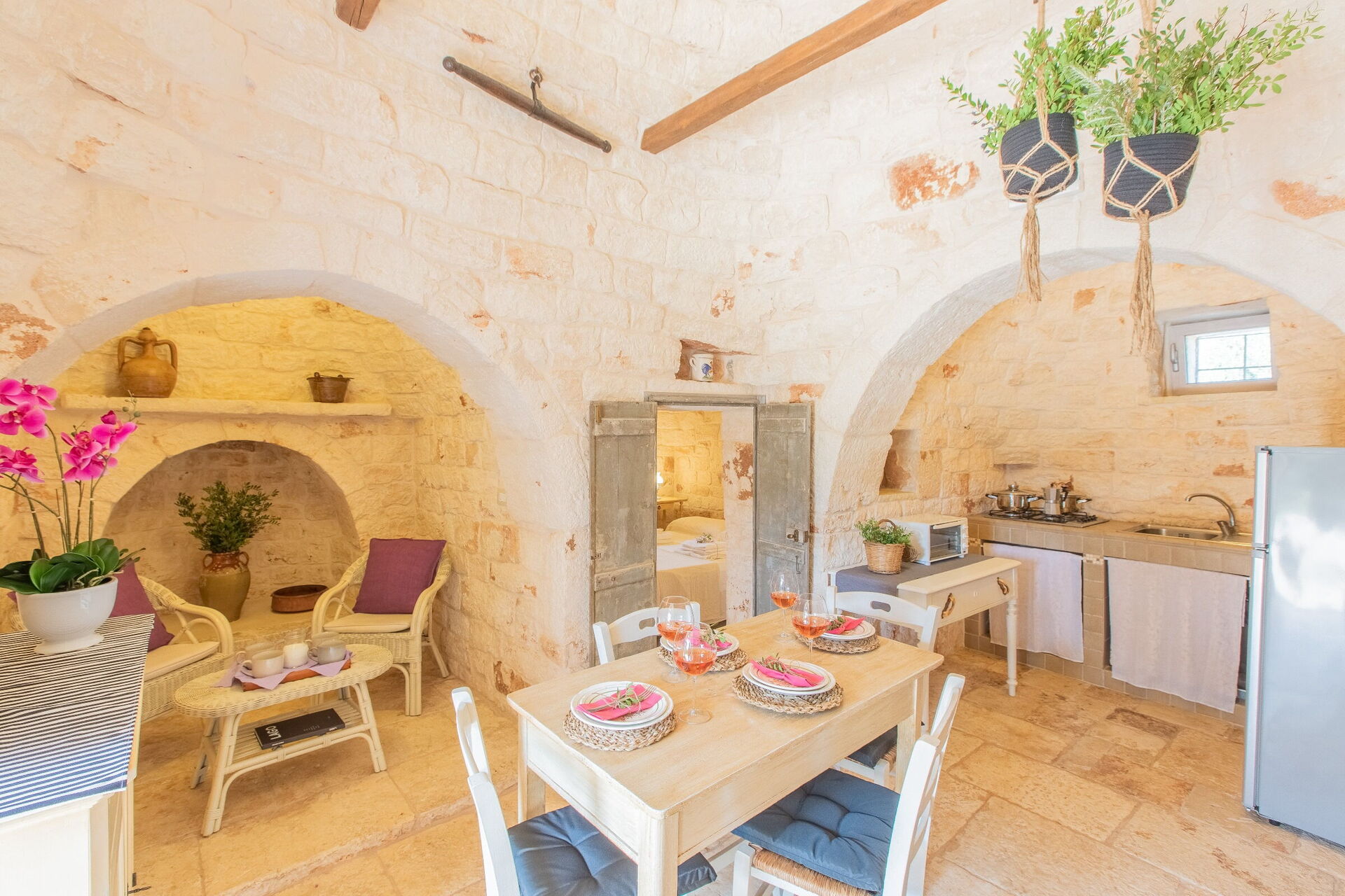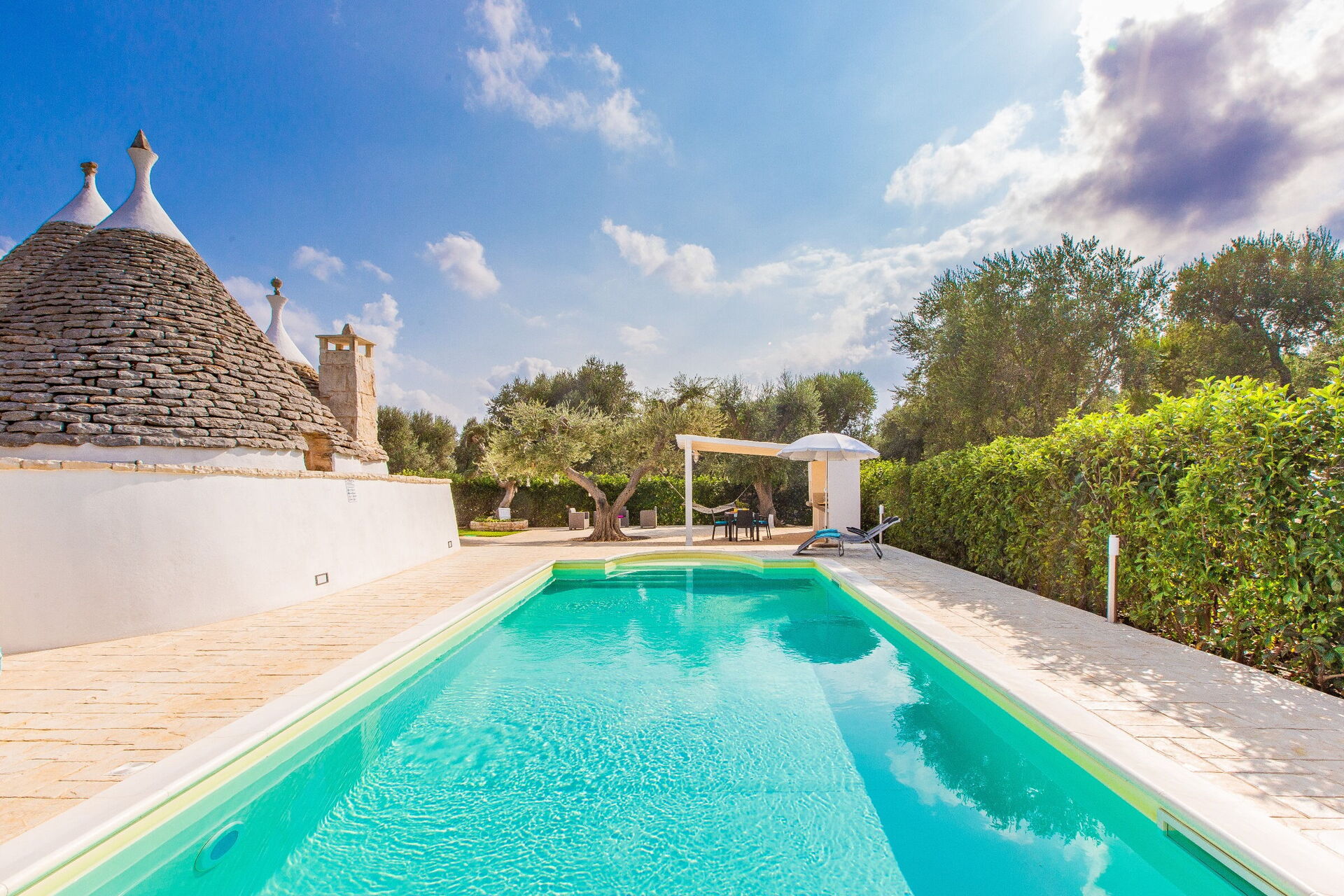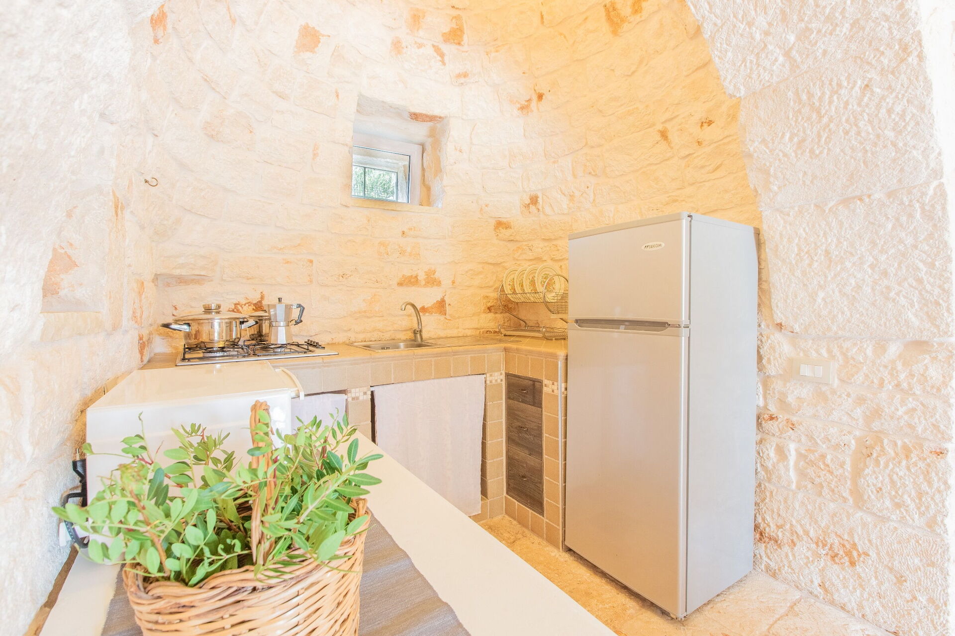 Wanneer u aankomt wordt u ontvangen door de eigenaar of beheerder en vindt u een prachtige, schone en goed onderhouden woning ideaal voor een rustige vakantie in Apulië. Hoe u de dagen ook doorbrengt - musea bezoek, winkelen, met excursies of rijdende door het prachtige landschap, zodra u thuis komt kunt u ontspannen samen met familie en vrienden bij het zwembad voor een perfecte afsluiting van nog weer een dag in Apulië. Eten met vrienden en familie is een grote onderdeel van de Italiaanse cultuur. Maak gebruik van de goed uitgeruste keuken om maaltijden te bereiden met lokale producten terwijl u op vakantie bent. De keuken biedt o.a. een magnetron oven, broodrooster en ijskast, en natuurlijk ook voldoende servies en bestek voor minstens vier personen. Eet buiten net zoals een echte Italiaan, een veranda met tuinmeubilair is ideaal om te genieten van het heerlijke eten, de familie en het prachtige Italiaanse klimaat.
