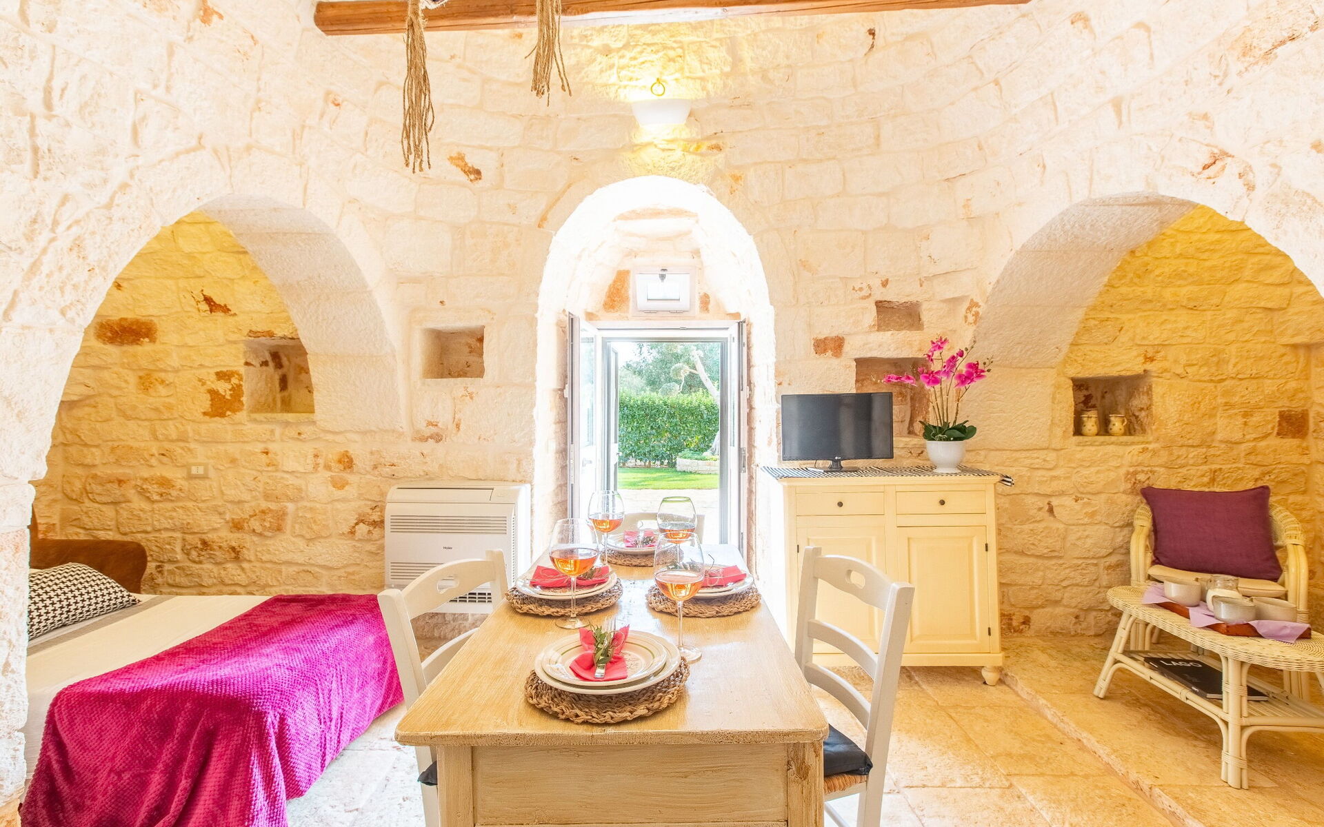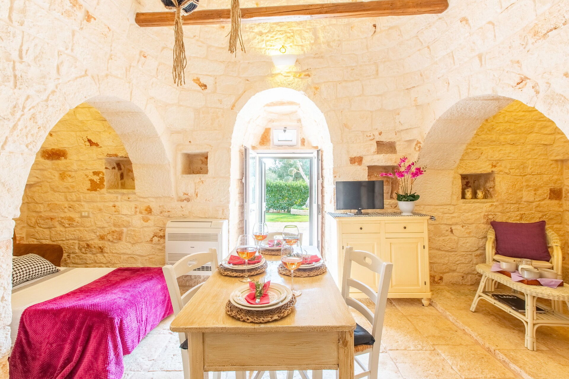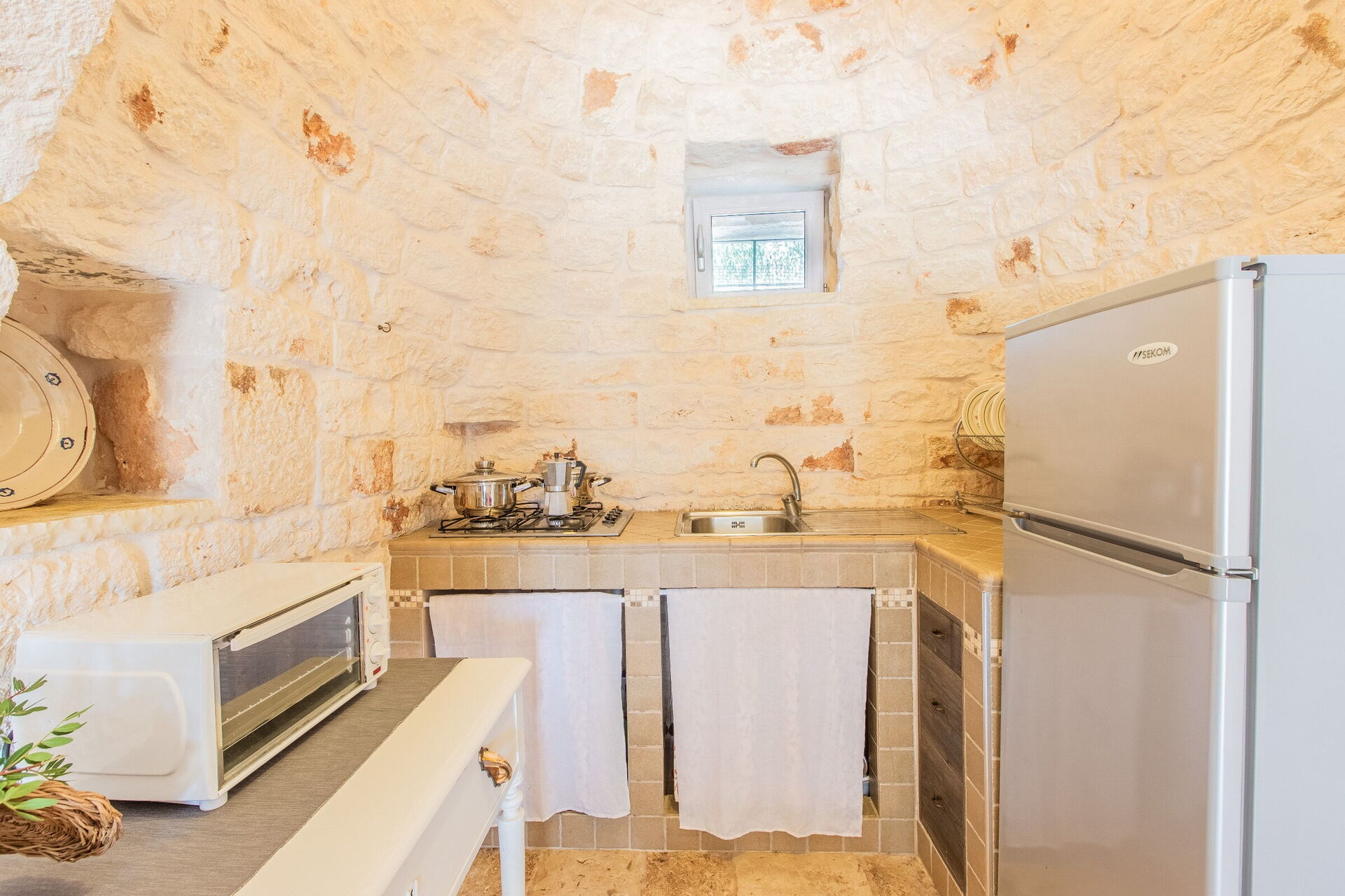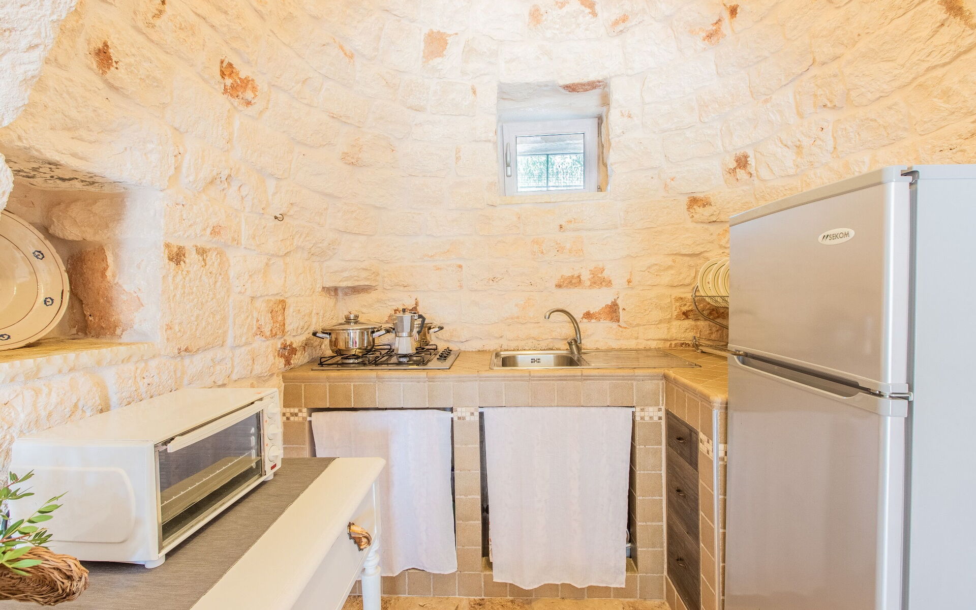 Wanneer u aankomt wordt u ontvangen door de eigenaar of beheerder en vindt u een prachtige, schone en goed onderhouden woning ideaal voor een rustige vakantie in Apulië. Hoe u de dagen ook doorbrengt - musea bezoek, winkelen, met excursies of rijdende door het prachtige landschap, zodra u thuis komt kunt u ontspannen samen met familie en vrienden bij het zwembad voor een perfecte afsluiting van nog weer een dag in Apulië. Eten met vrienden en familie is een grote onderdeel van de Italiaanse cultuur. Maak gebruik van de goed uitgeruste keuken om maaltijden te bereiden met lokale producten terwijl u op vakantie bent. De keuken biedt o.a. een magnetron oven, broodrooster en ijskast, en natuurlijk ook voldoende servies en bestek voor minstens vier personen. Eet buiten net zoals een echte Italiaan, een veranda met tuinmeubilair is ideaal om te genieten van het heerlijke eten, de familie en het prachtige Italiaanse klimaat.
