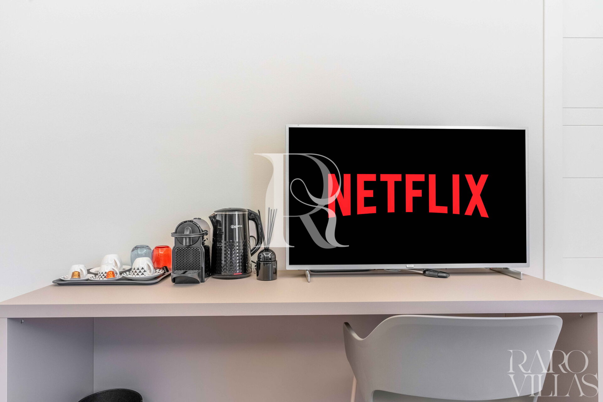 Bedroom + Ensuite Bathroom: air conditioning, bidet, WIFI internet, basin, working desk, toilet, hairdryer, double bed, shower, television.