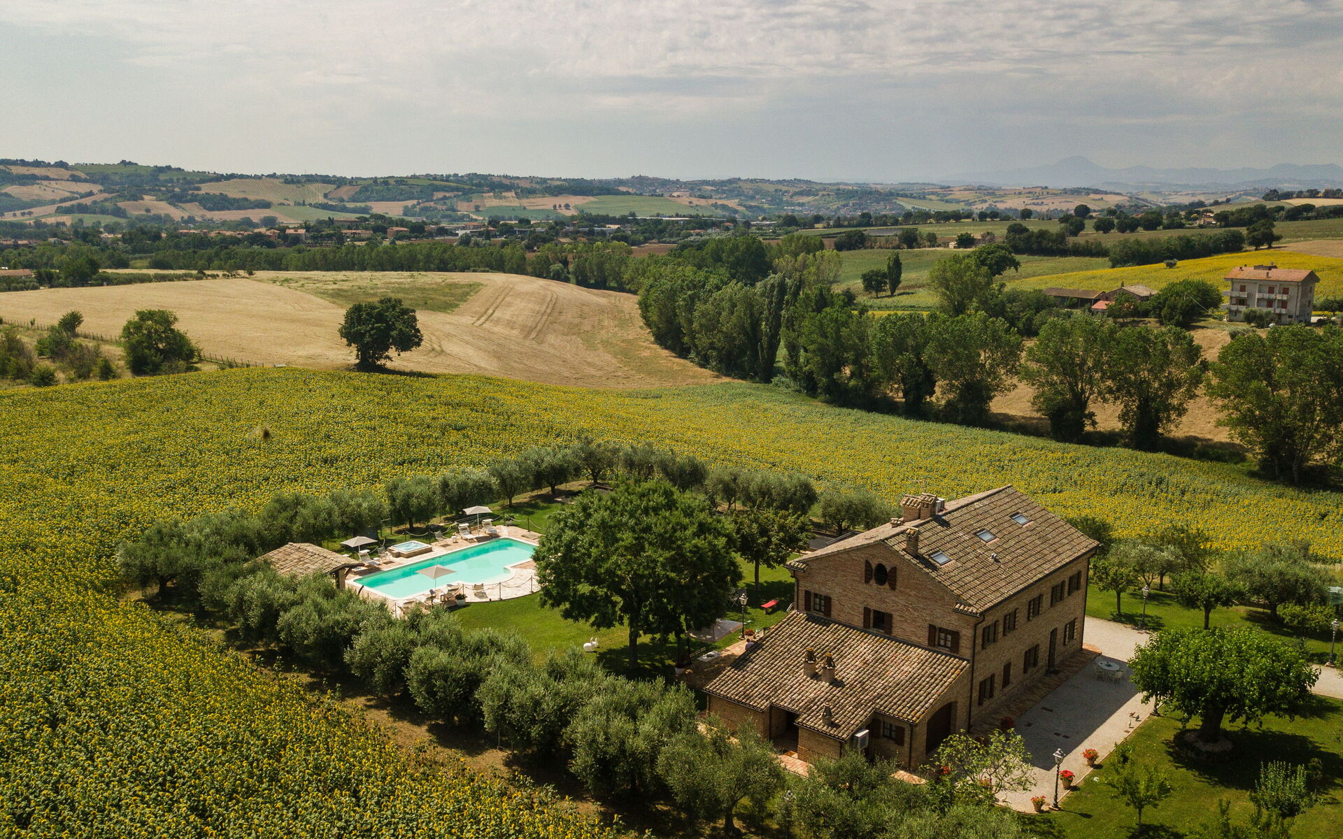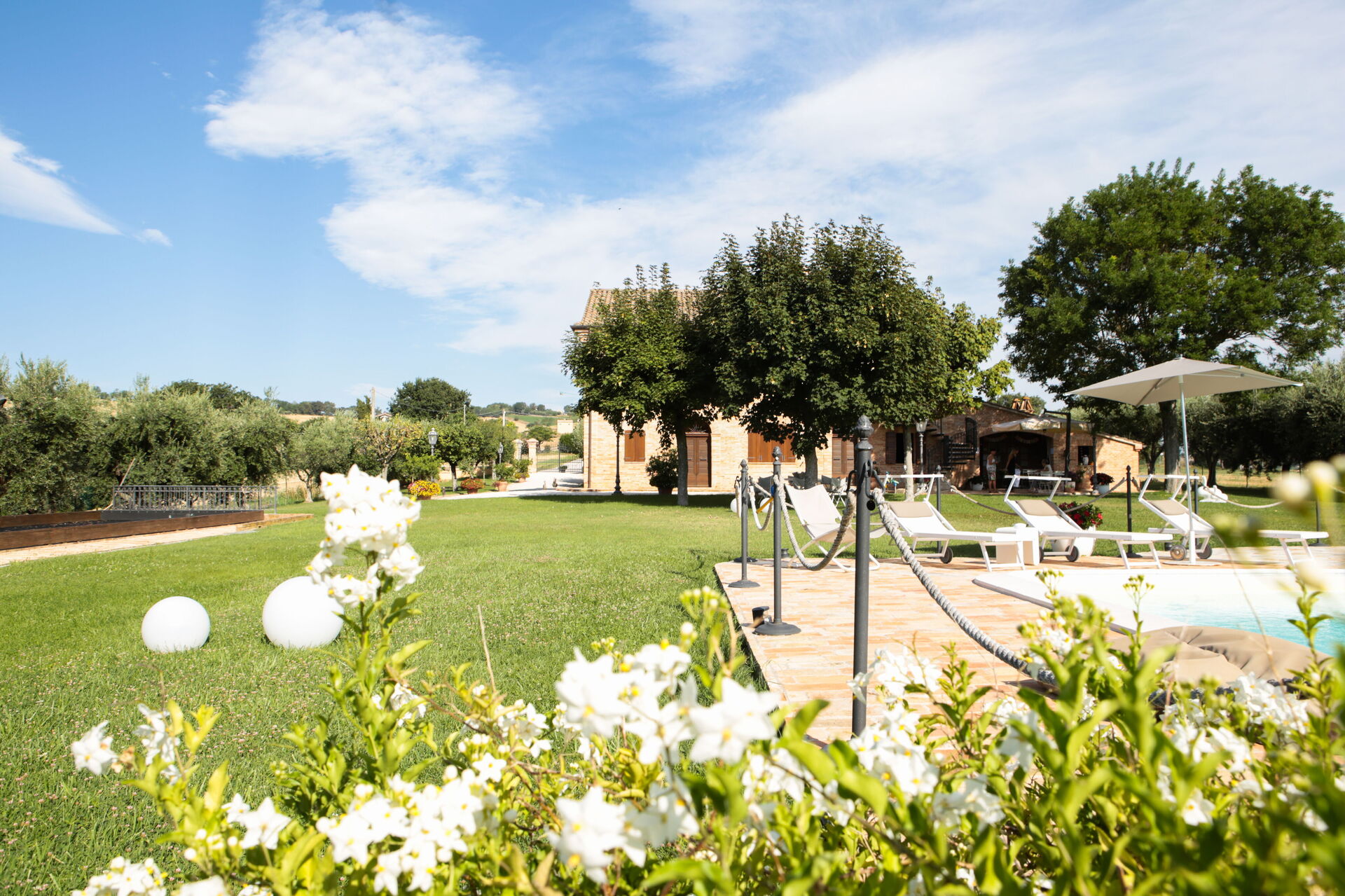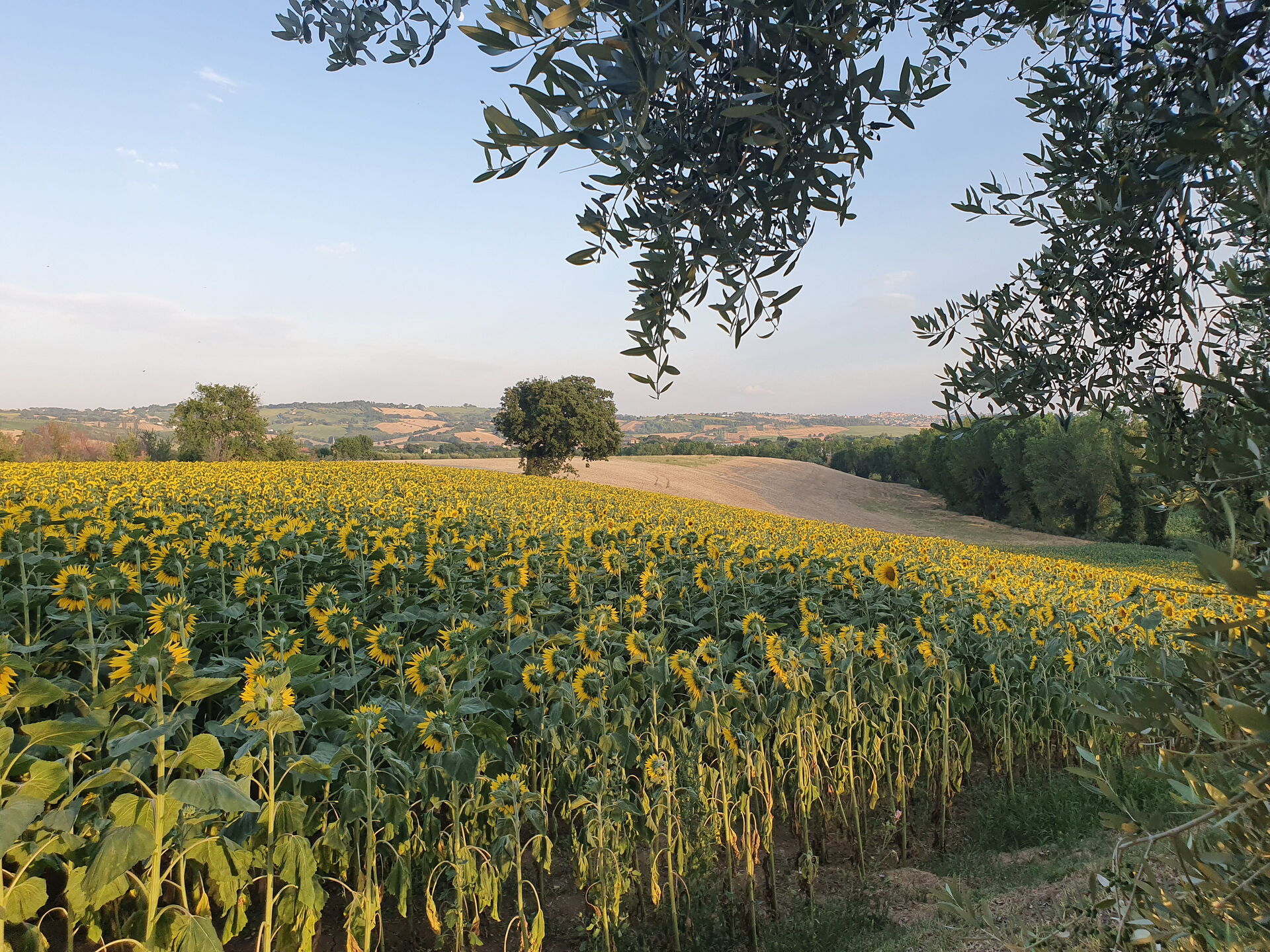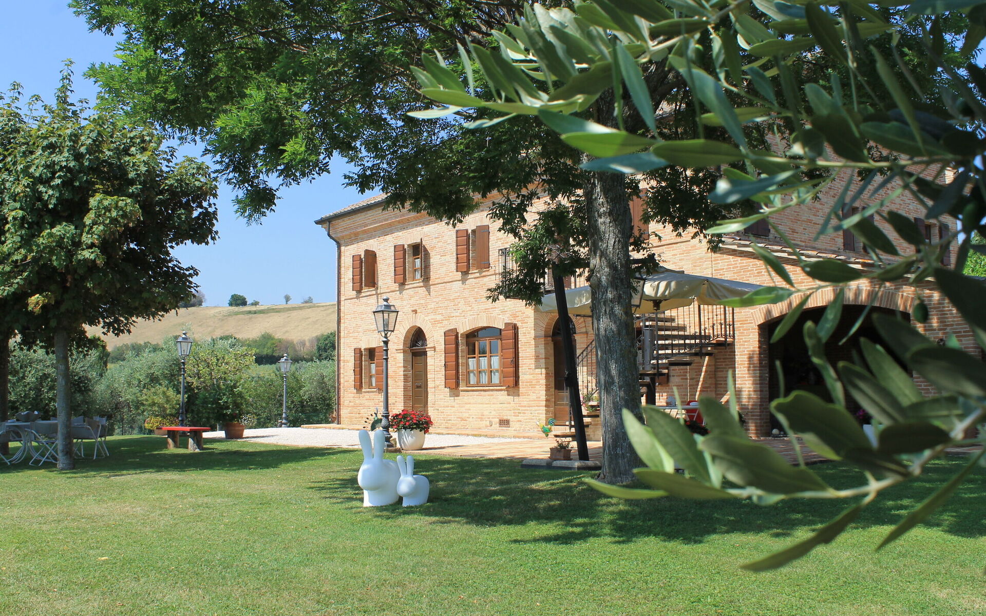 Villa Il Grano is surrounded by its 11 hectares of land planted with wheat and sunflowers, which give the surrounding landscape wonderful colors, and by more than one hundred olive trees that characterize this area of the Marche countryside and from which the family obtains an excellent extra virgin olive oil. .