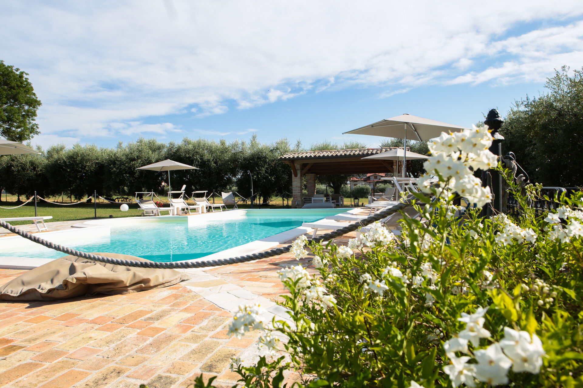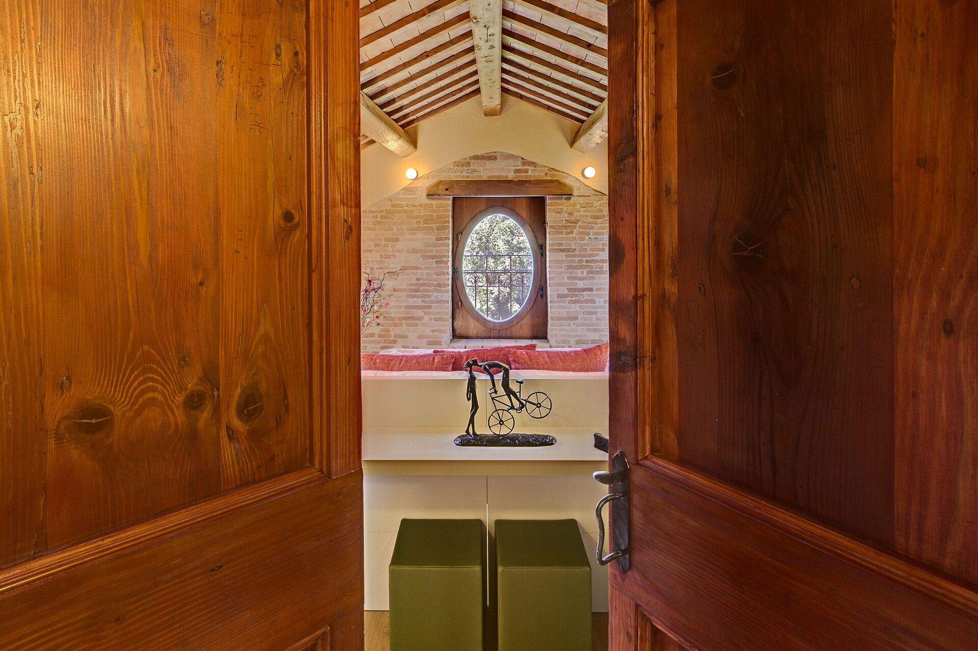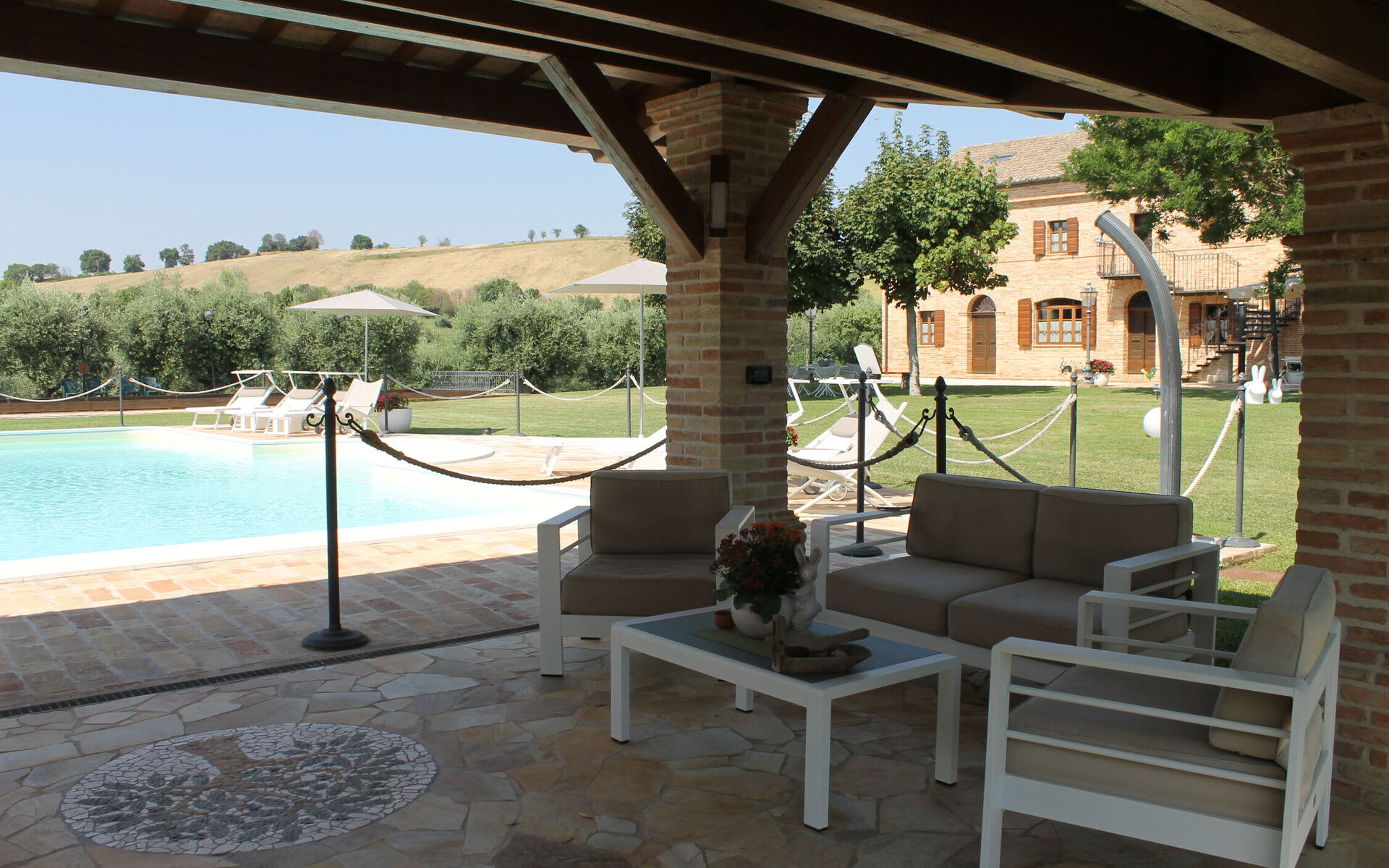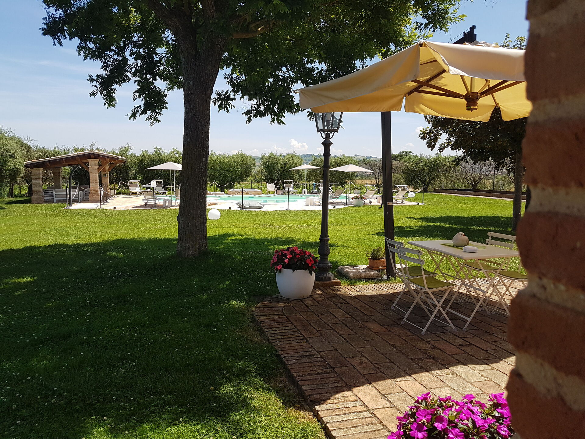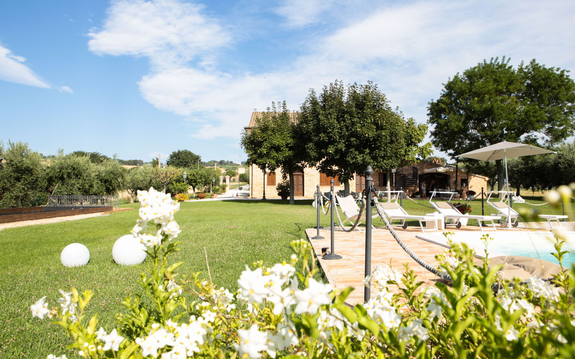 Villa Il Grano is surrounded by its 11 hectares of land planted with wheat and sunflowers, which give the surrounding landscape wonderful colors, and by more than one hundred olive trees that characterize this area of the Marche countryside and from which the family obtains an excellent extra virgin olive oil. .