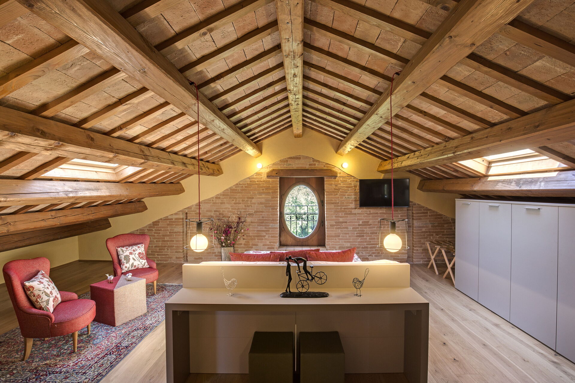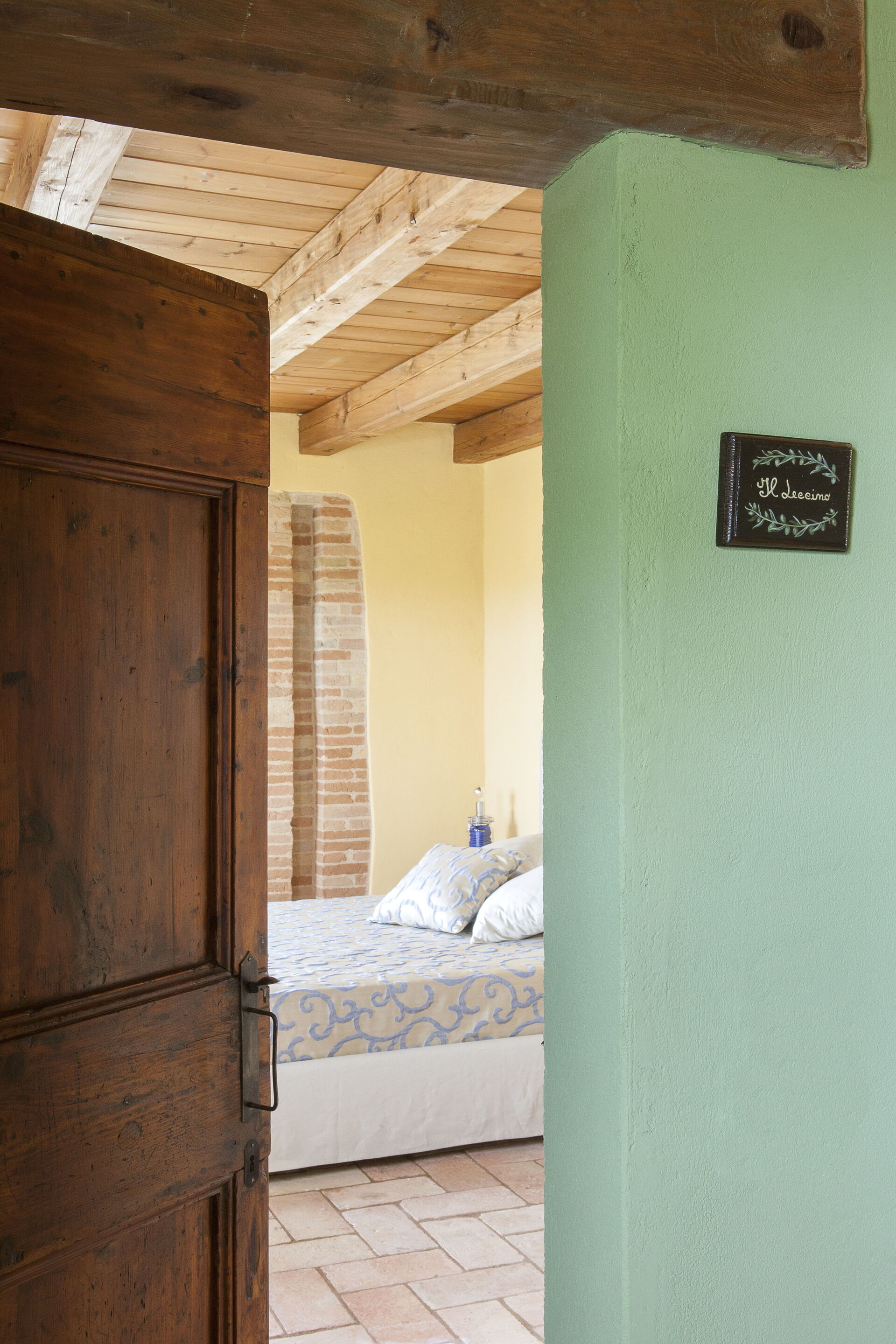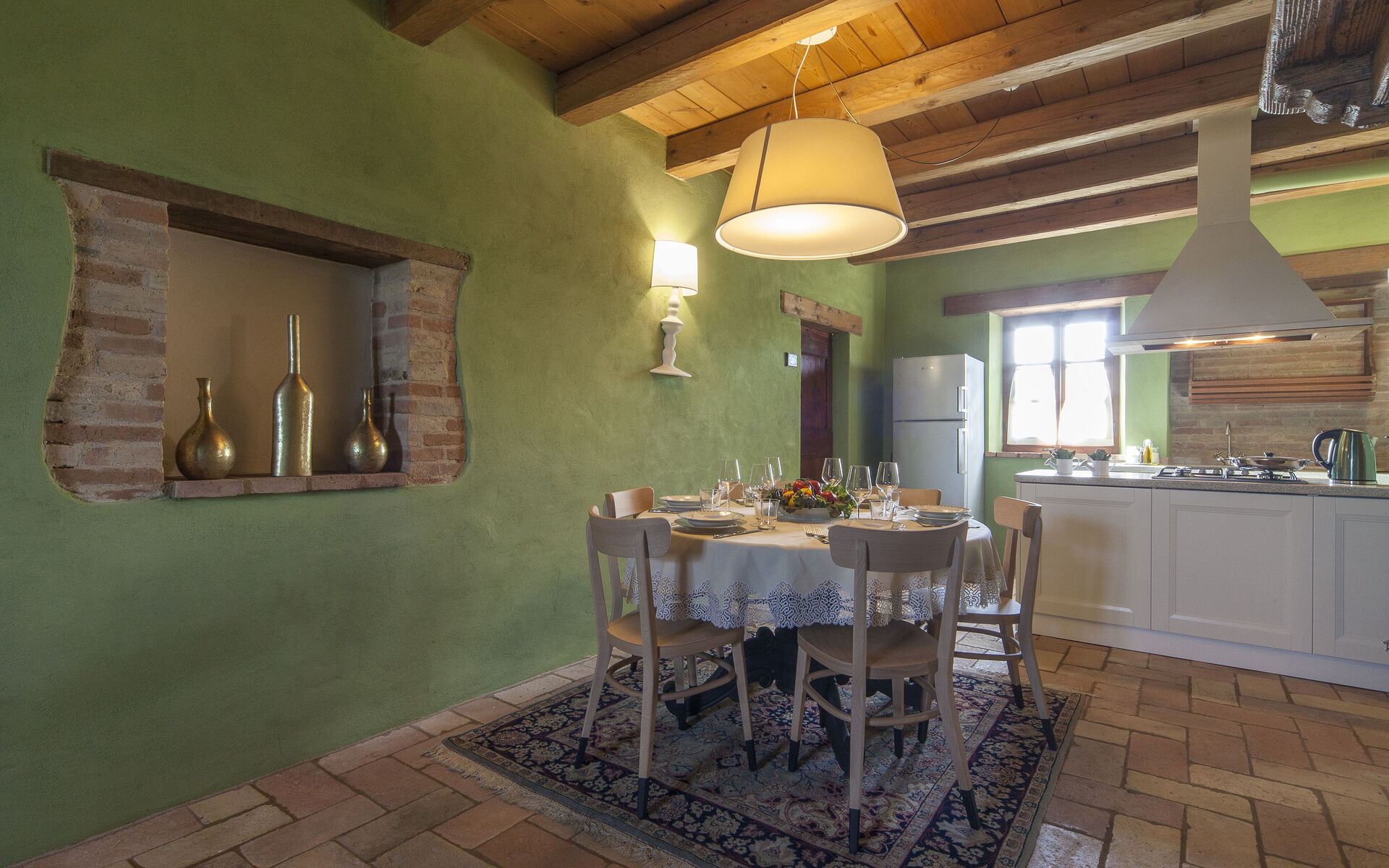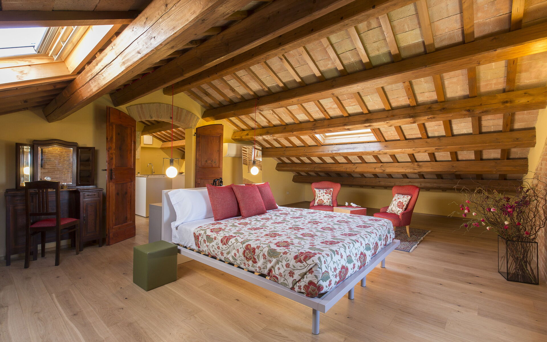 Villa Il Grano is surrounded by its 11 hectares of land planted with wheat and sunflowers, which give the surrounding landscape wonderful colors, and by more than one hundred olive trees that characterize this area of the Marche countryside and from which the family obtains an excellent extra virgin olive oil. .