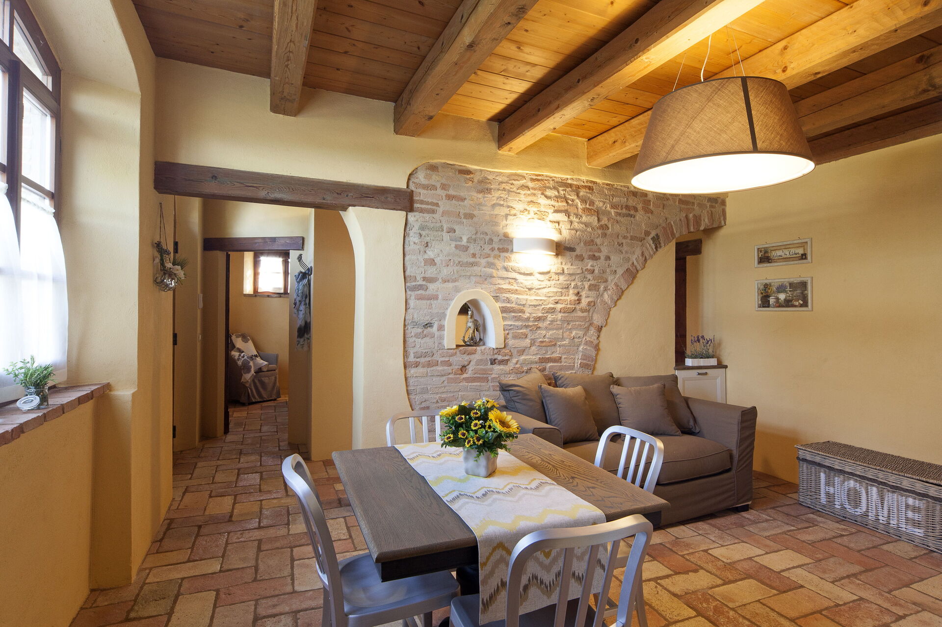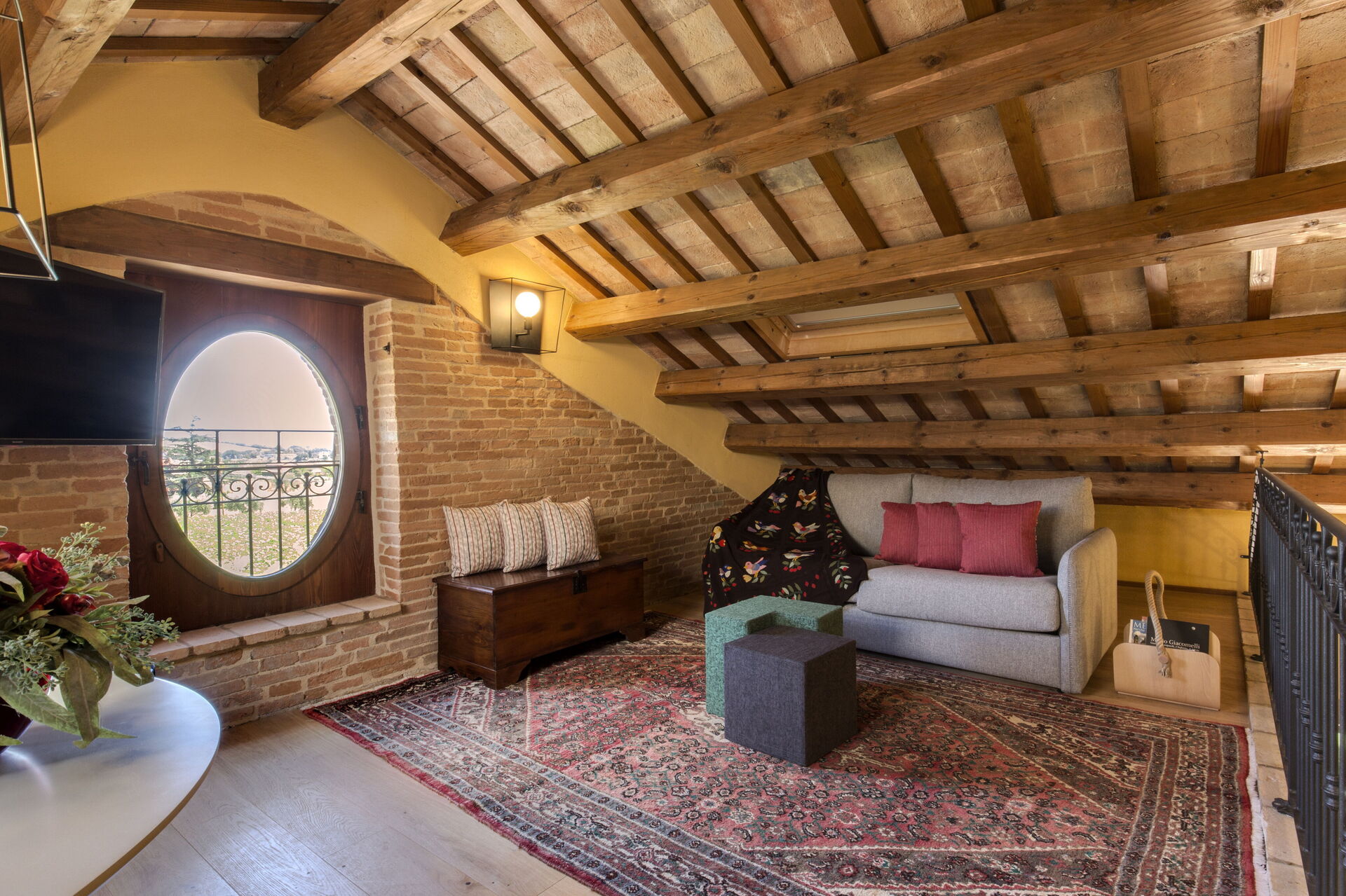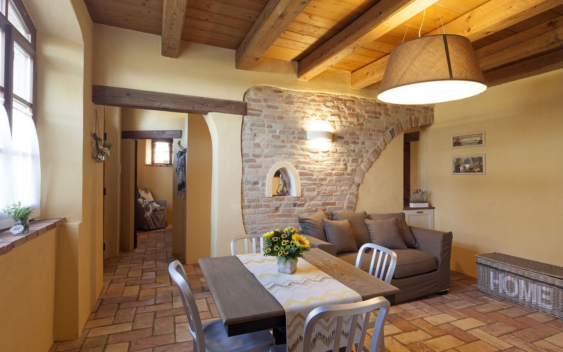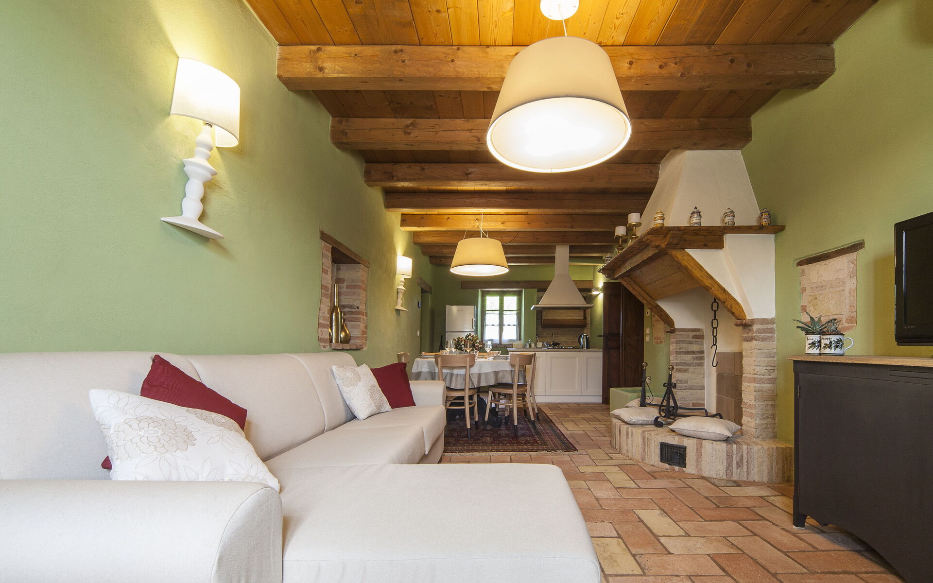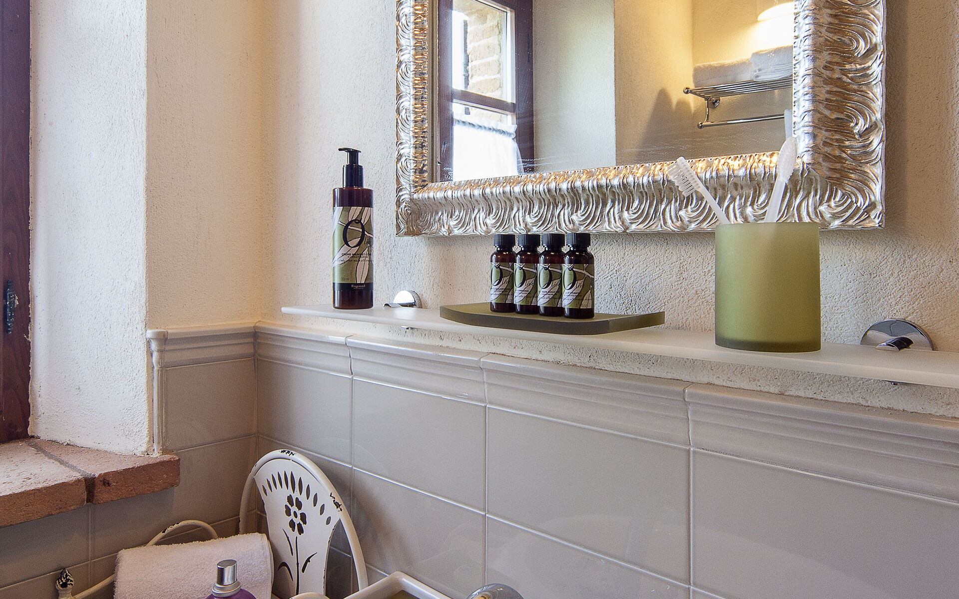 Villa Il Grano is surrounded by its 11 hectares of land planted with wheat and sunflowers, which give the surrounding landscape wonderful colors, and by more than one hundred olive trees that characterize this area of the Marche countryside and from which the family obtains an excellent extra virgin olive oil. .