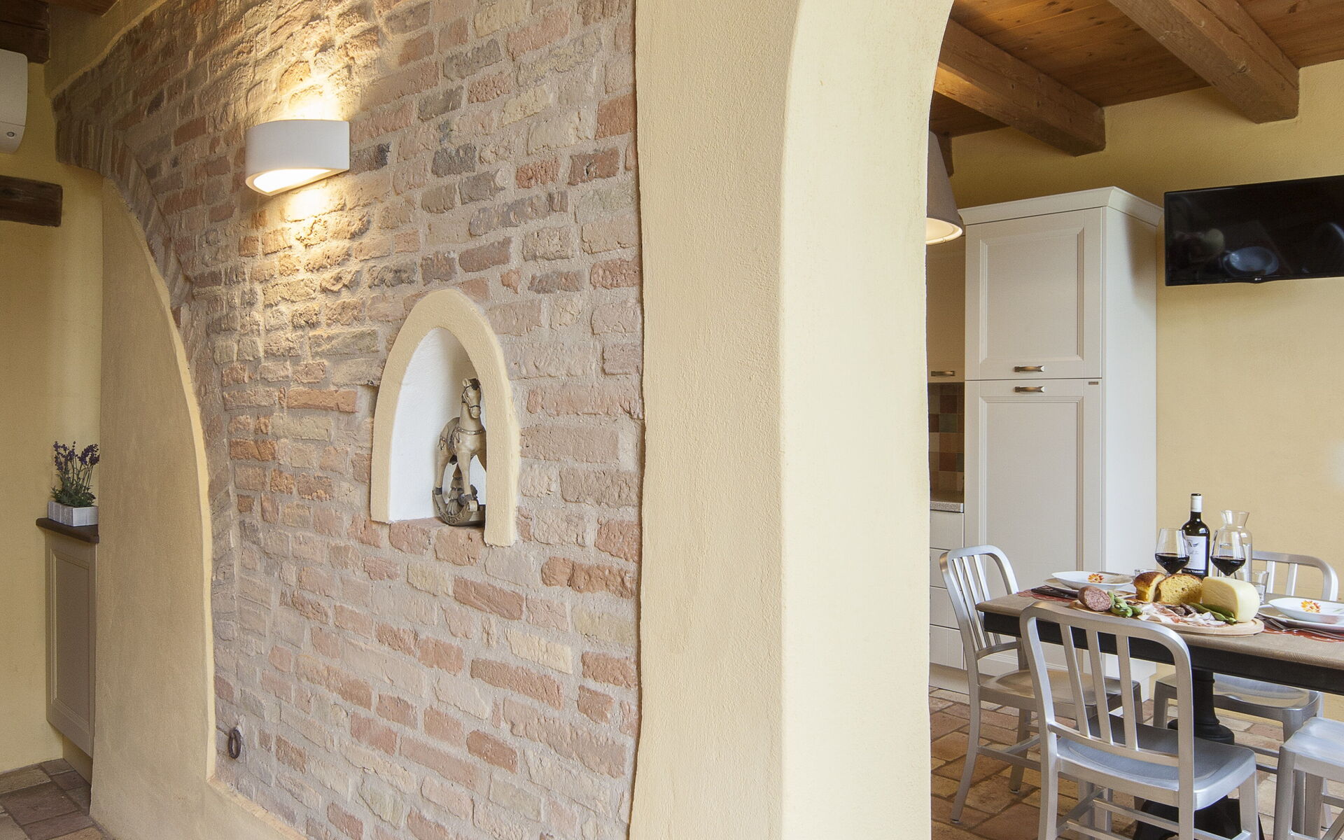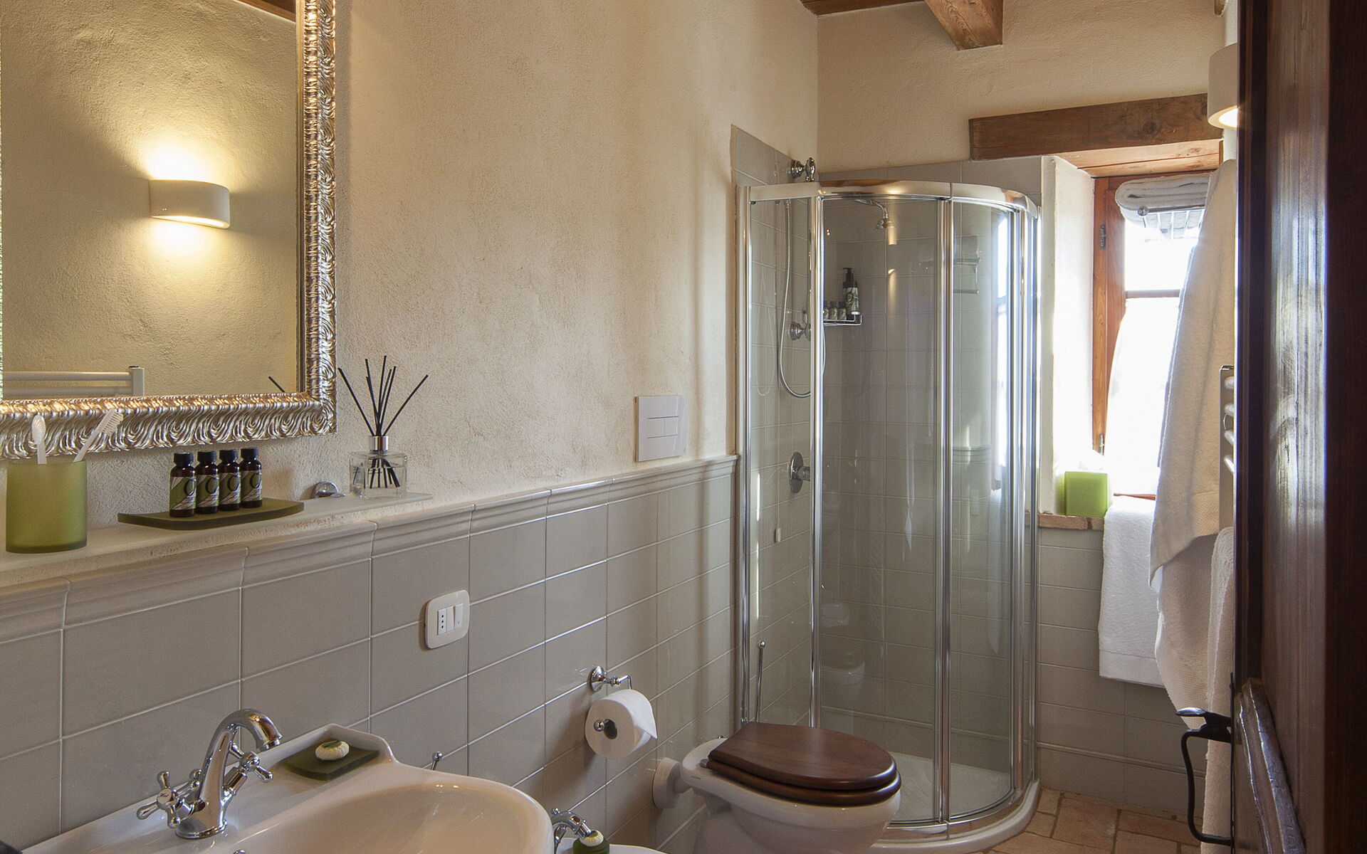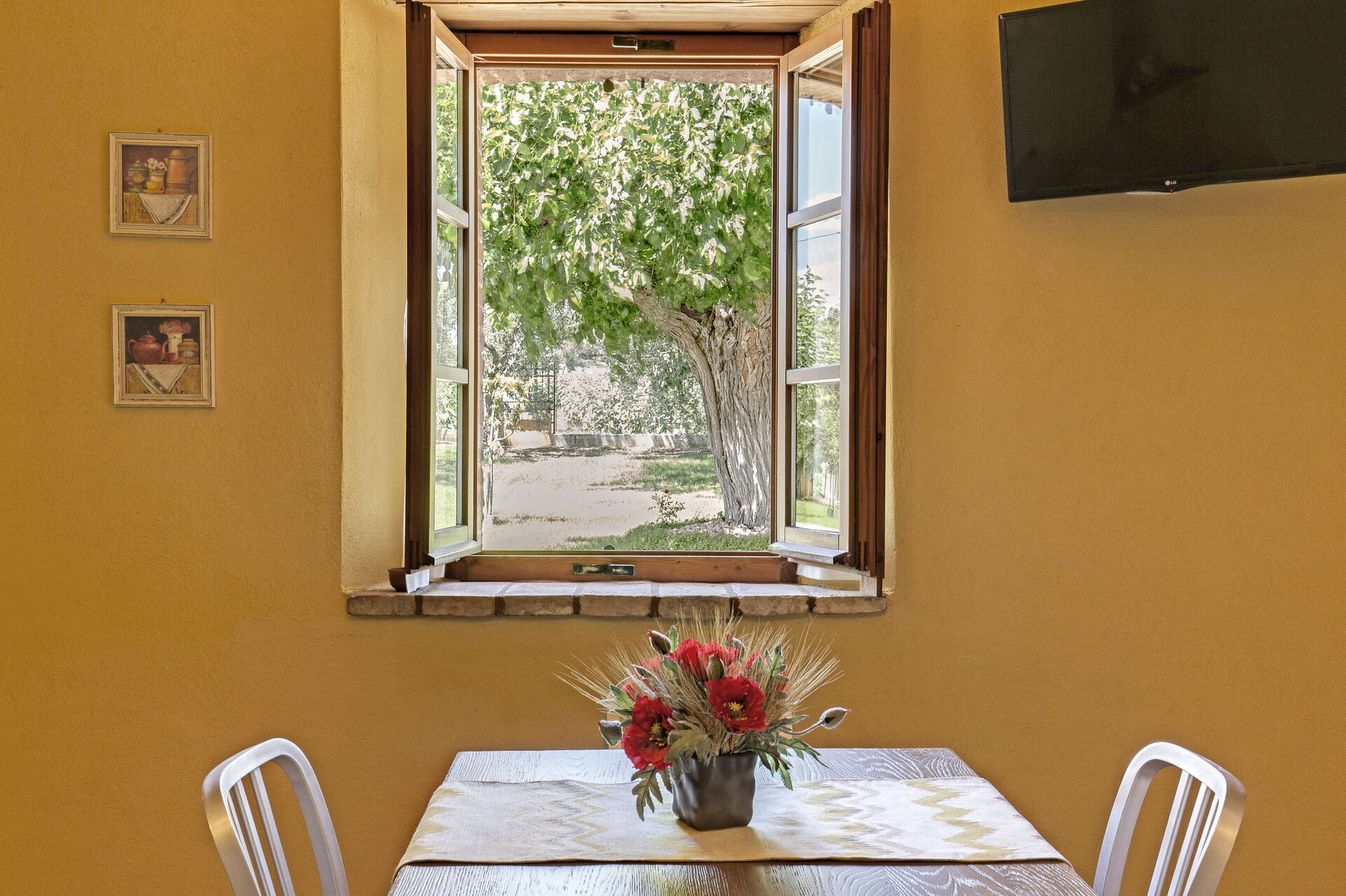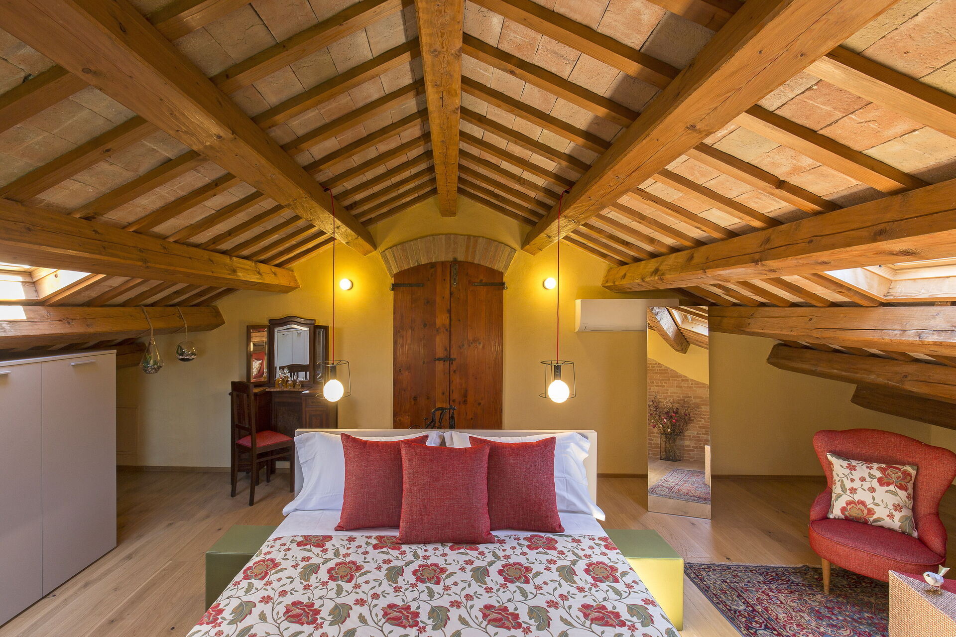 Villa Il Grano is surrounded by its 11 hectares of land planted with wheat and sunflowers, which give the surrounding landscape wonderful colors, and by more than one hundred olive trees that characterize this area of the Marche countryside and from which the family obtains an excellent extra virgin olive oil. .