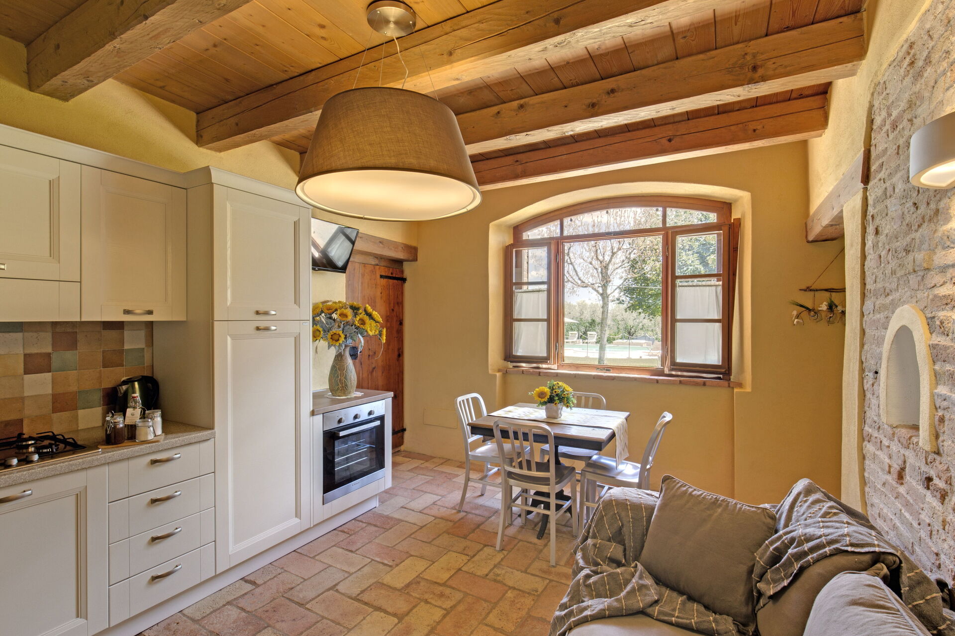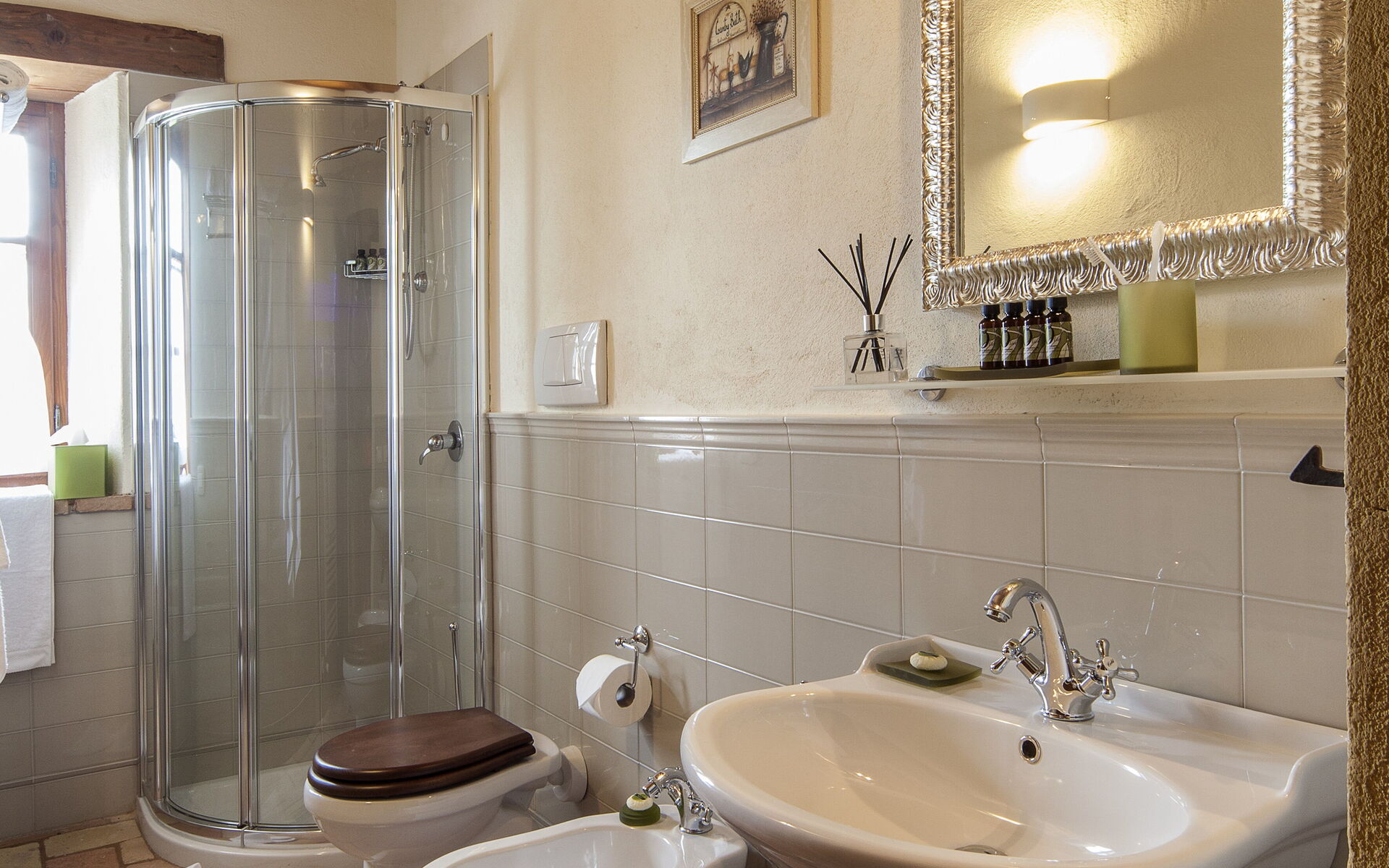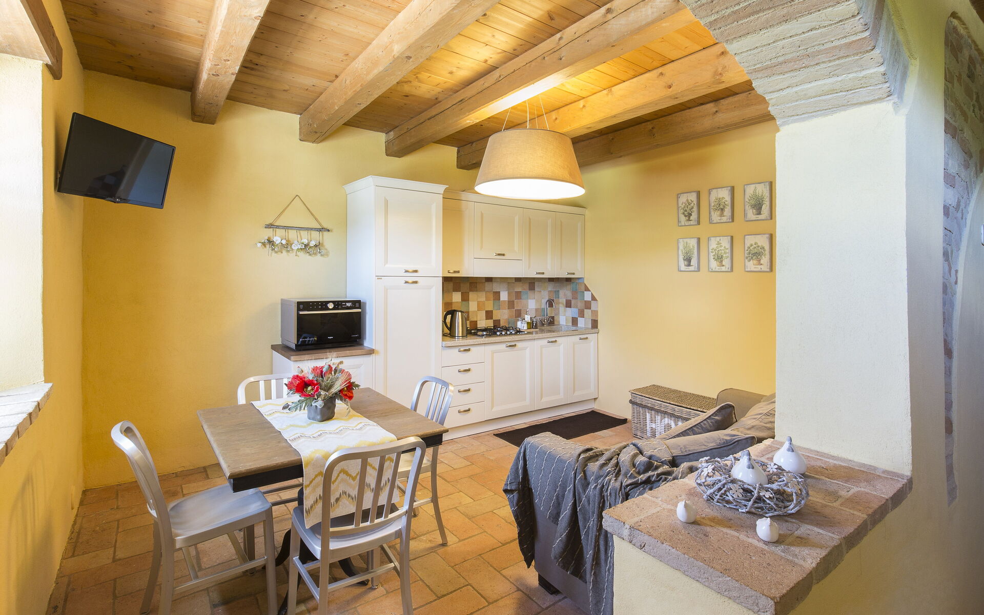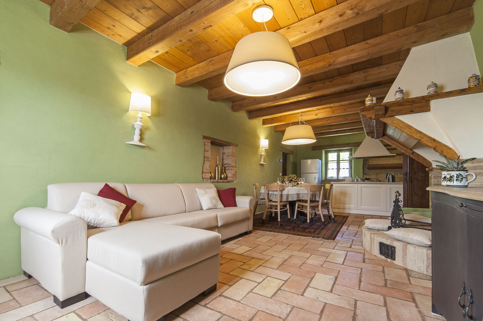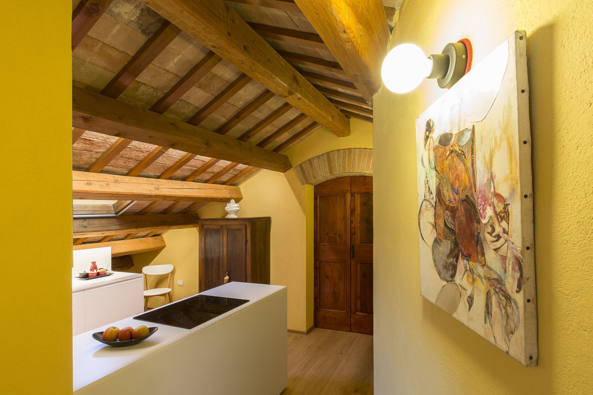 Villa Il Grano is surrounded by its 11 hectares of land planted with wheat and sunflowers, which give the surrounding landscape wonderful colors, and by more than one hundred olive trees that characterize this area of the Marche countryside and from which the family obtains an excellent extra virgin olive oil. .