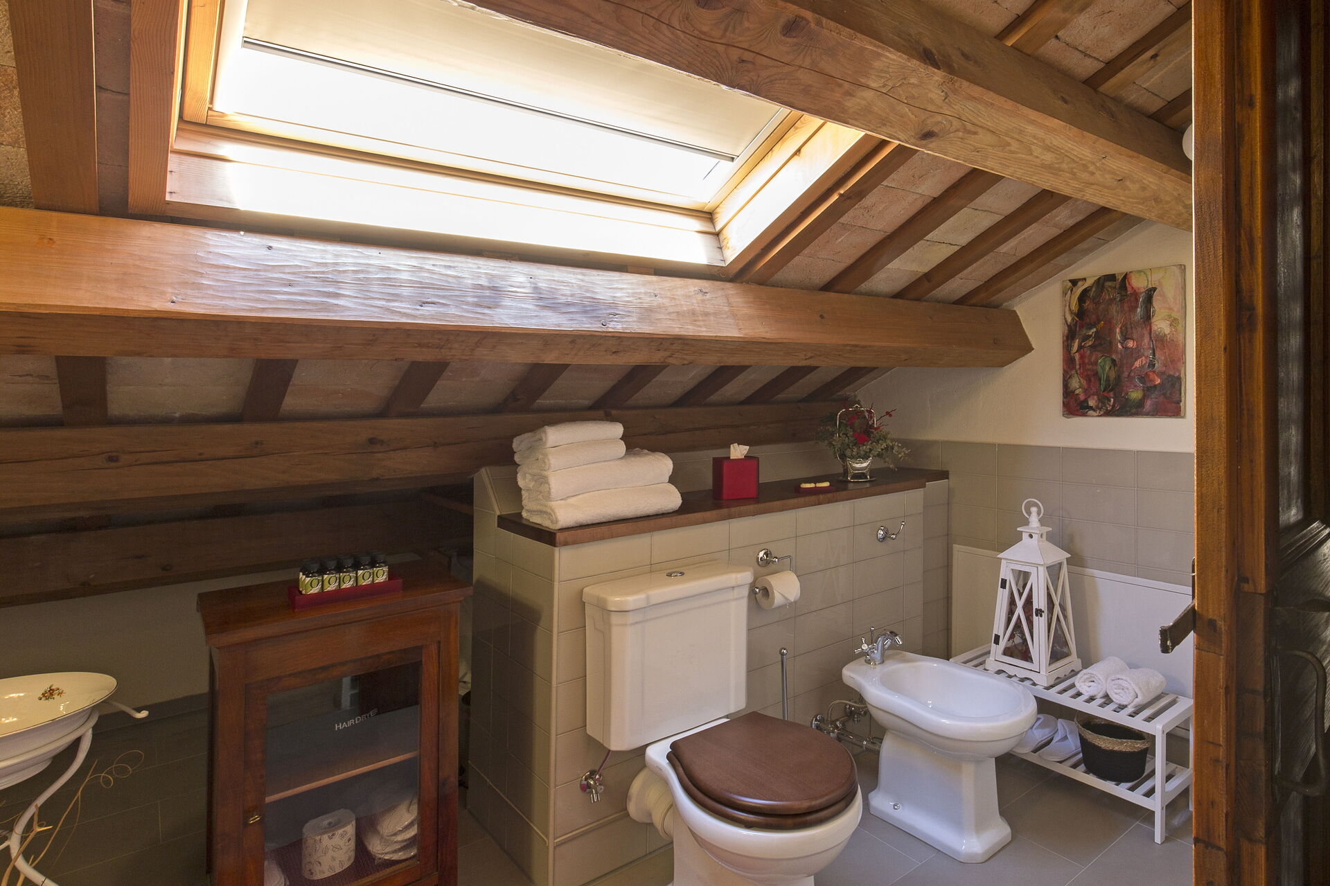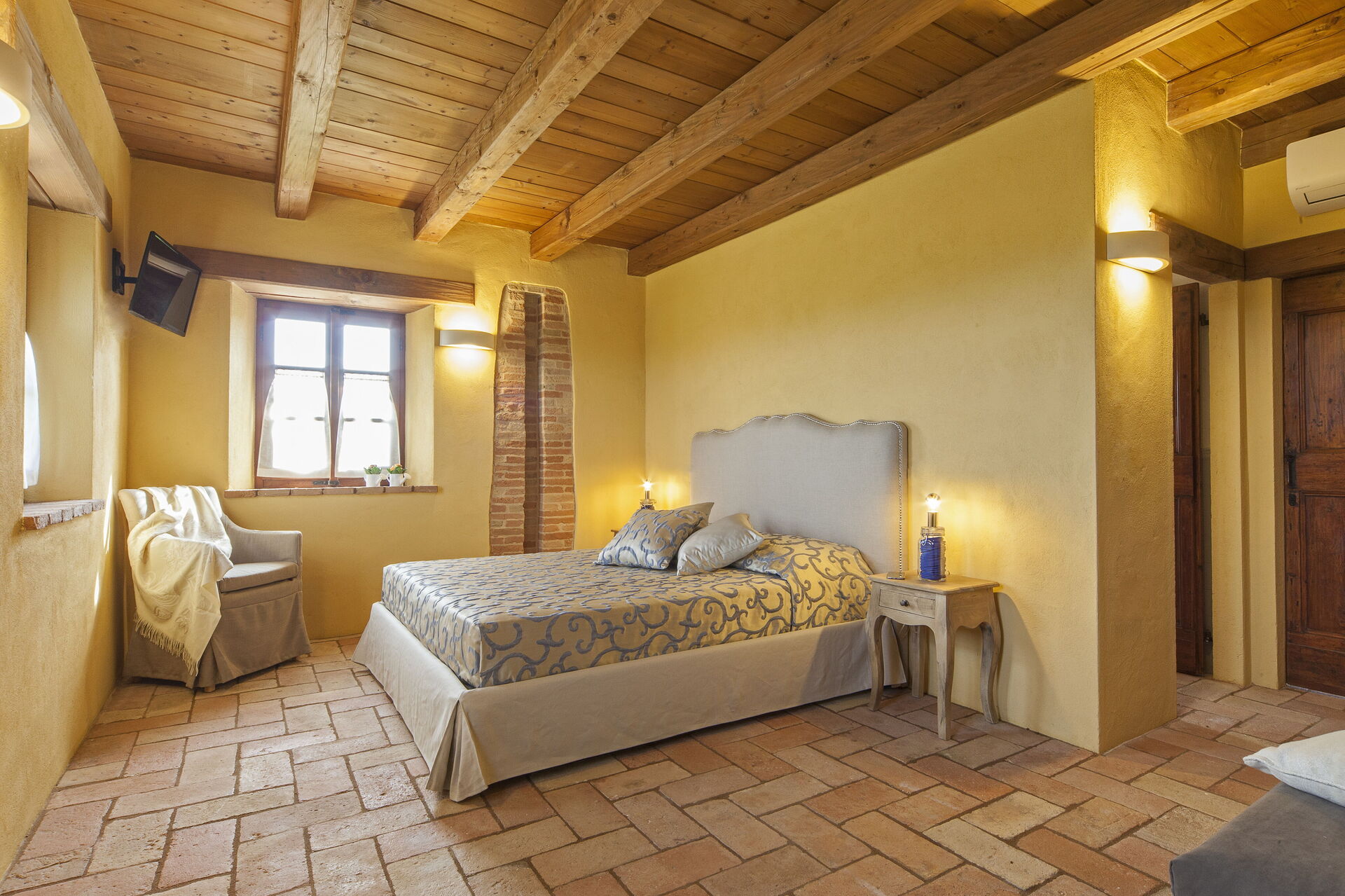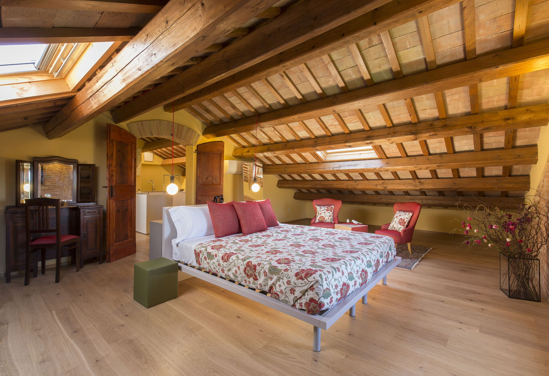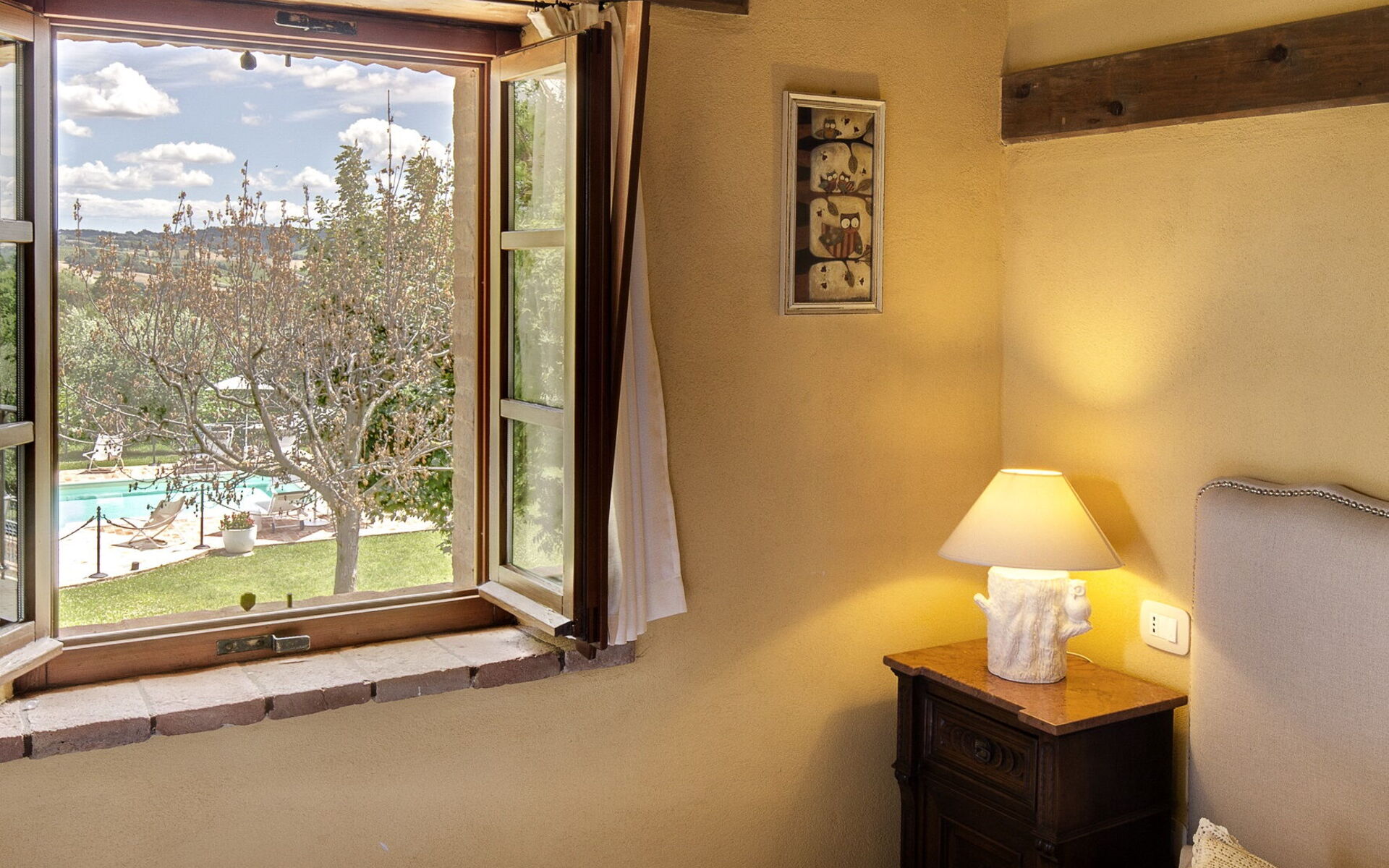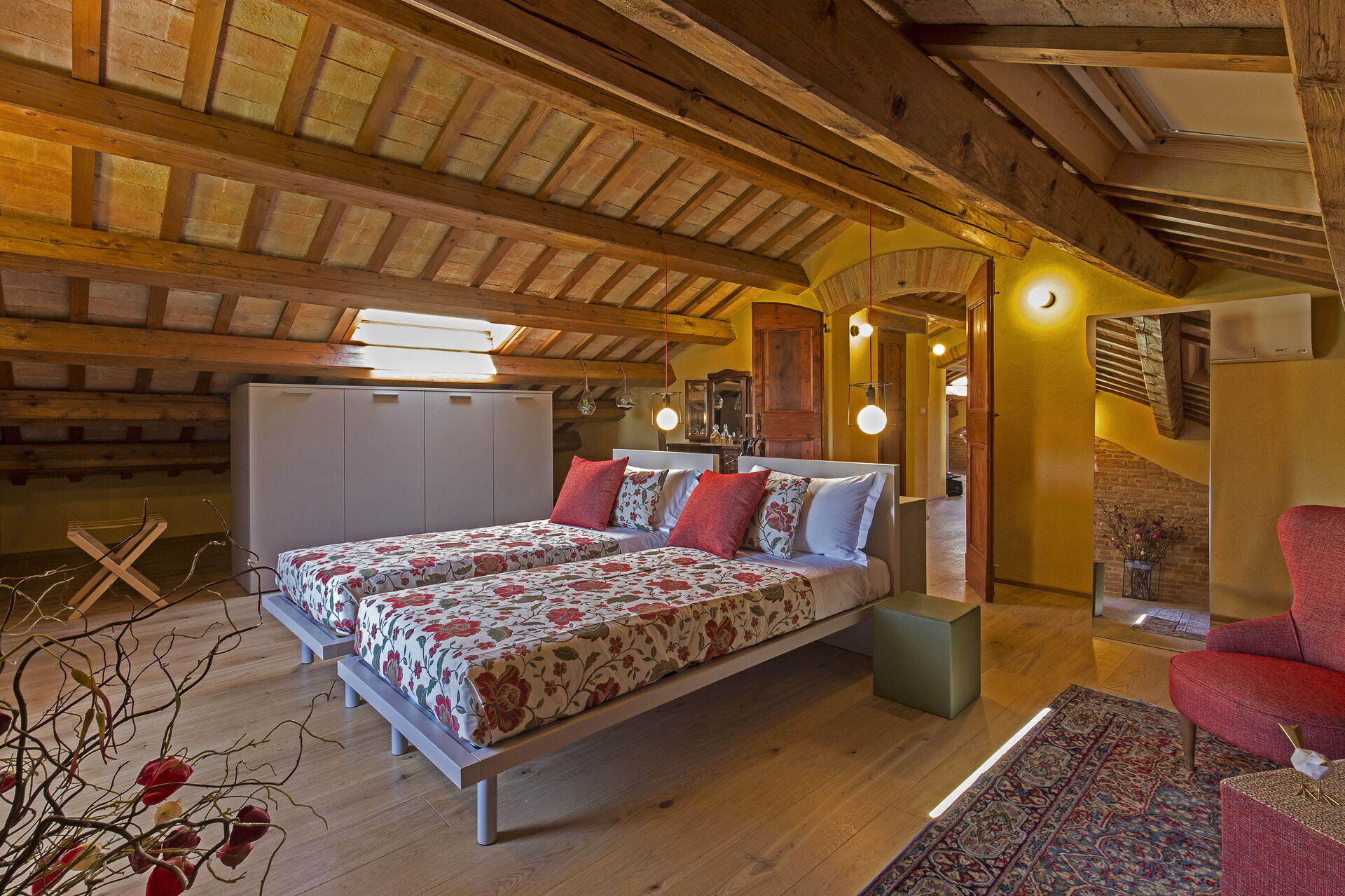 "Il Leccino", 20 sqm room with double bed, armchair, wardrobe, bedside tables and single ottoman bed to be used if necessary;