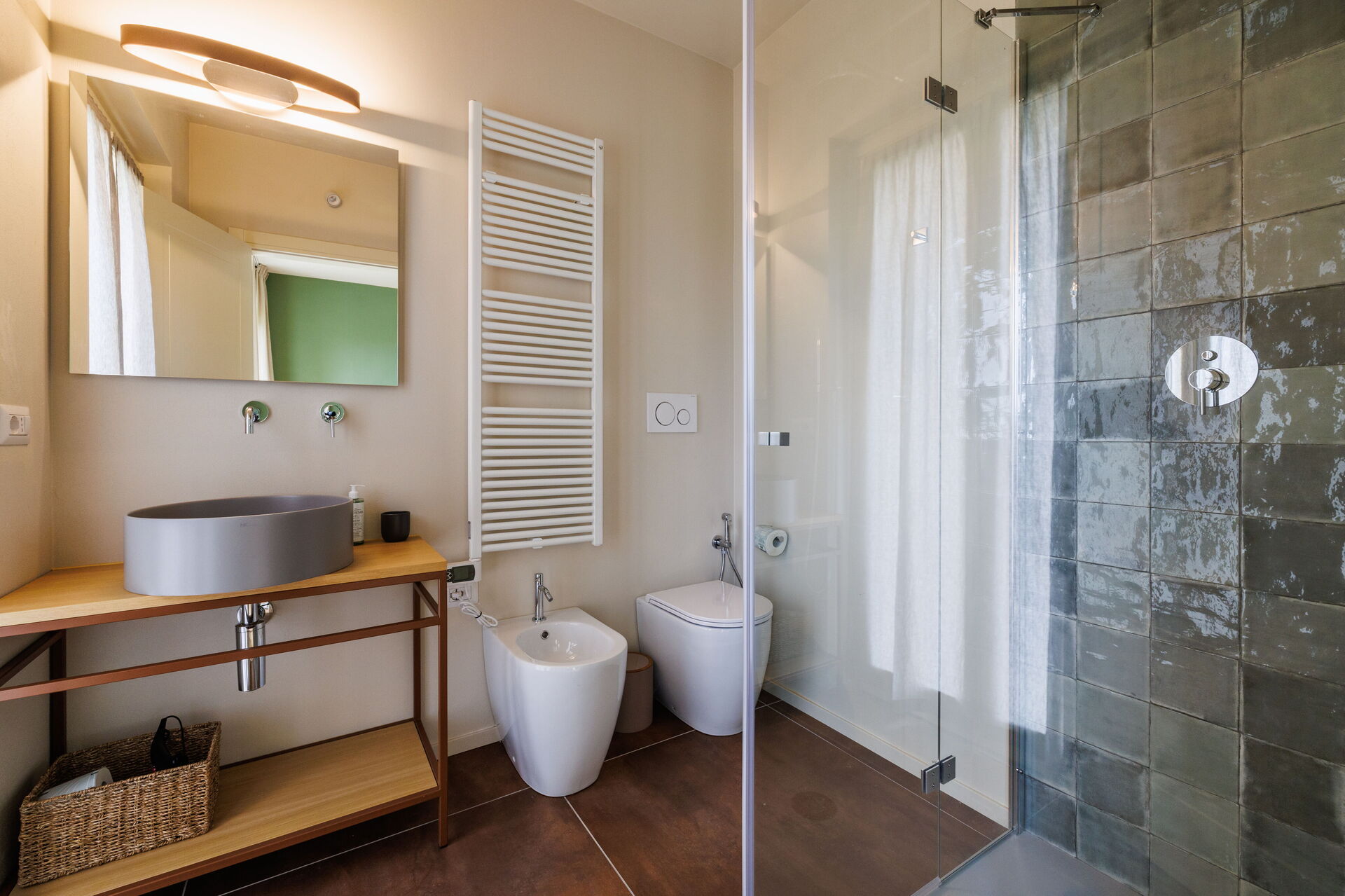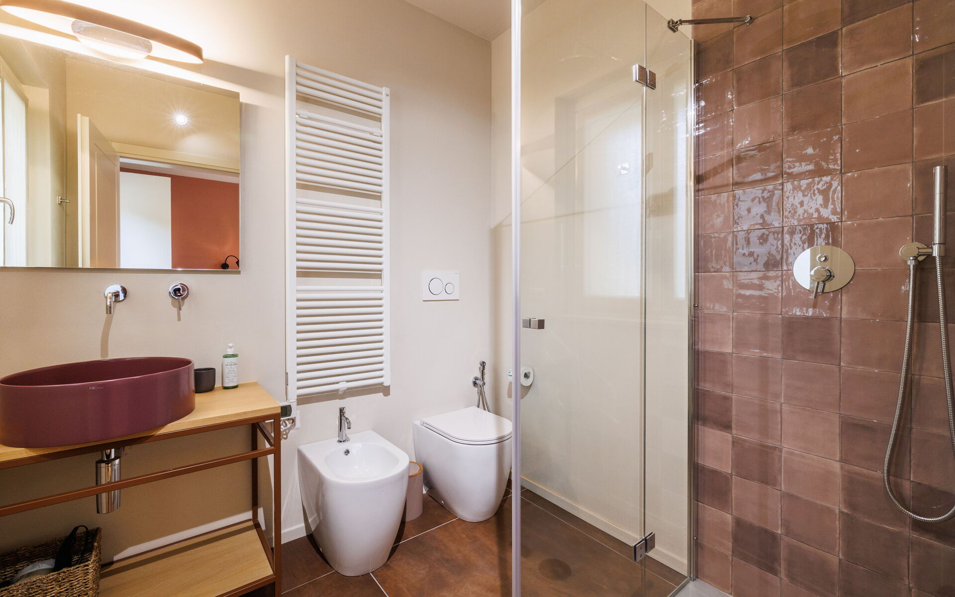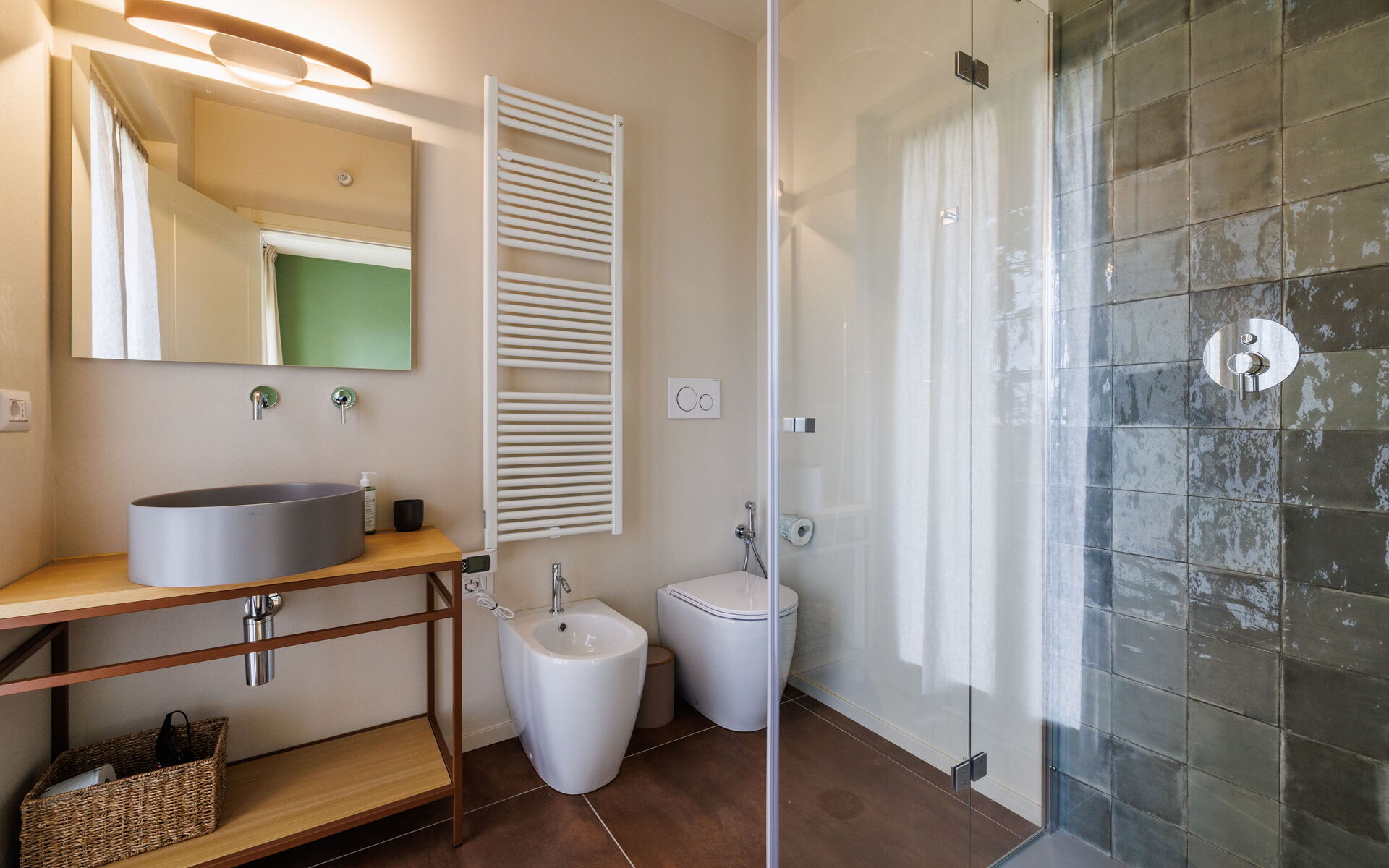 Slaapkamer met badkamer 5: tweepersoonsbed, WIFI internet, airconditioning, wastafel, toilet , bidet, douche, haardroger.