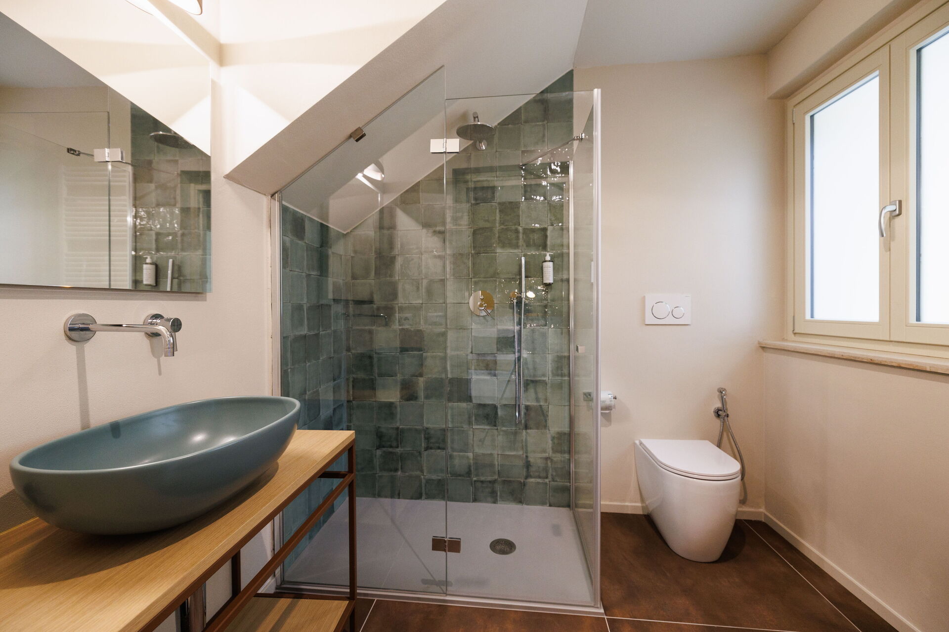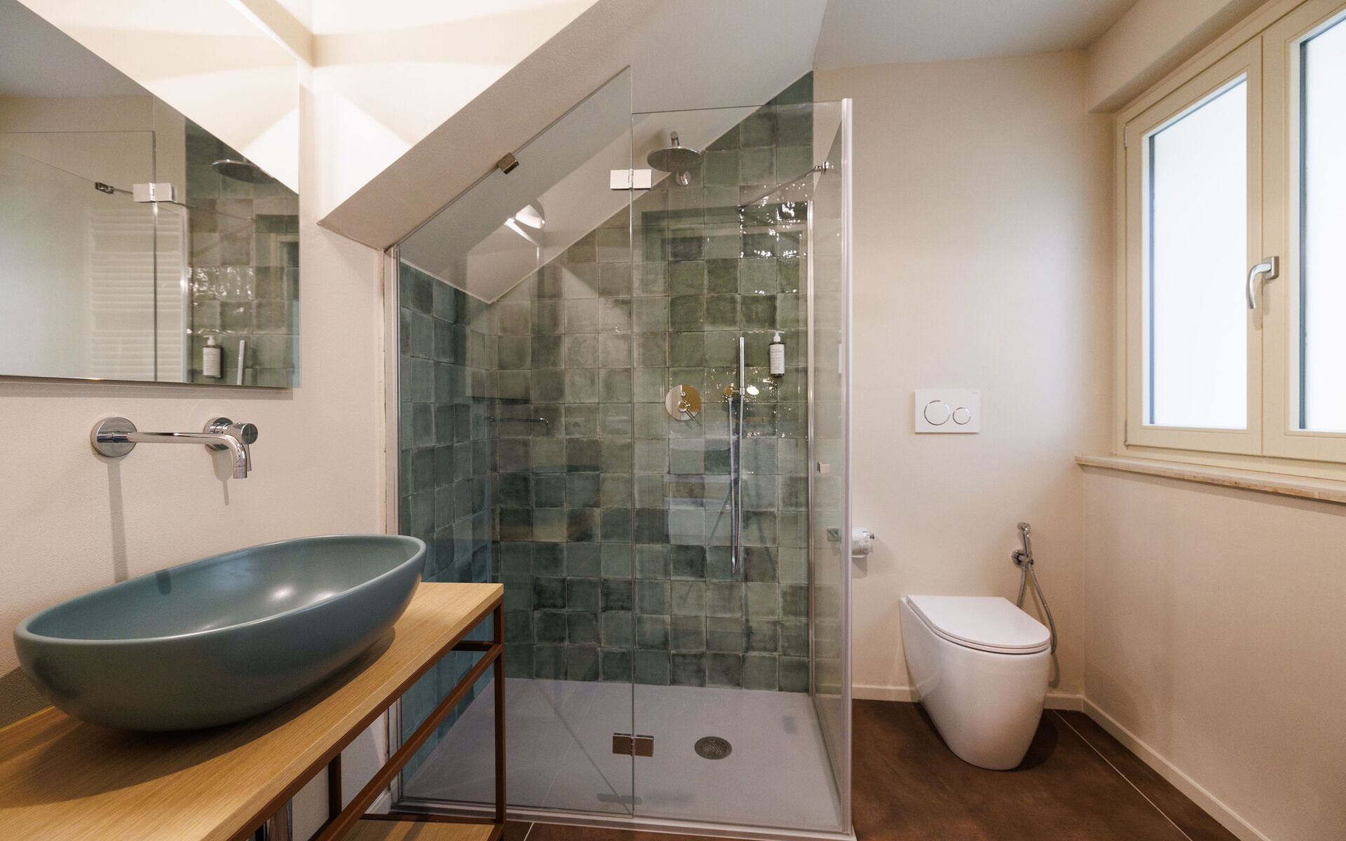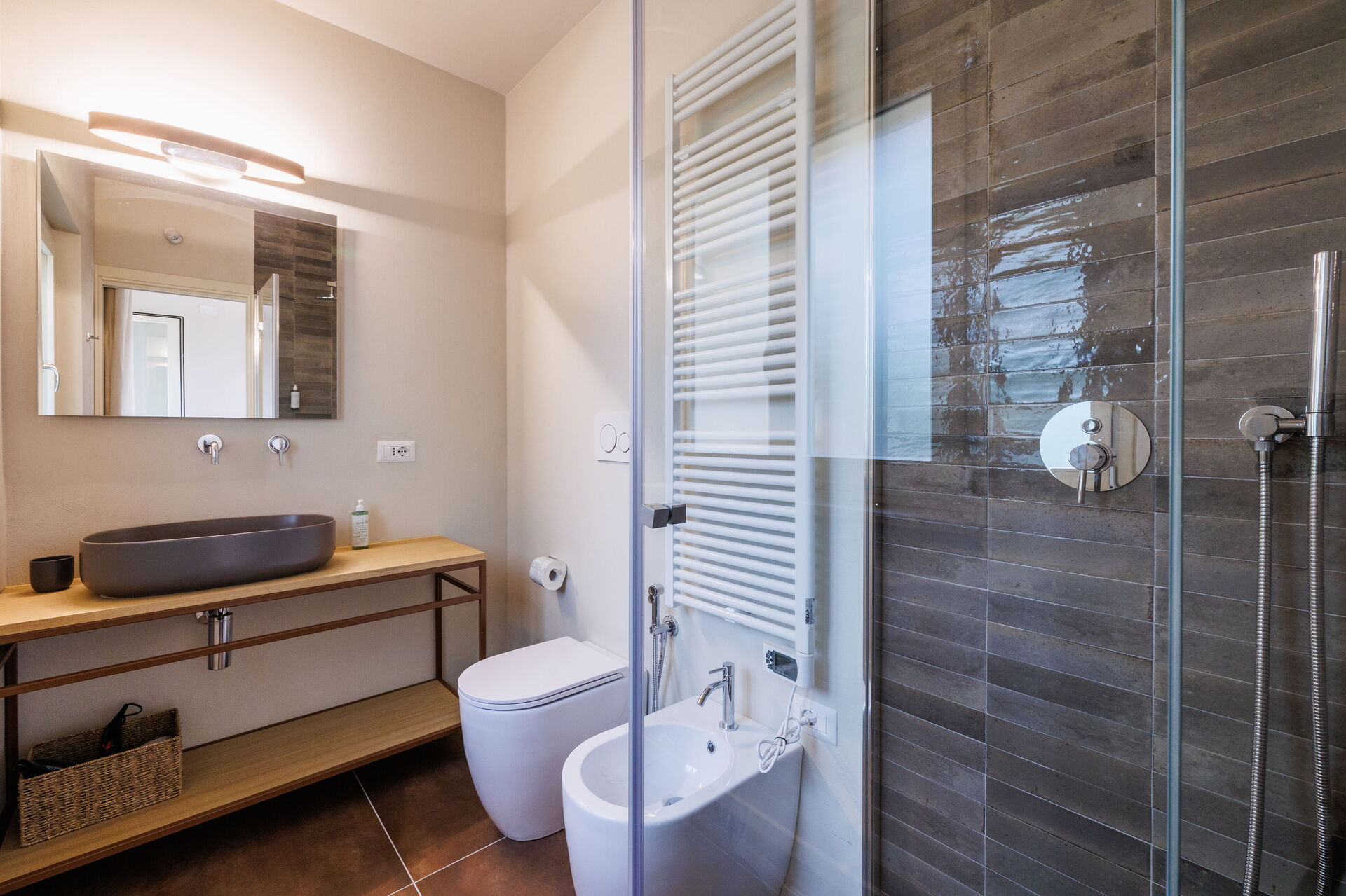 Slaapkamer met badkamer 5: tweepersoonsbed, WIFI internet, airconditioning, wastafel, toilet , bidet, douche, haardroger.