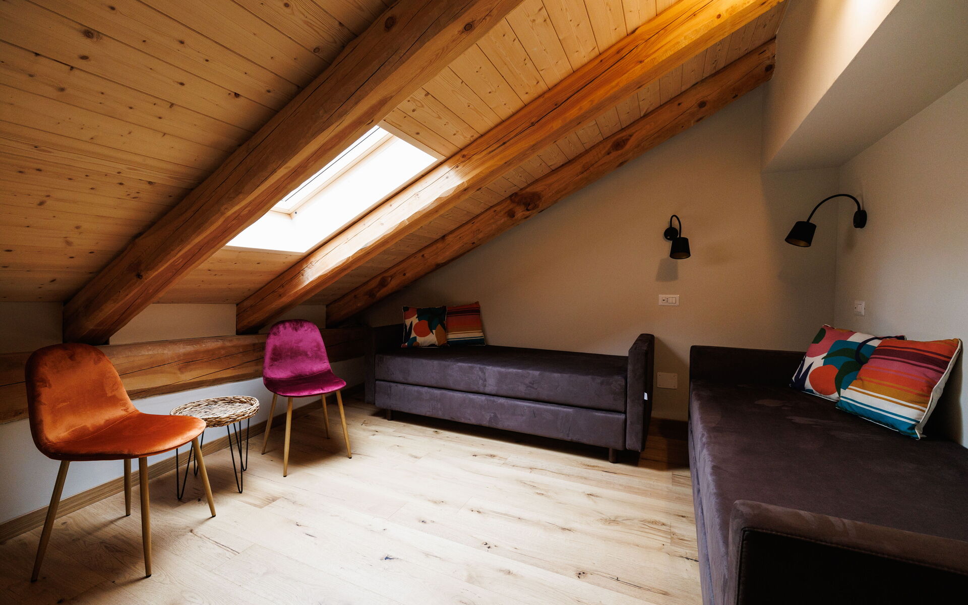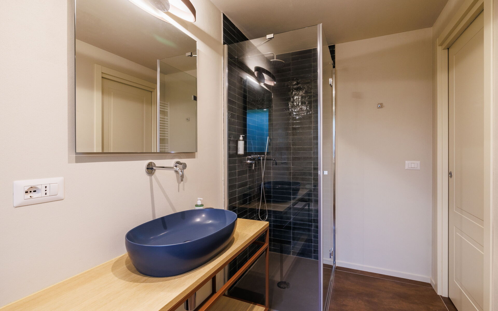 Keuken – woonkamer: goed uitgeruste keuken, eettafel, vaatwasser, magnetron, kookplaat, oven, italiaans koffiezetapparaat, bank, WIFI internet, airconditioning.
