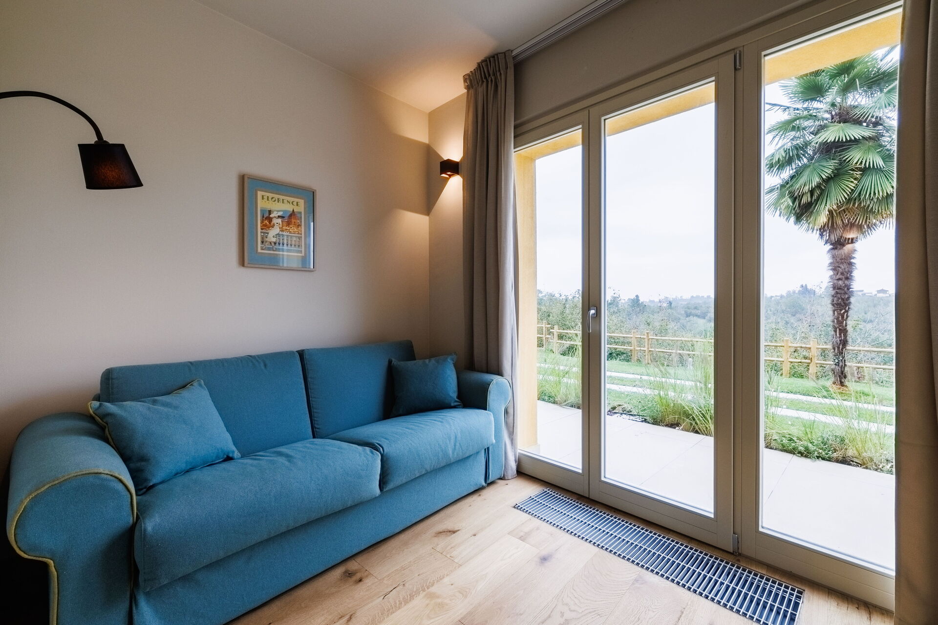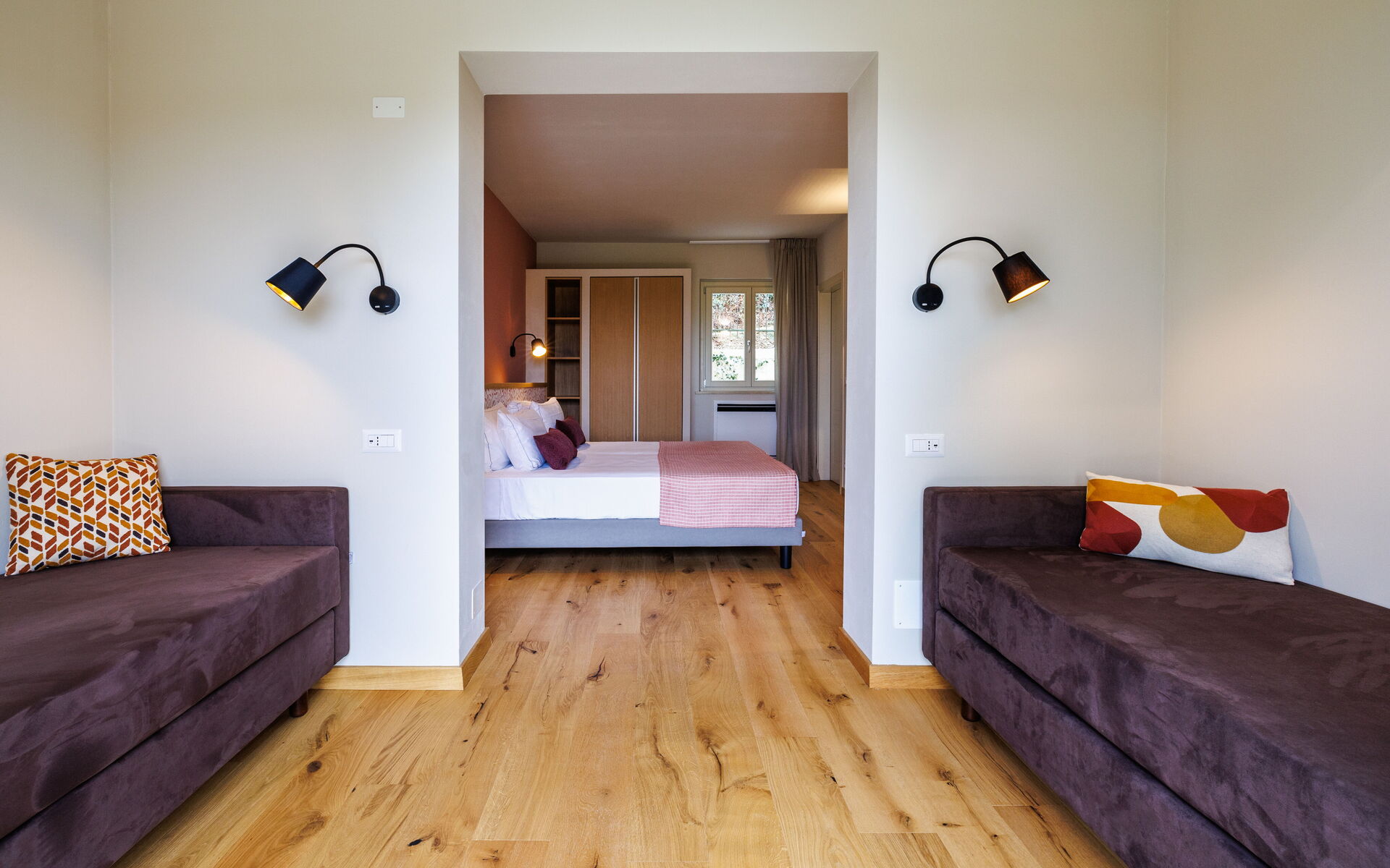 Slaapkamer met badkamer 3: tweepersoonsbed, slaapbank, WIFI internet, airconditioning, wastafel, toilet , bidet, douche, haardroger.