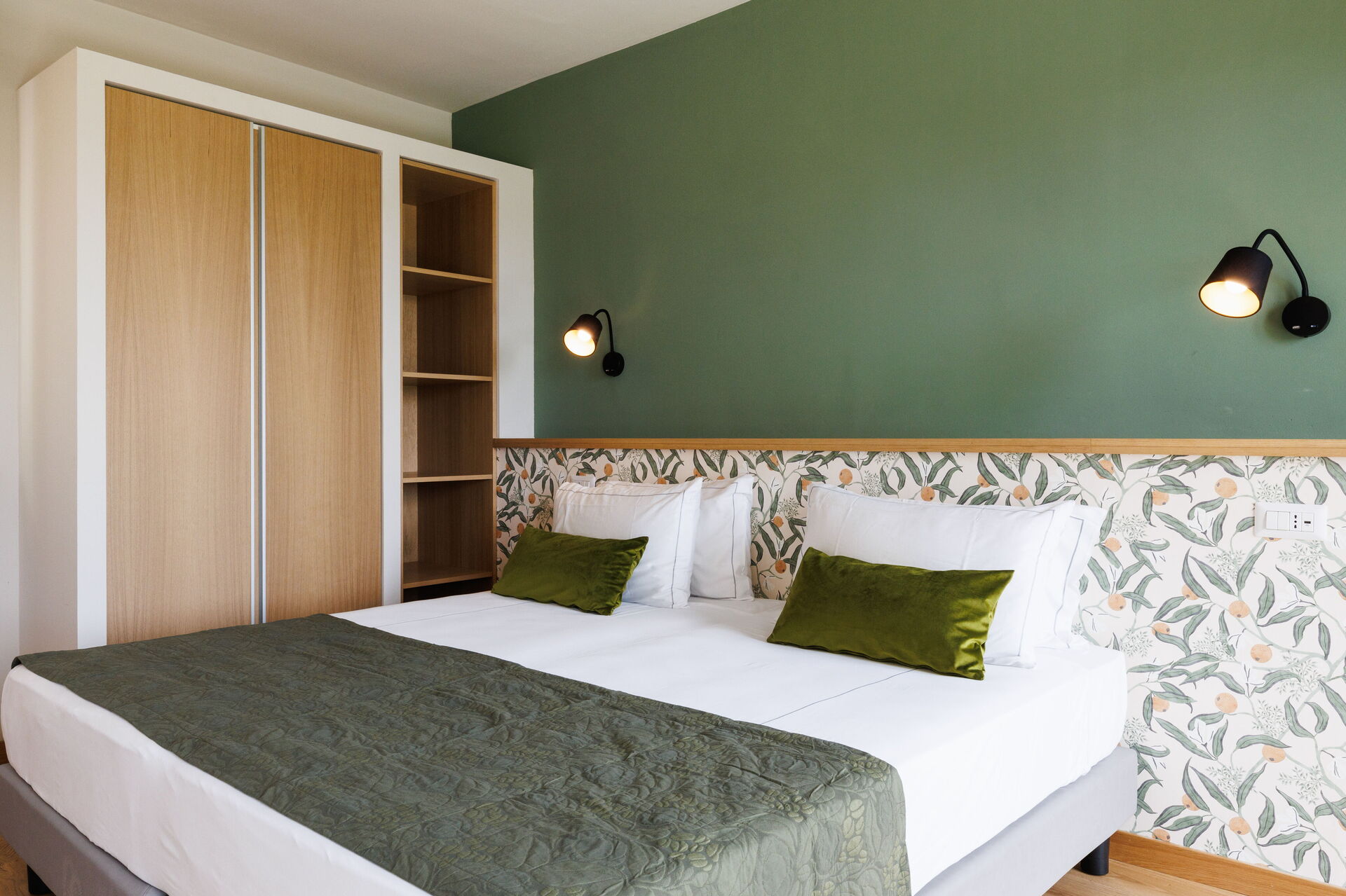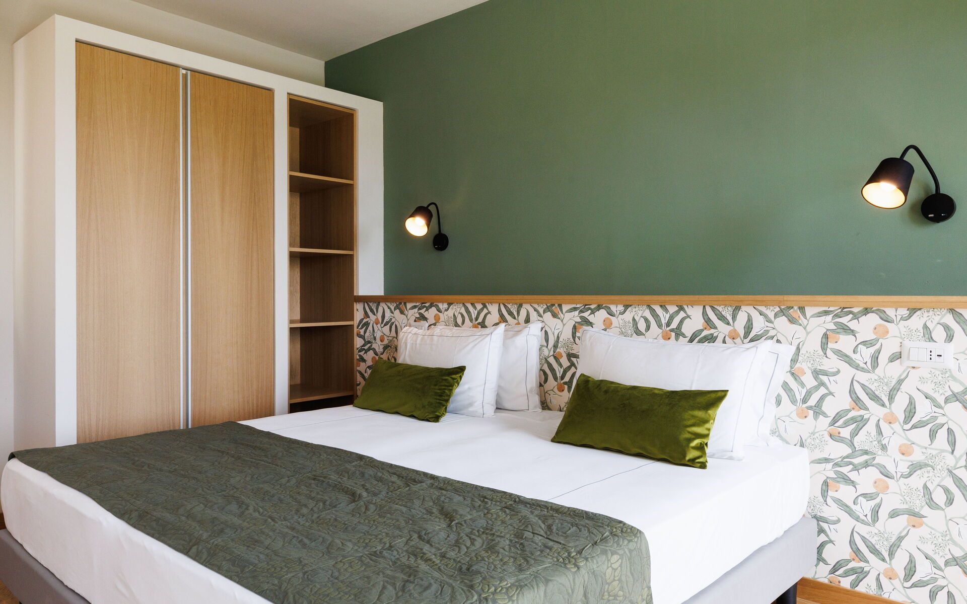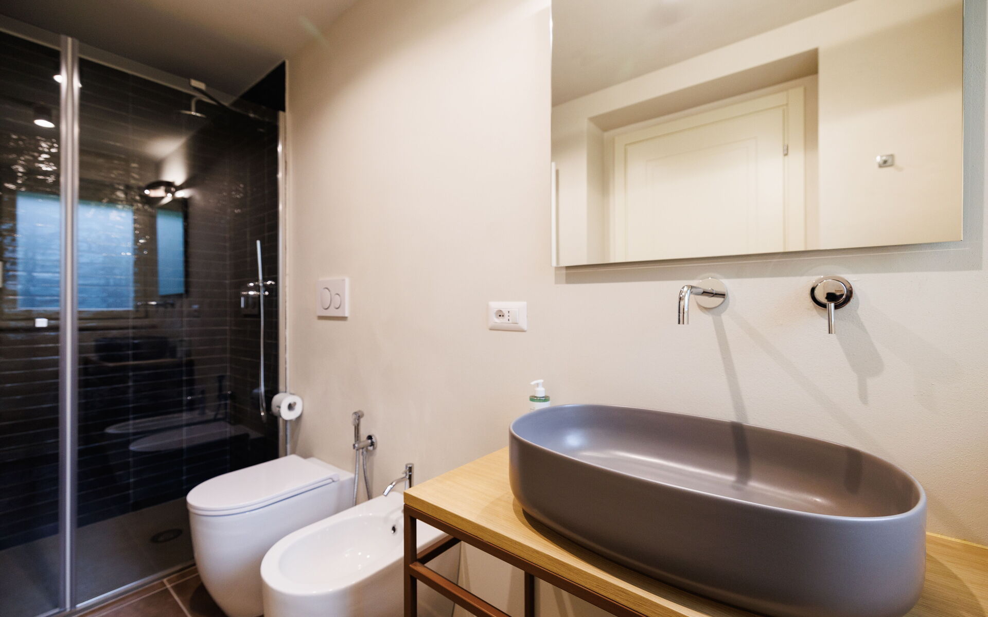 Slaapkamer met badkamer 1: tweepersoonsbed, WIFI internet, airconditioning, wastafel, toilet , bidet, douche, haardroger.