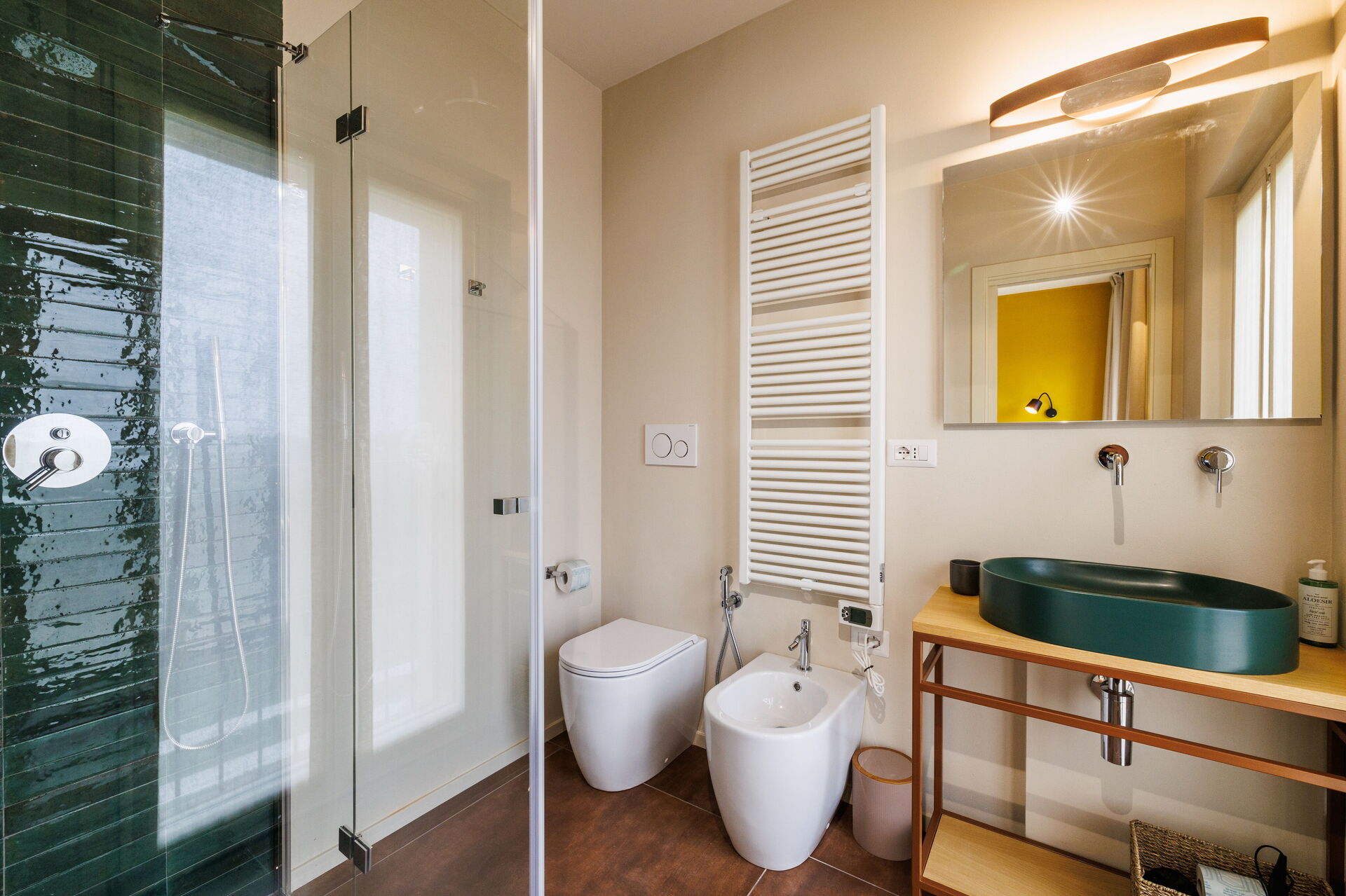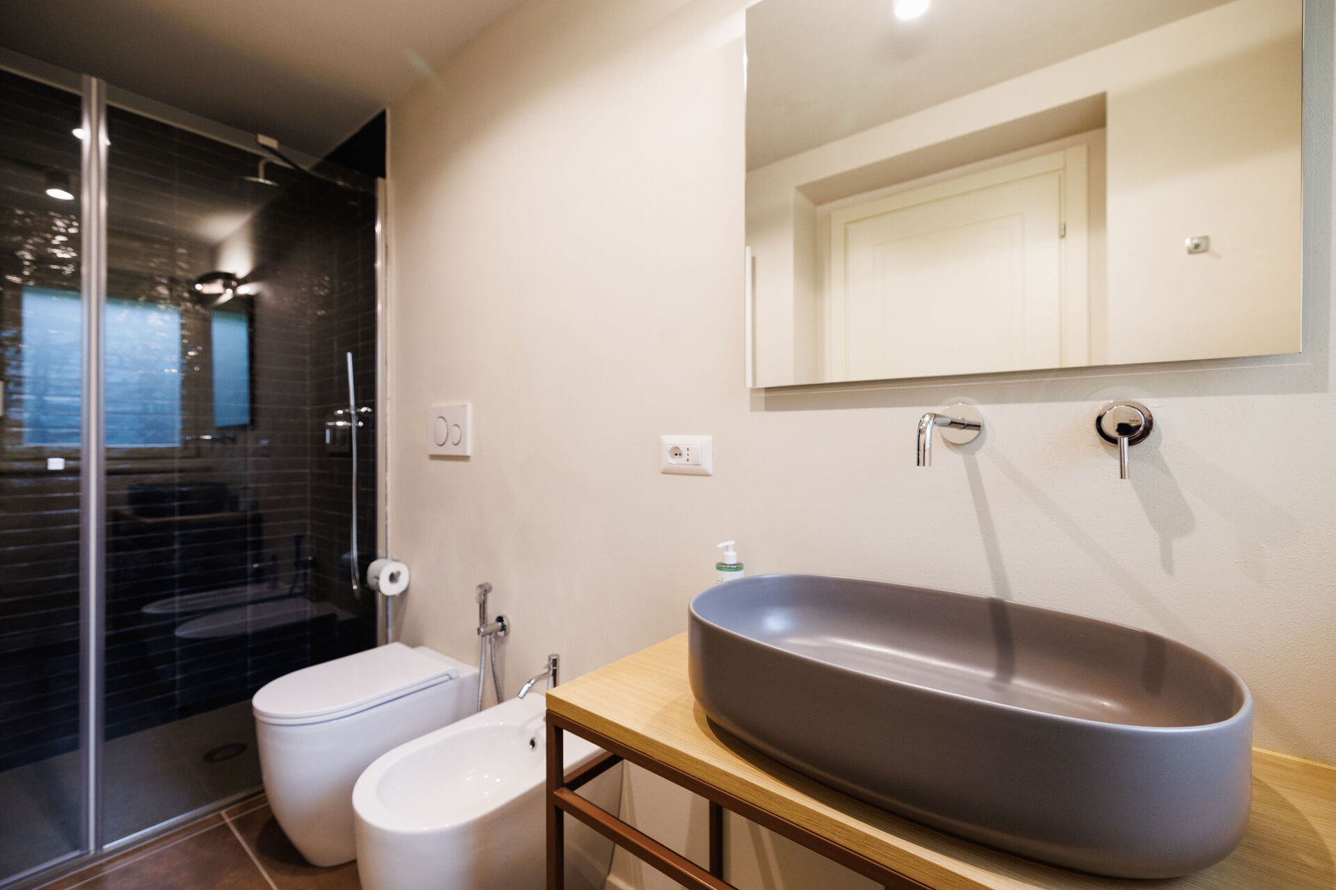 Badkamer: wastafel, toilet , bidet, WIFI internet.